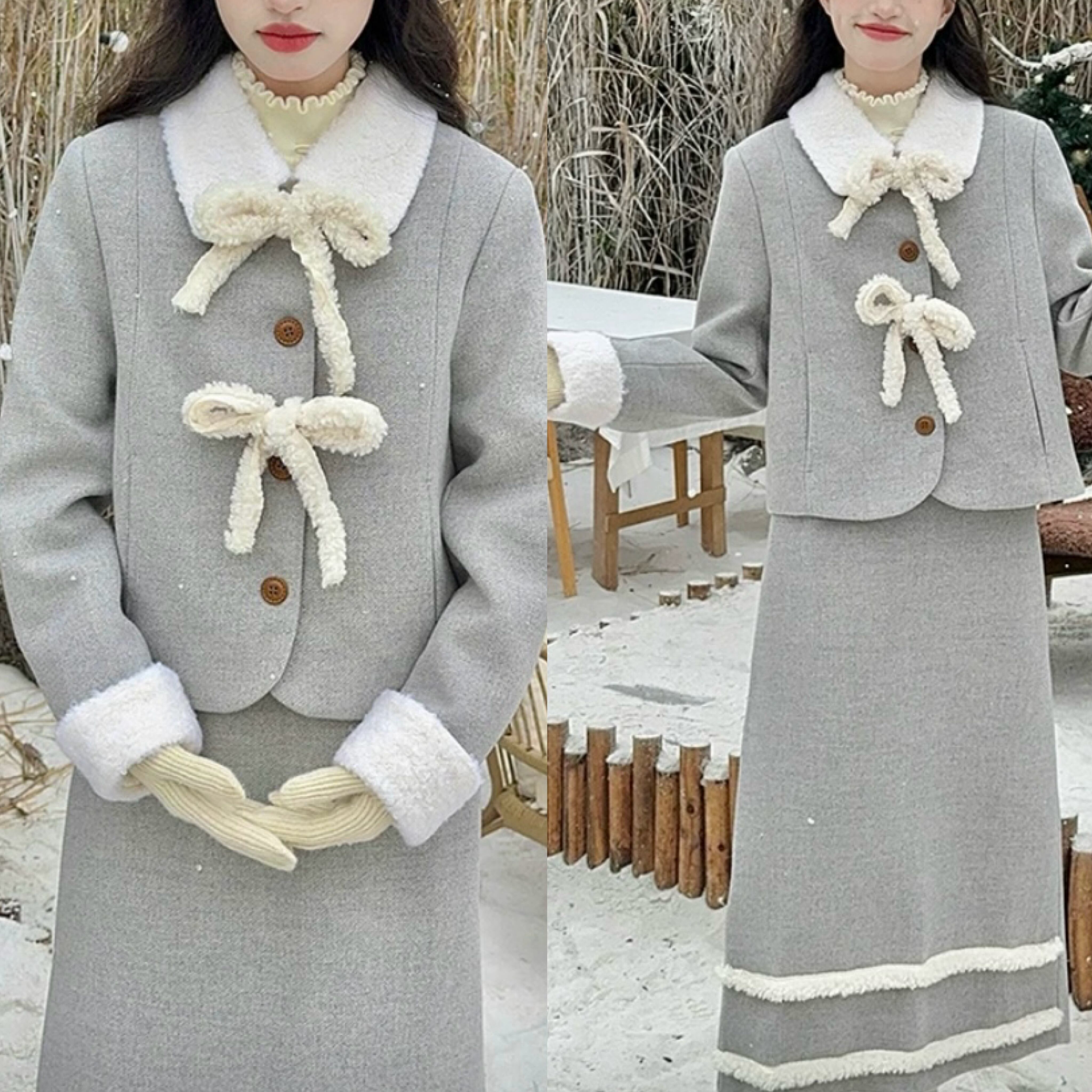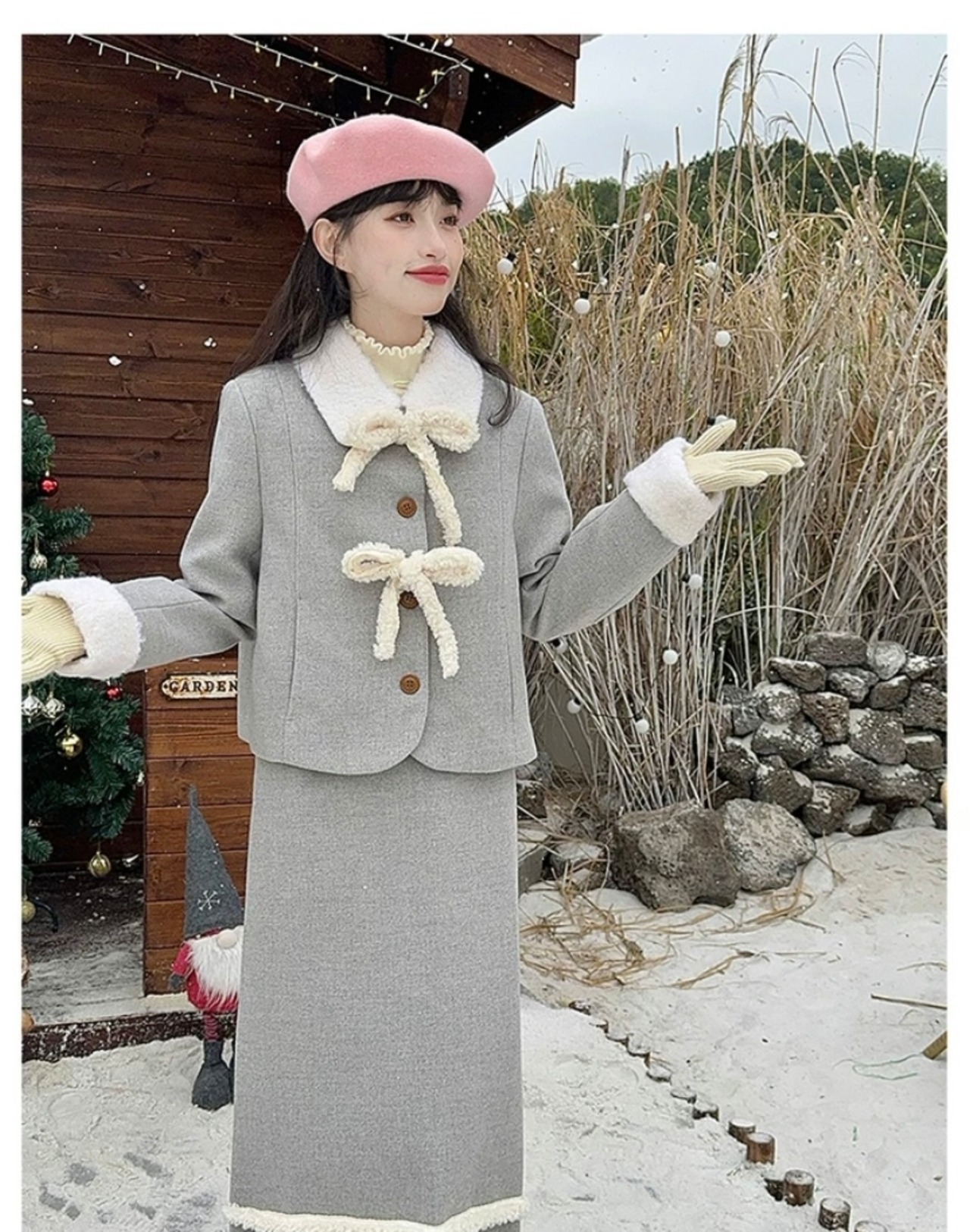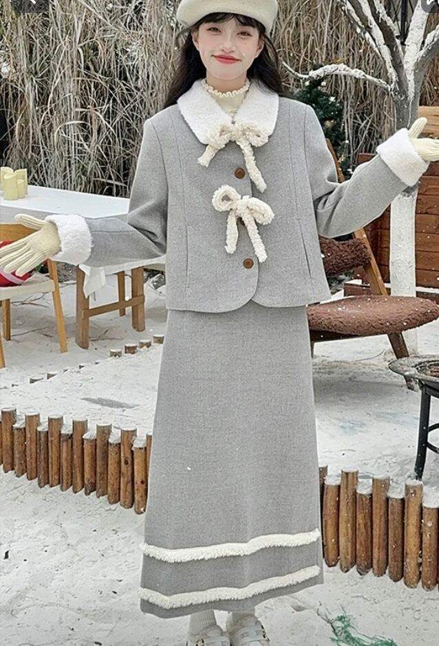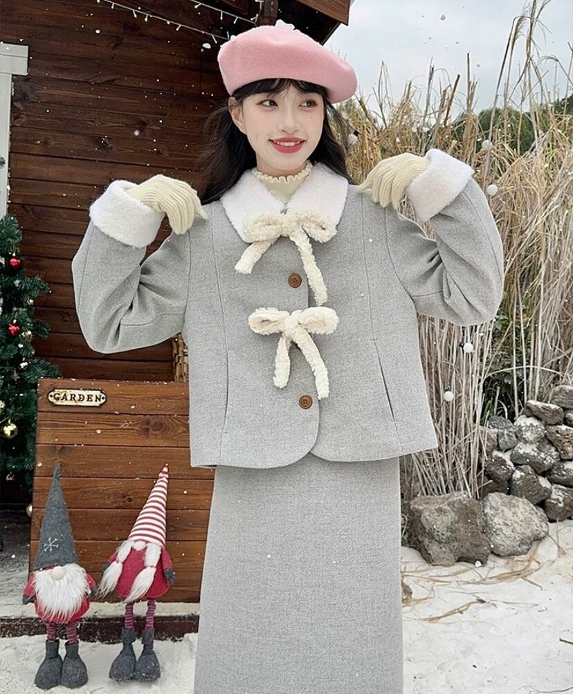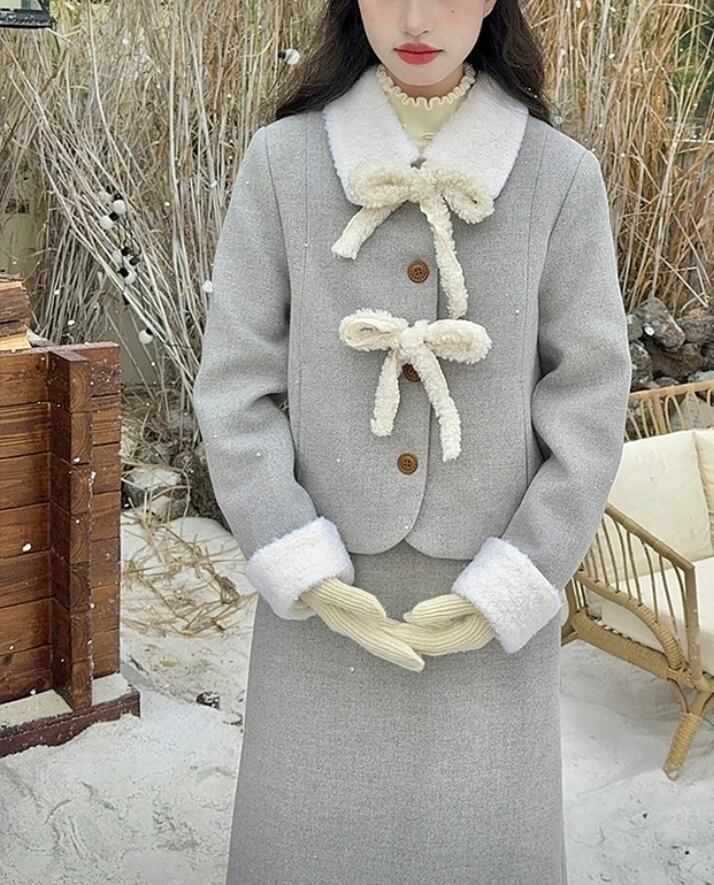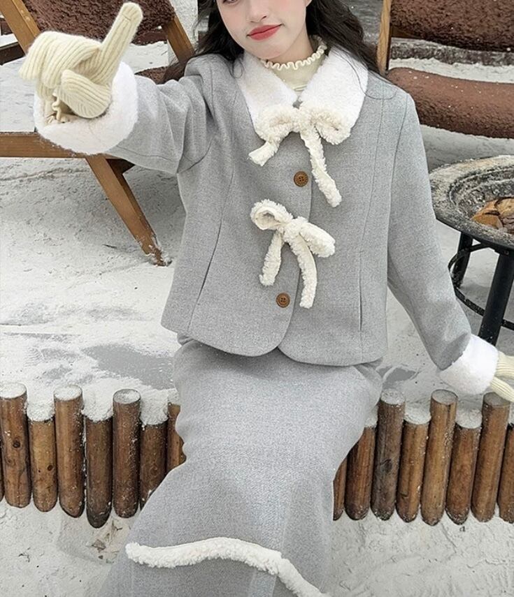 【セットアップ】グレー ジャケット リボン ガーリー 可愛い スカート