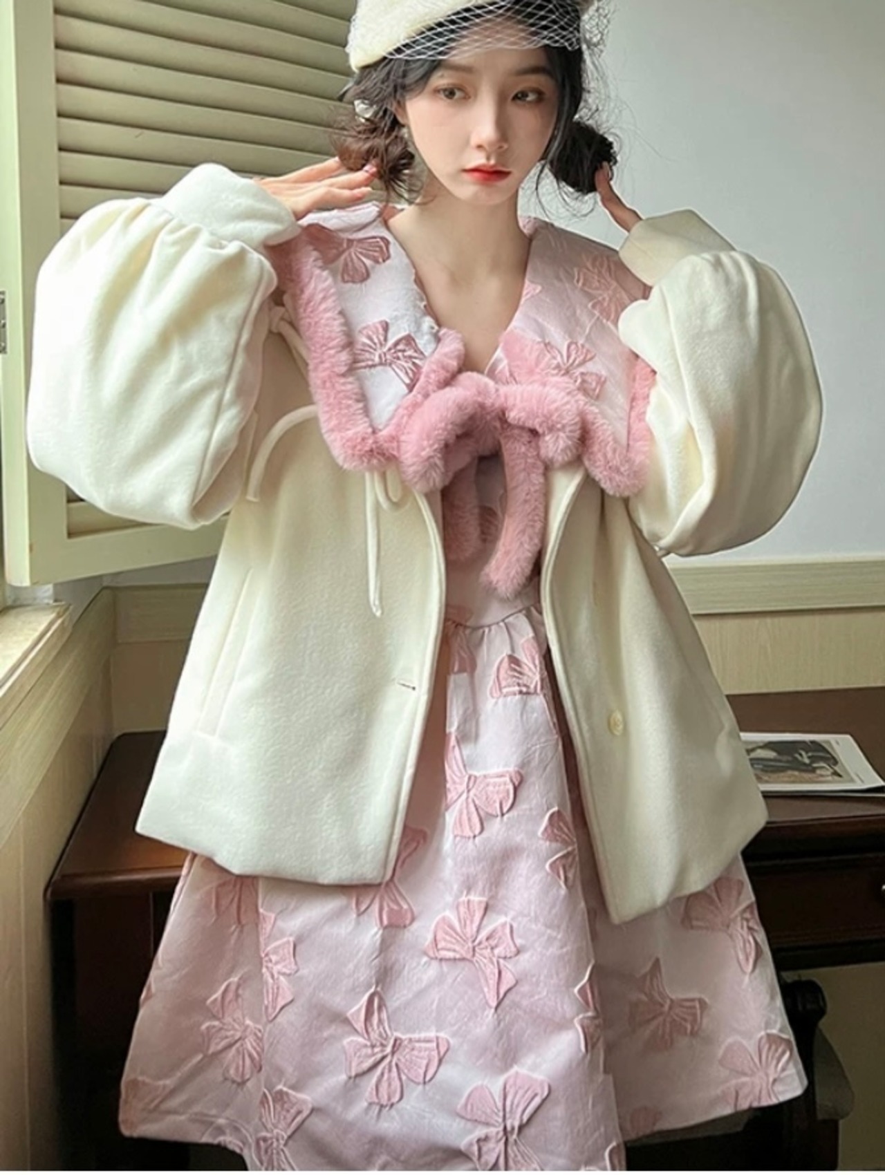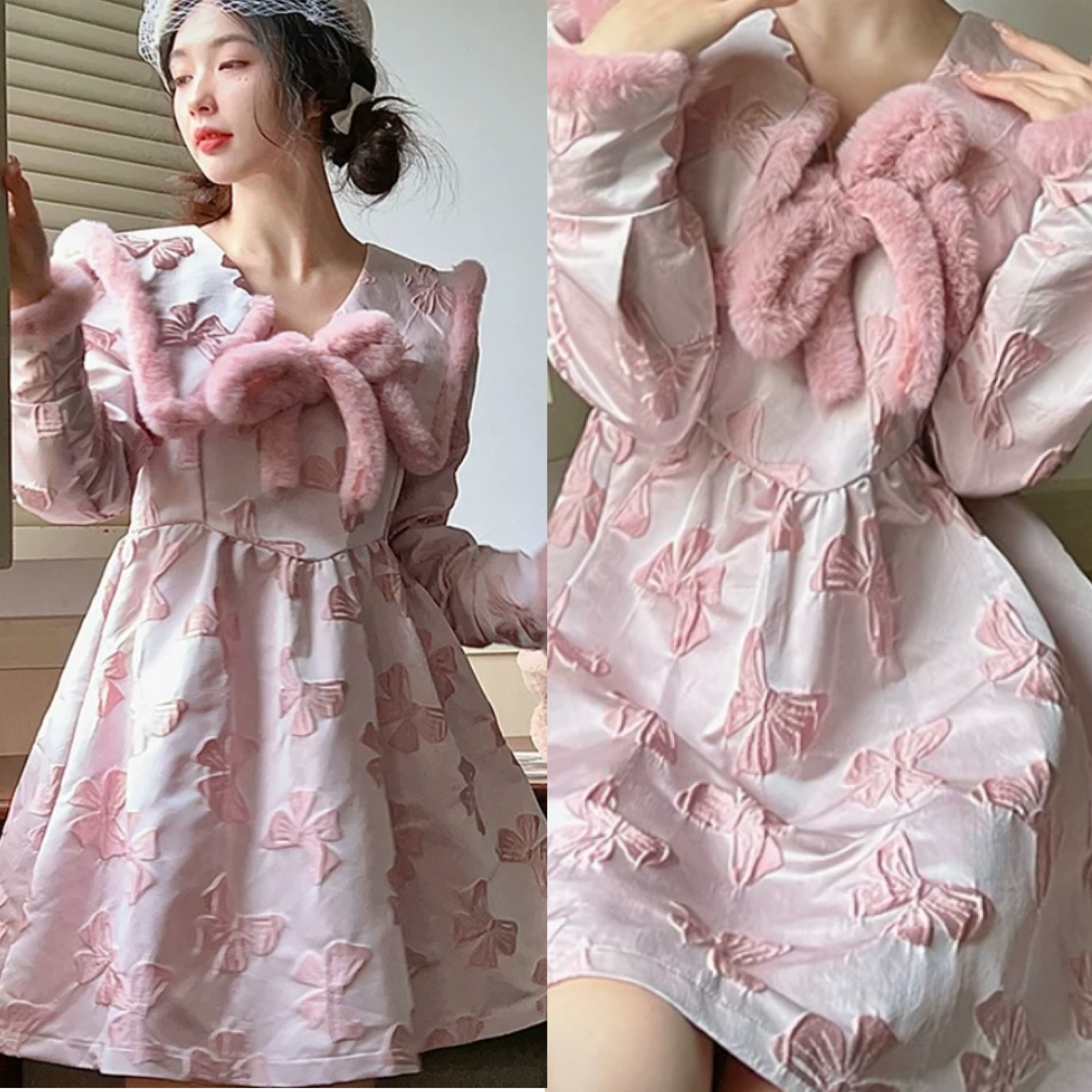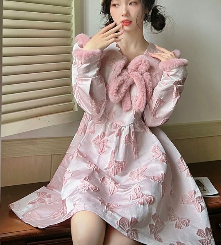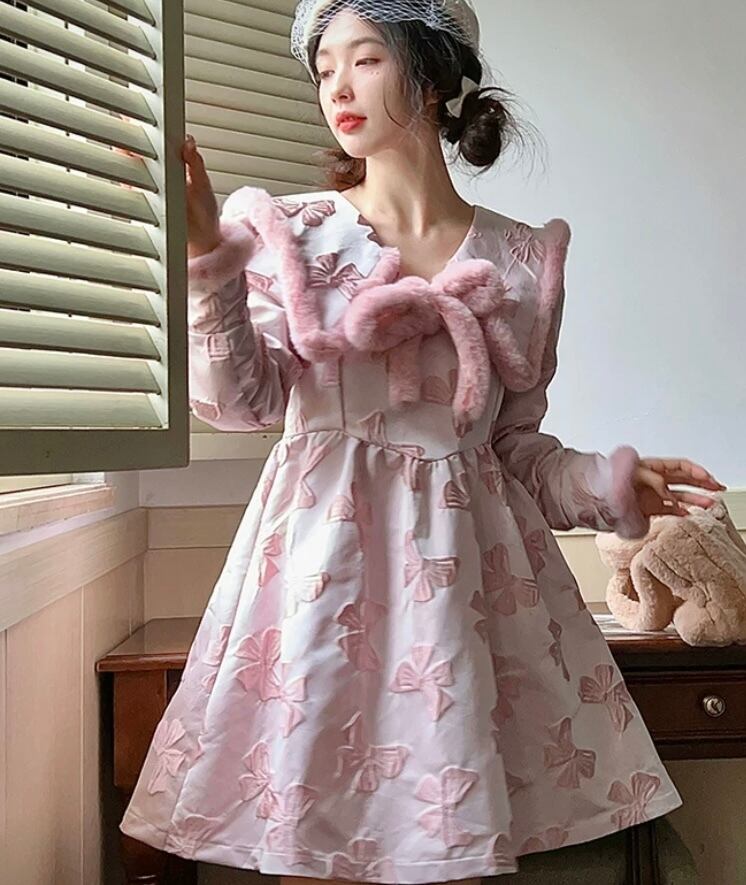 ガーリー チェック ピンク 丸襟 リボン セーラー ワンピース ガーリー 襟