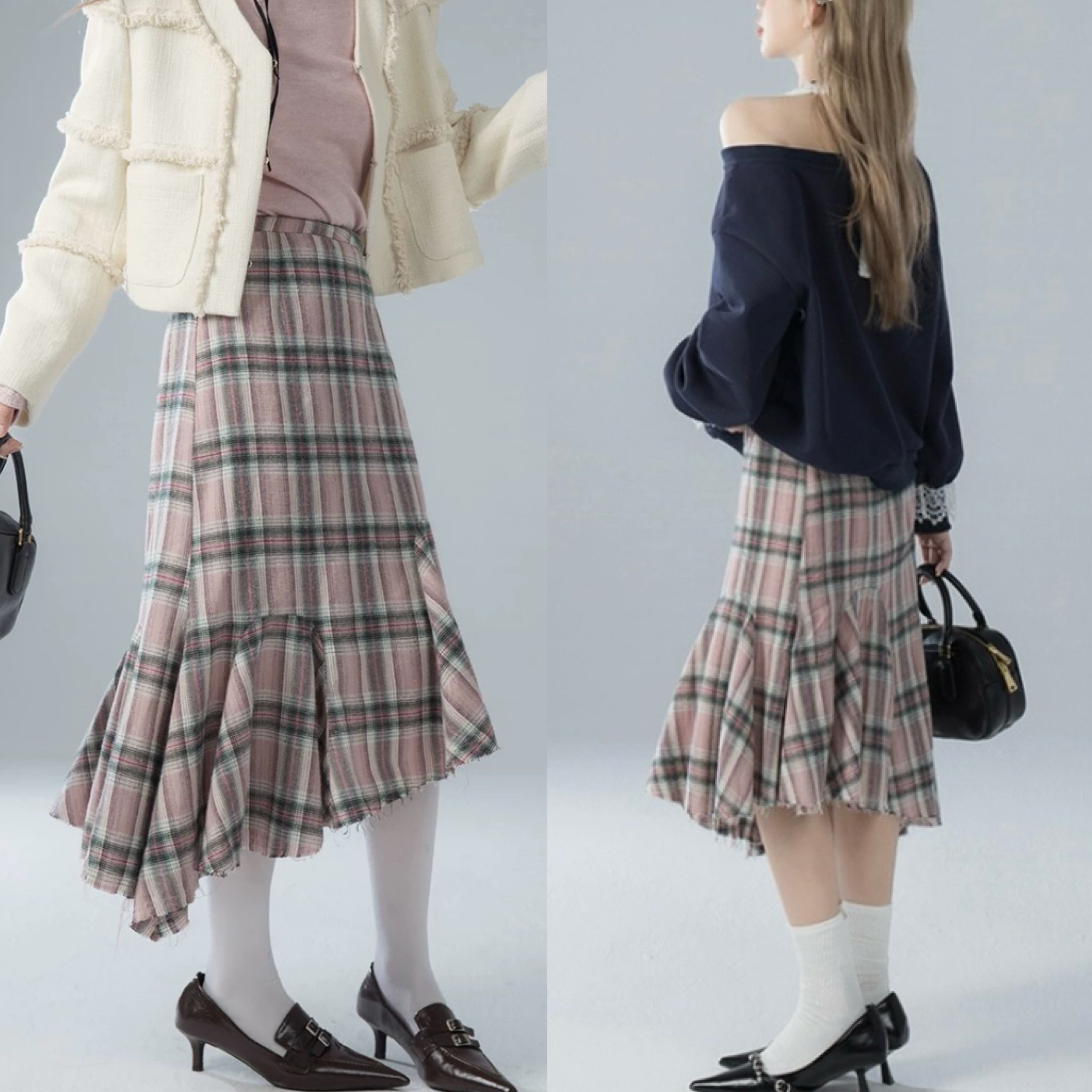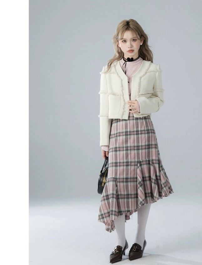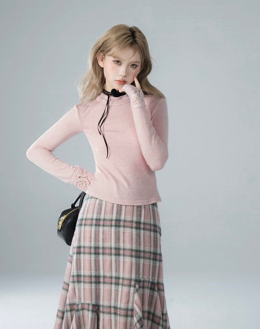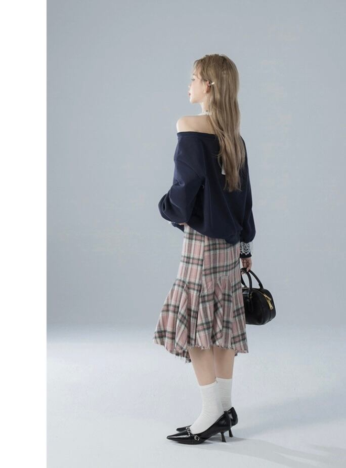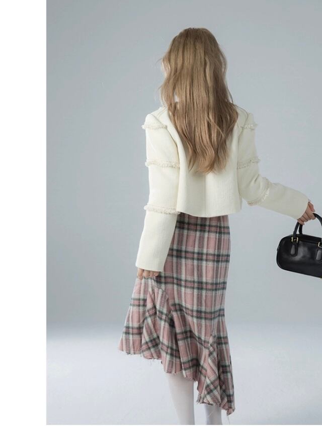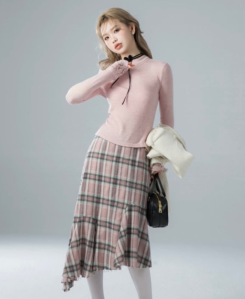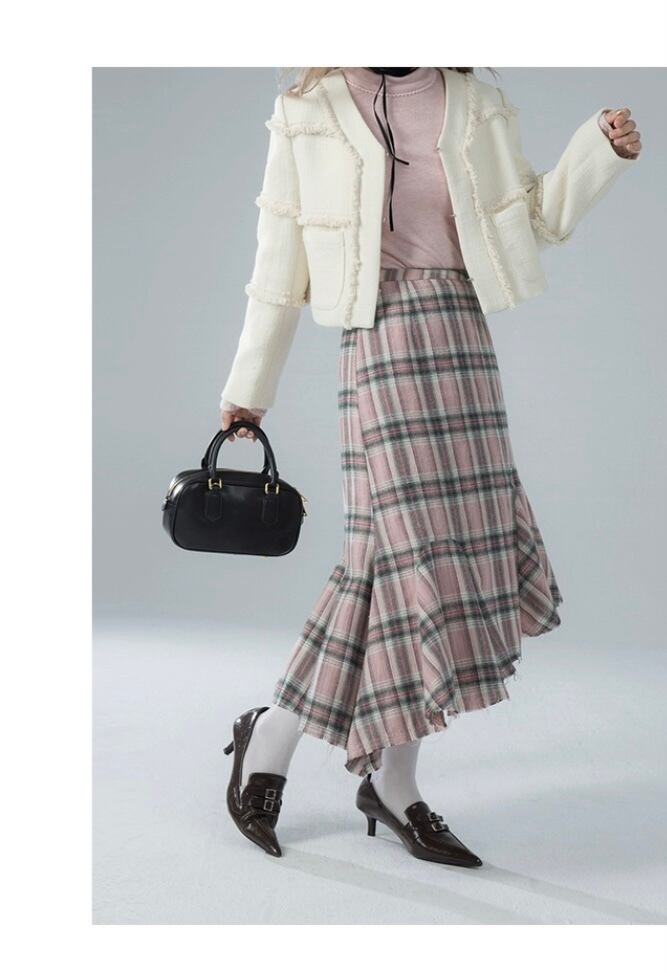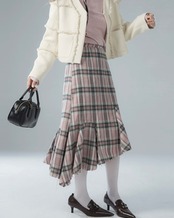 ピンク チェック ボトムス スカート タイト マーメイド