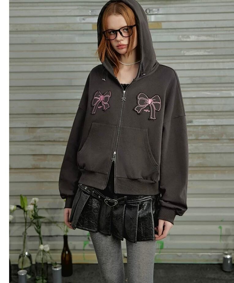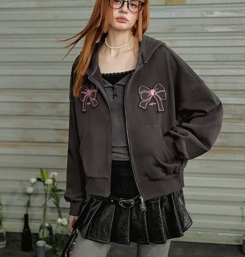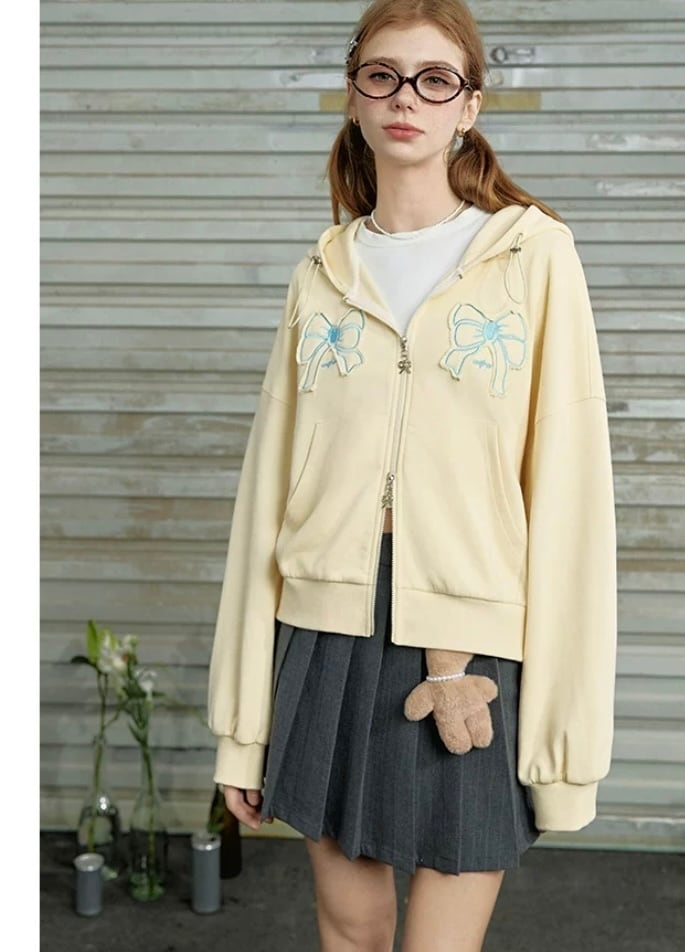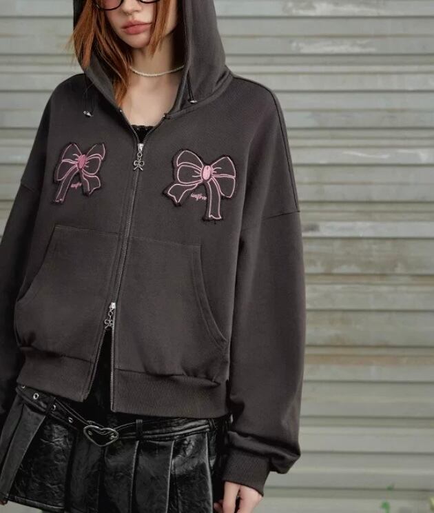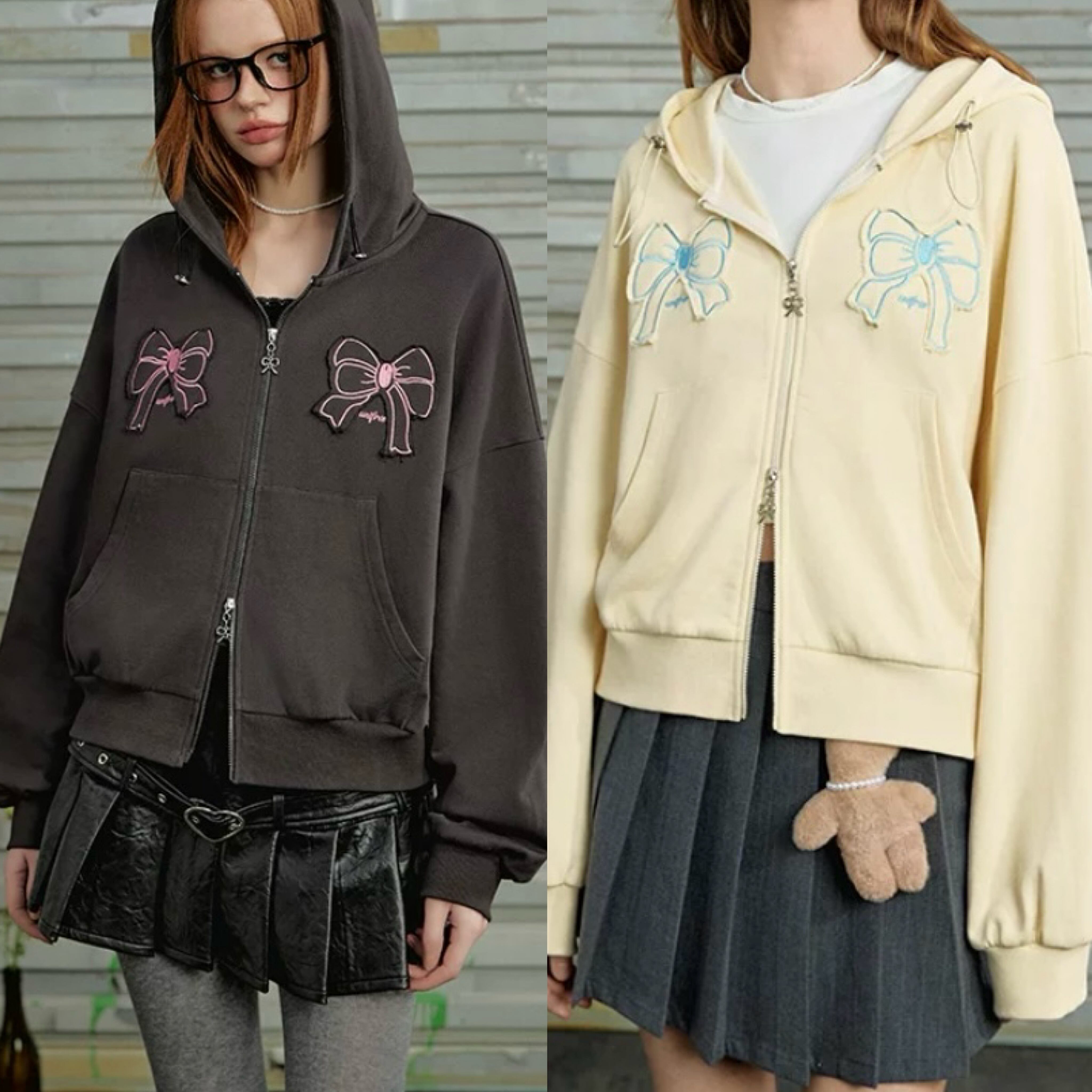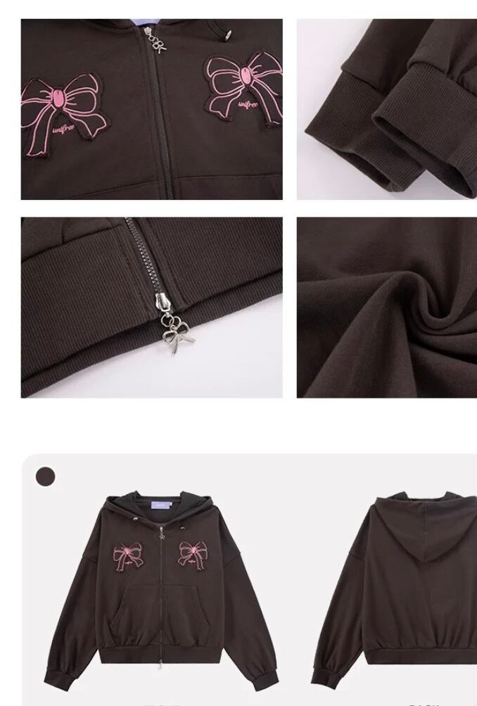 ベージュ 黒 リボン パーカー スウェット カジュアル トレーナー 可愛い