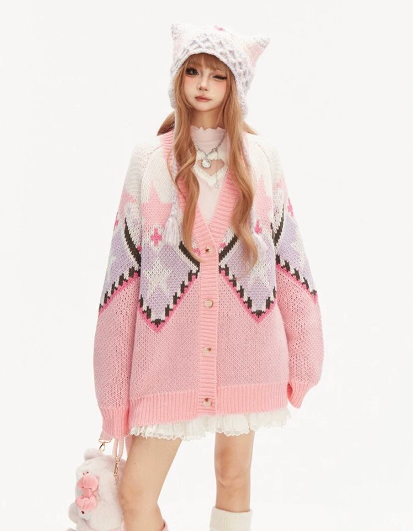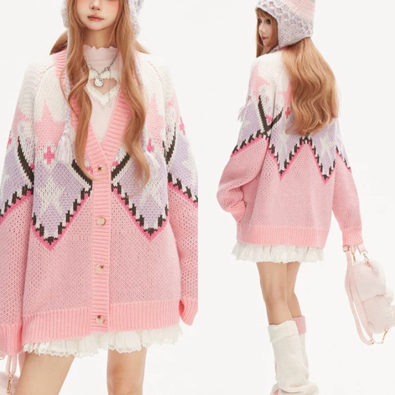 ピンク ガーリー セーター チェック アウター 紫 ハート ガーリー