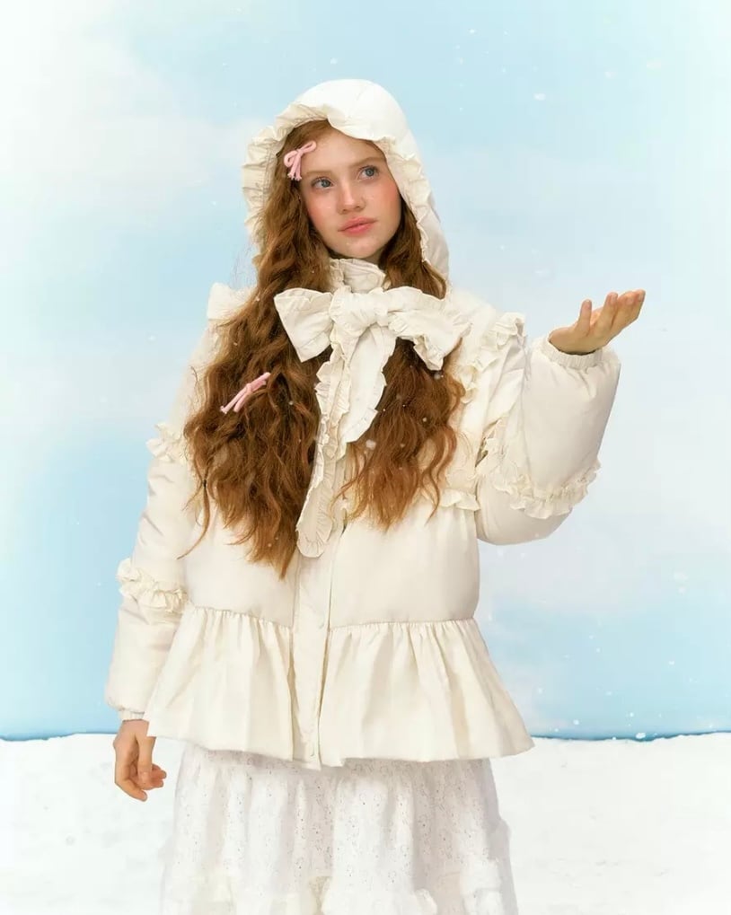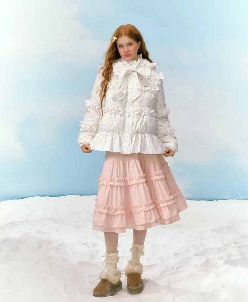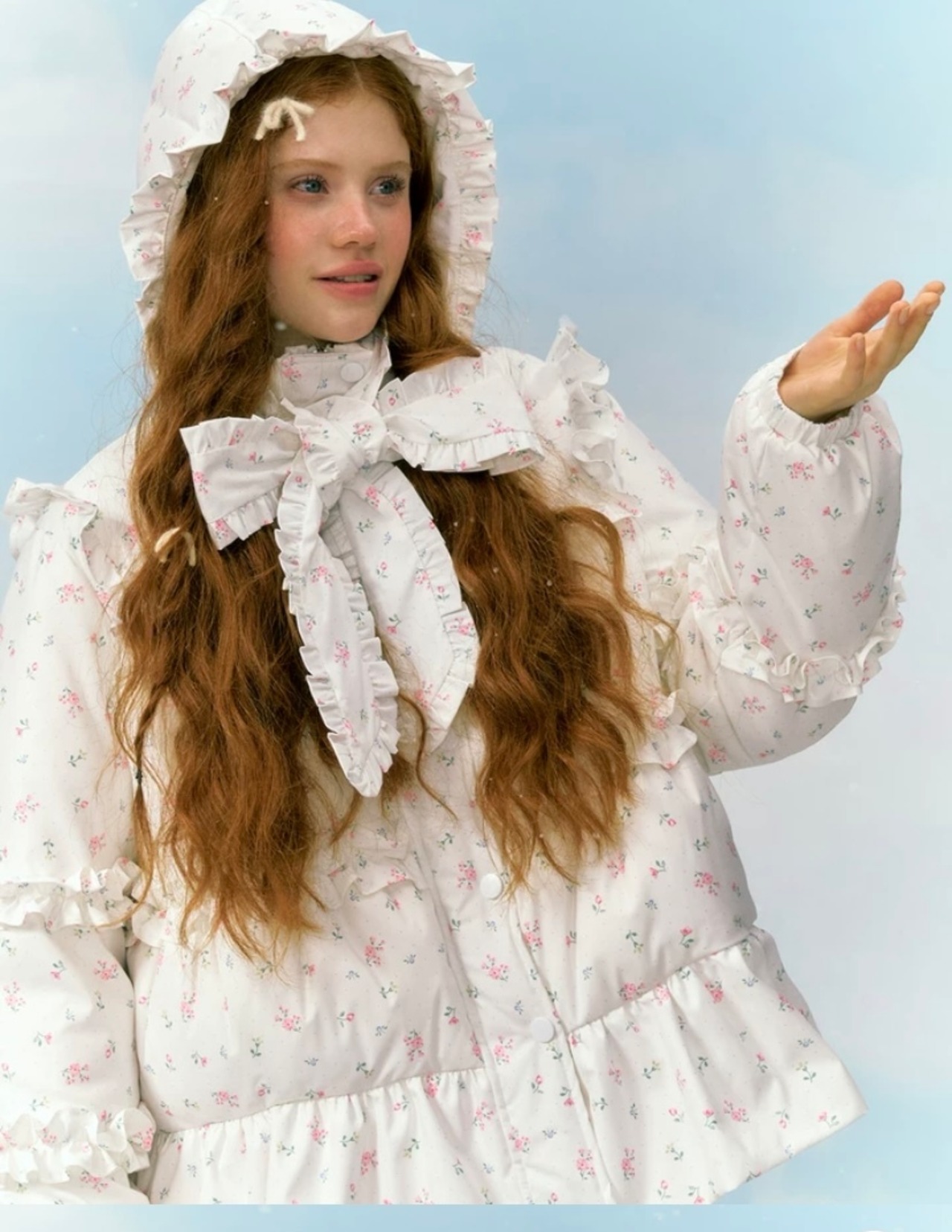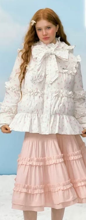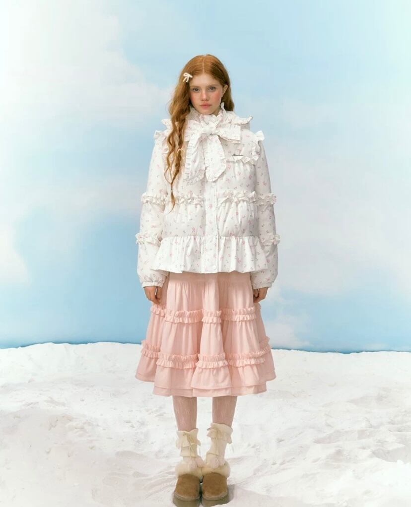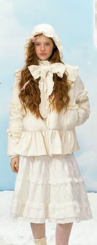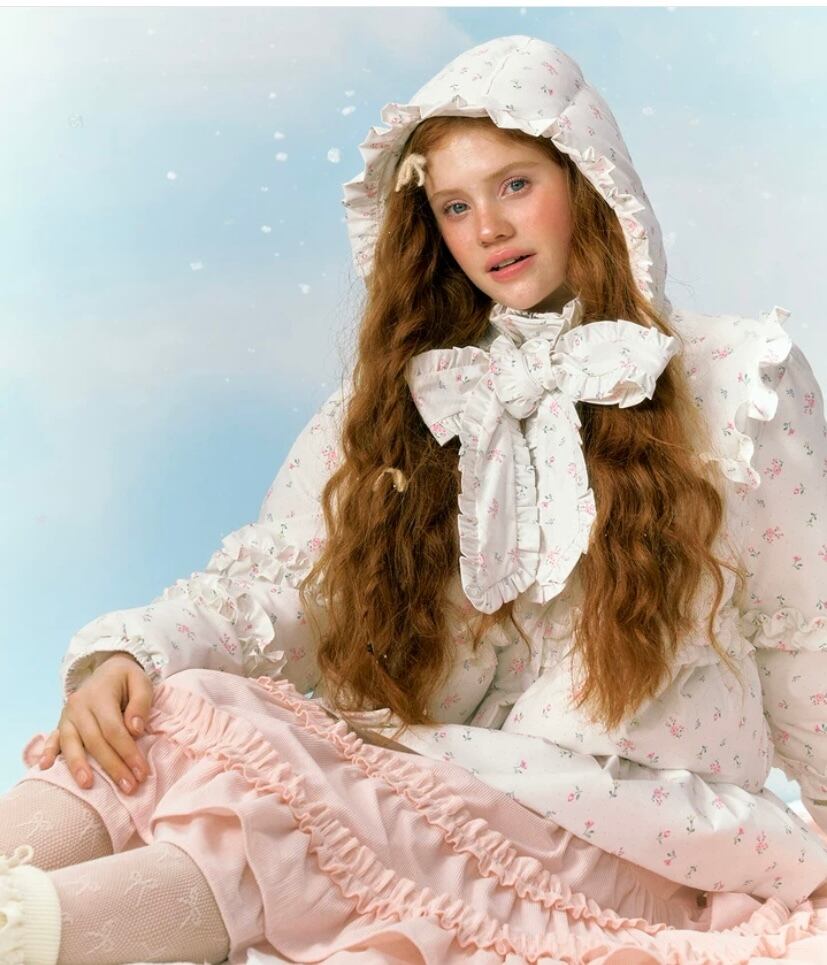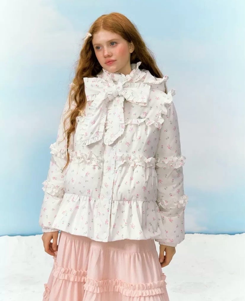リボン 白 ホワイトデー 花柄 フラワー ダウンコート フード パーカー コート