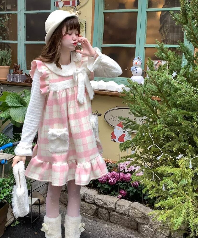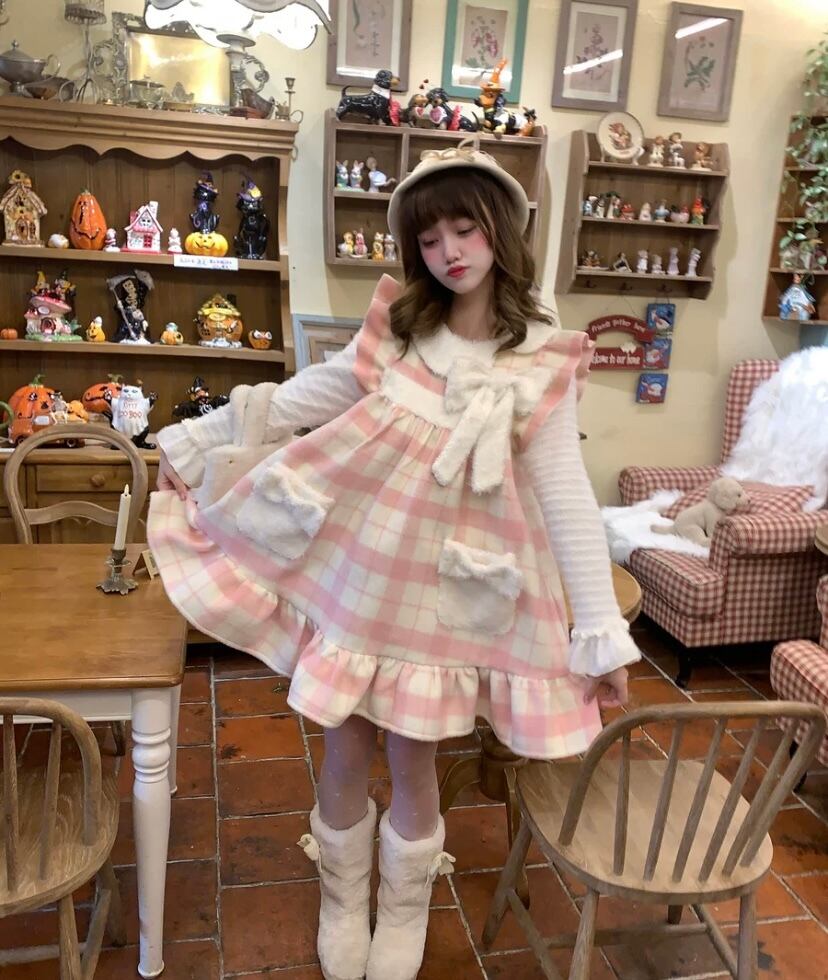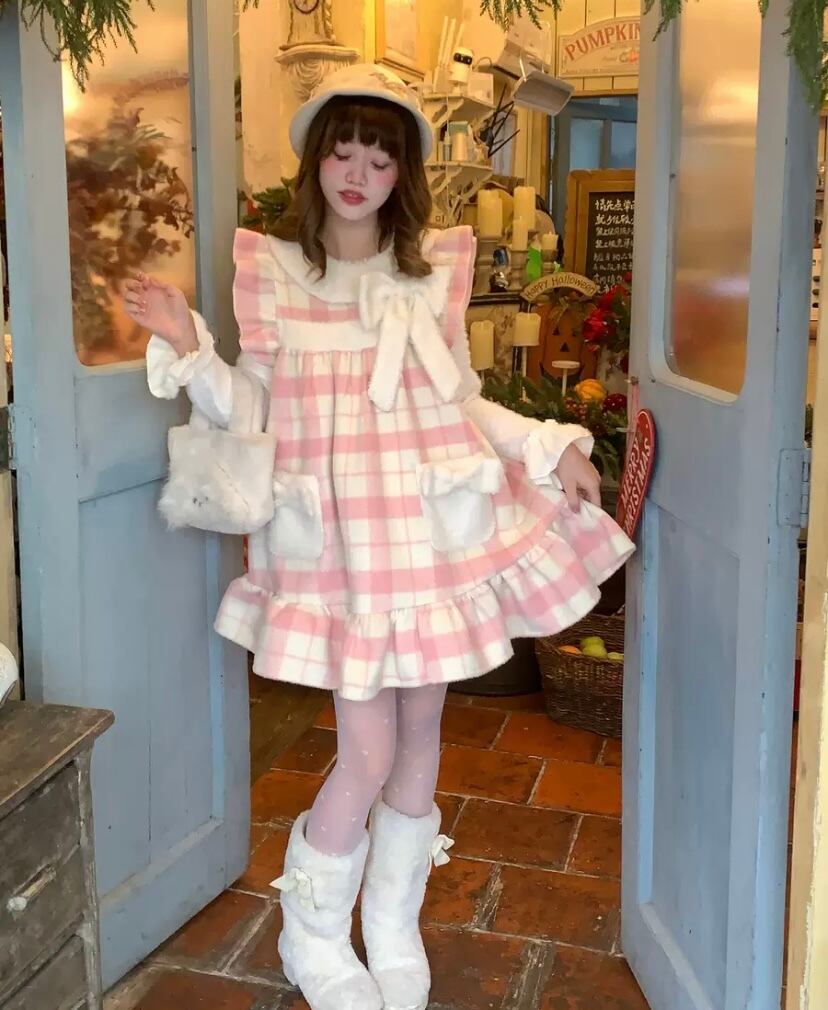 ピンク ガーリー チェック ワンピース リボン 可愛い スカート
