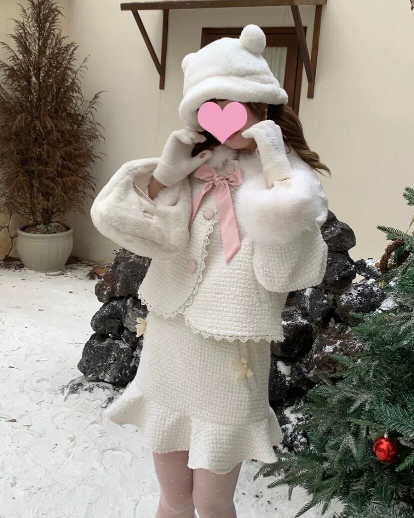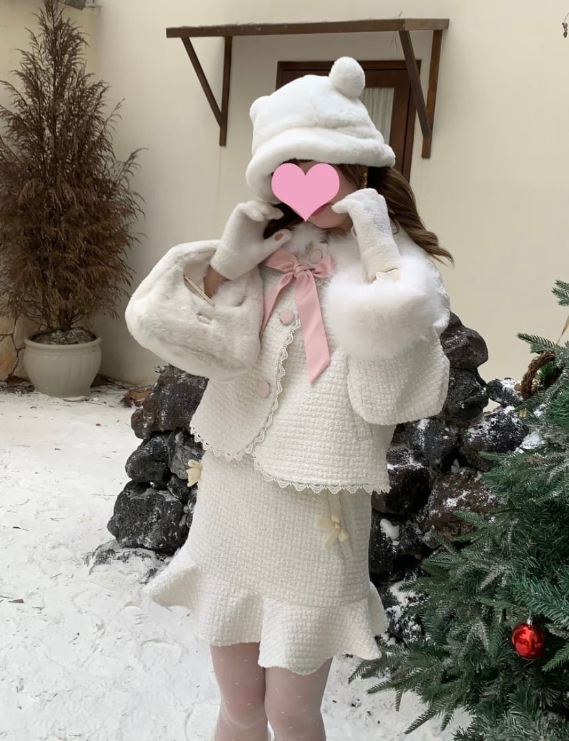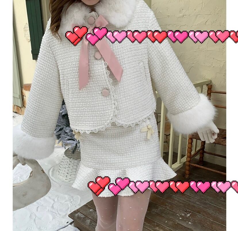【セットアップ】白 ジャケット ミニスカート ガーリー スーツ リボン 可愛い