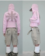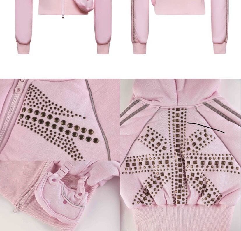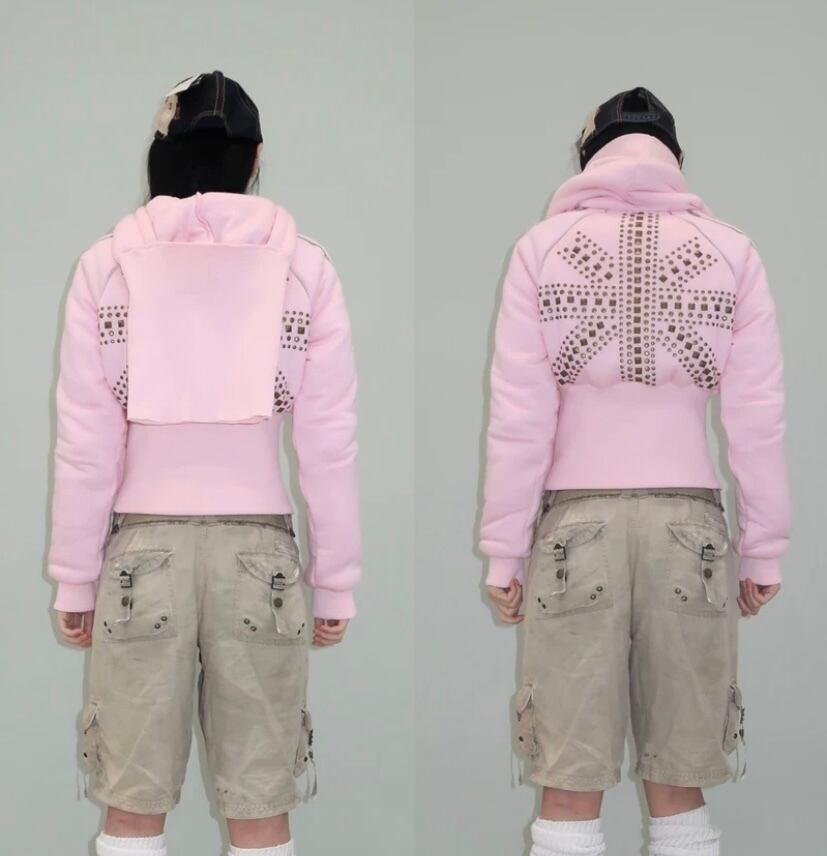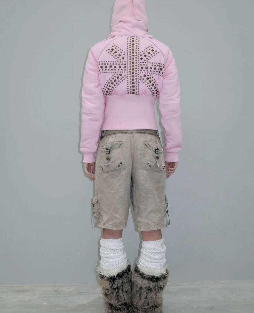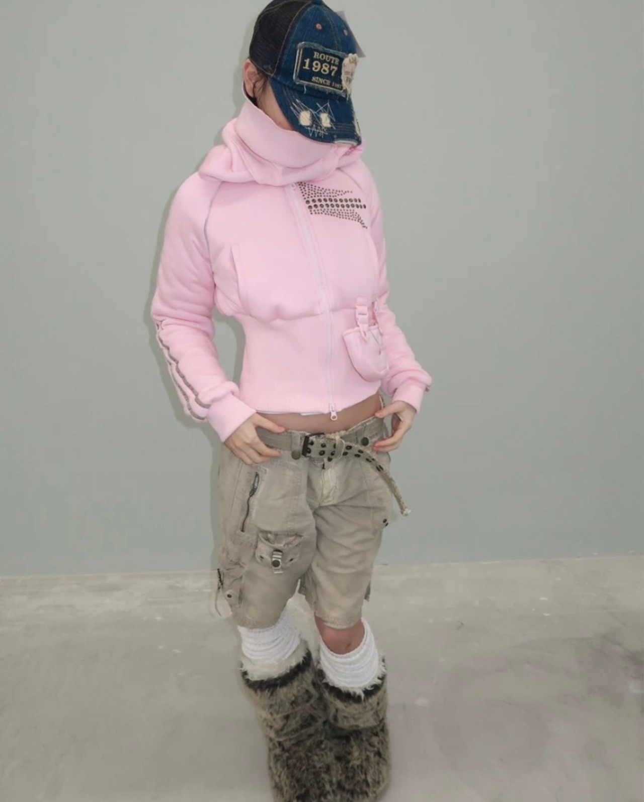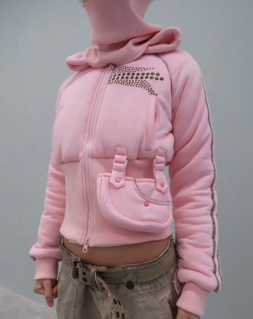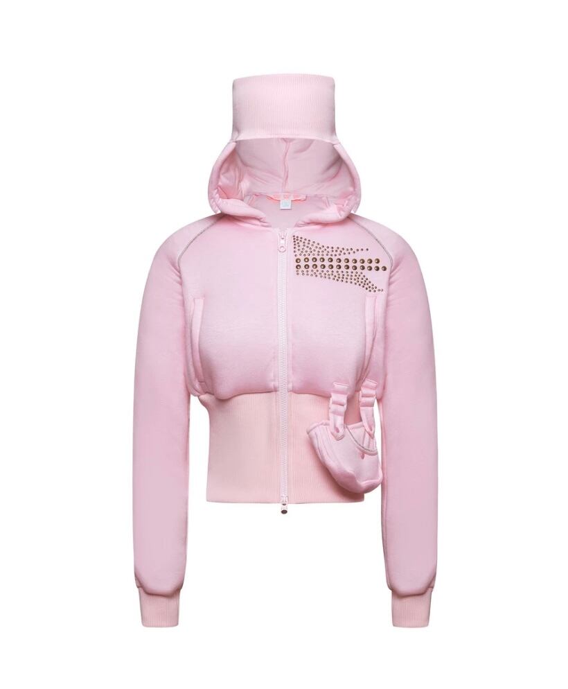 ハイネック パーカー ピンク アウター ジャンバー コート スウェット ラインストーン