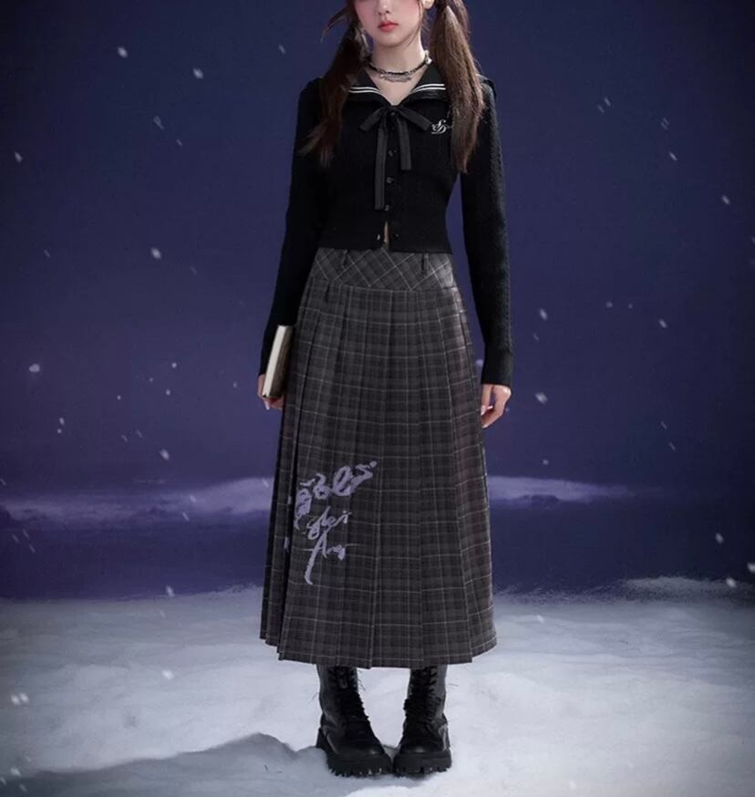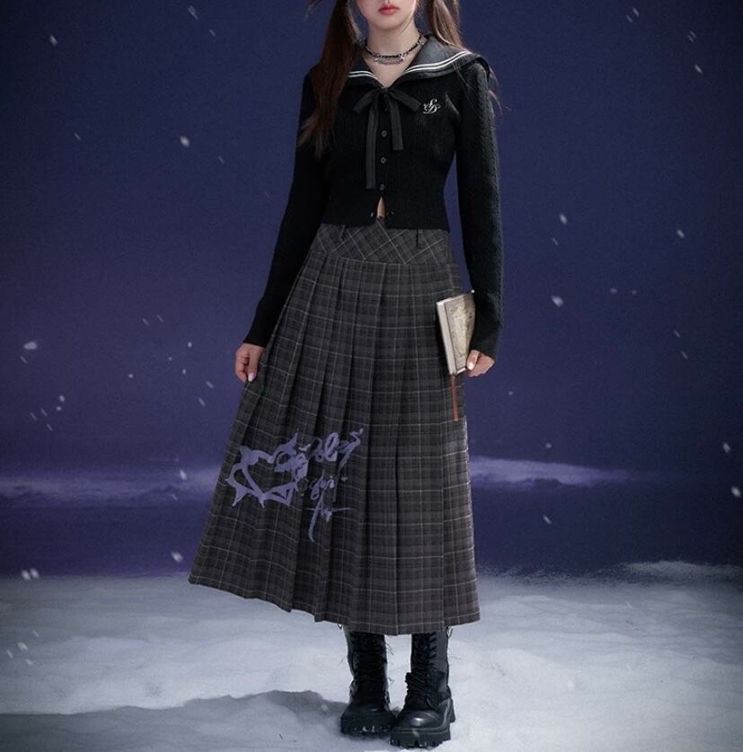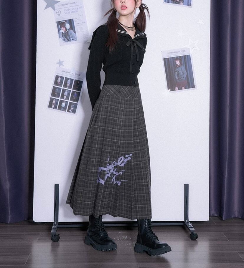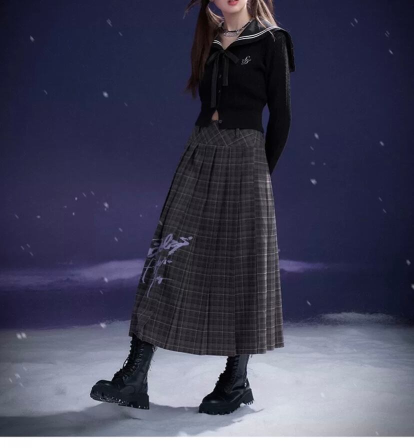 グレー チェック ガーリー プリーツスカート 可愛い ボトムス スクール 制服