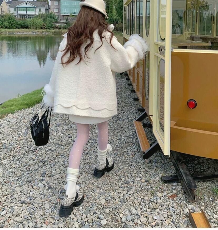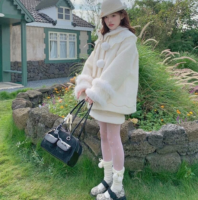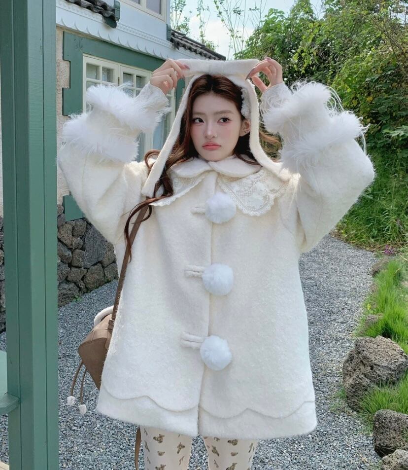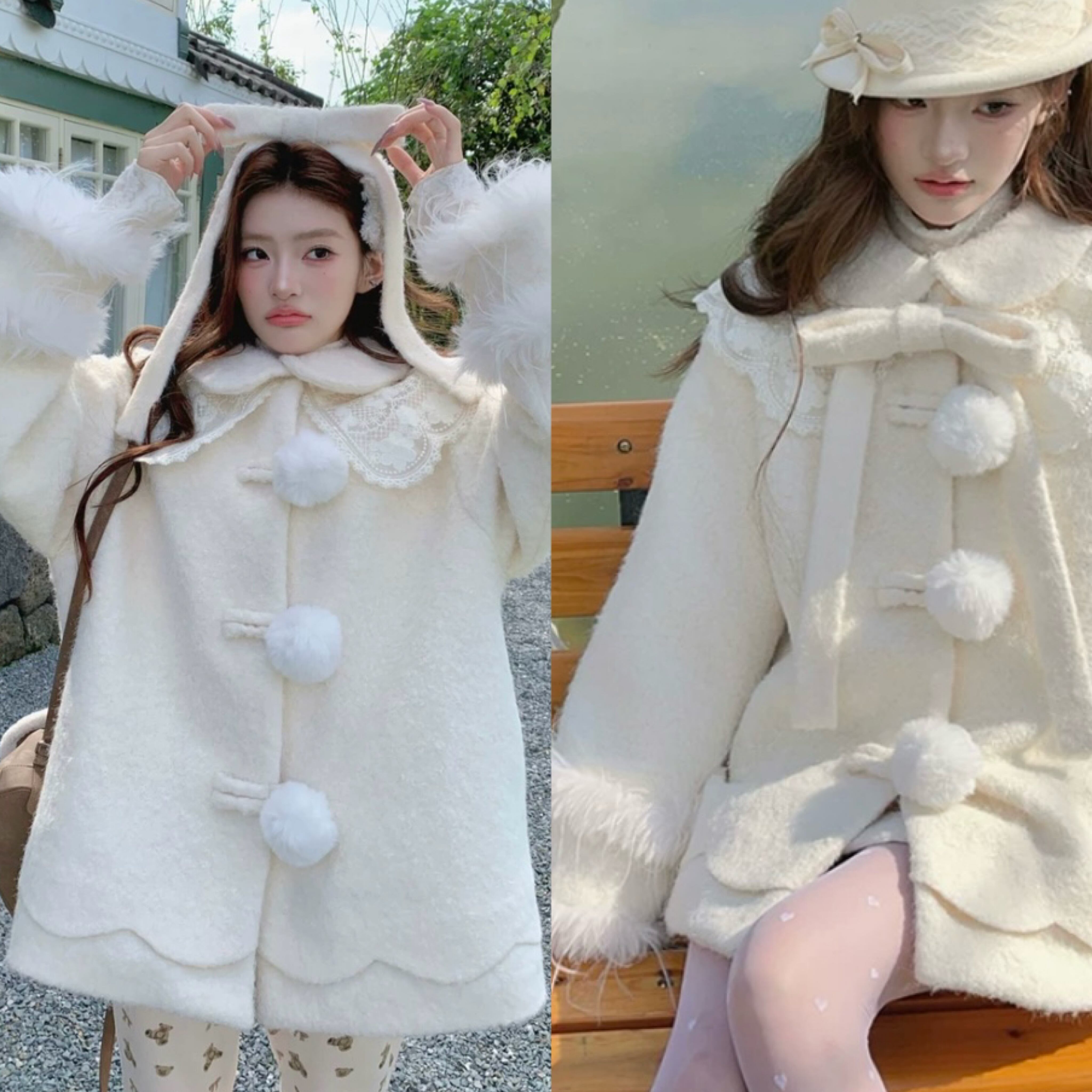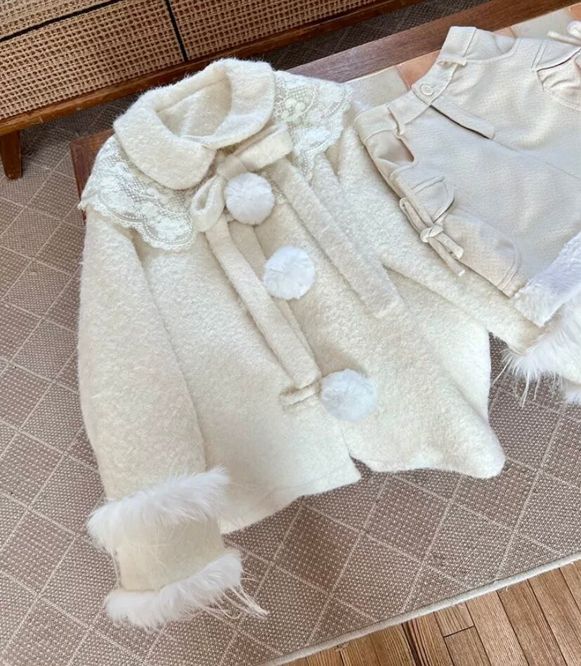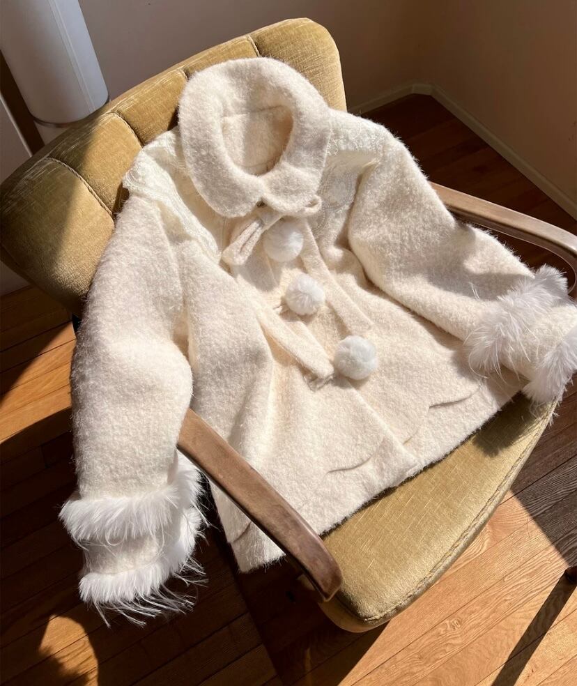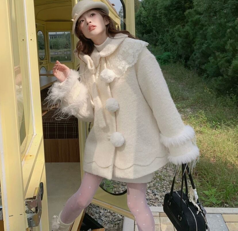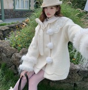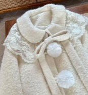 ぽんぽん ガーリー 白 丸襟 コート ジャケット カーディガン リボン アウター
