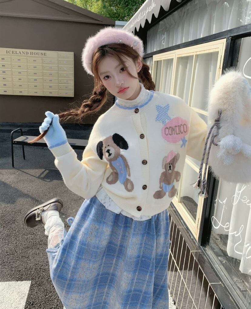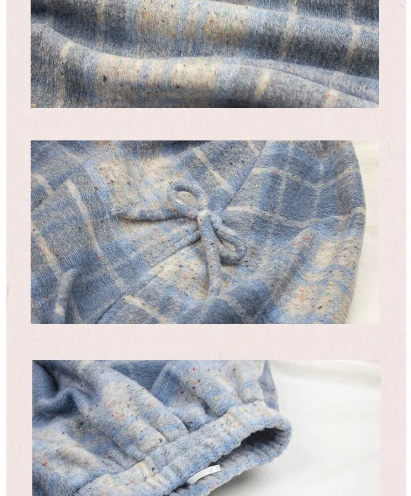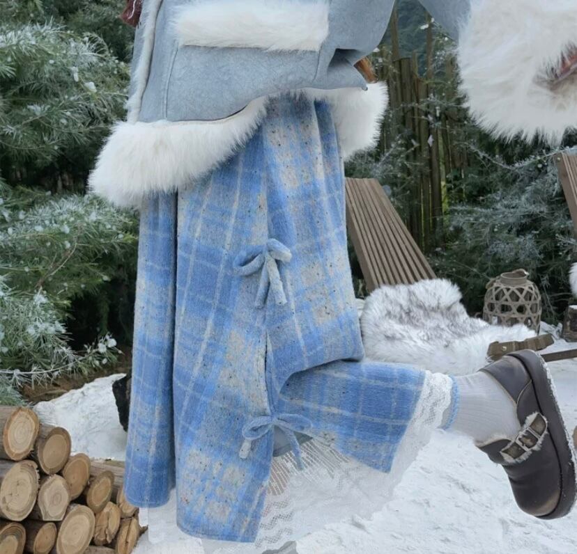 水色 チェック スカート ボトムス リボン ガーリー 原宿 可愛い