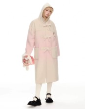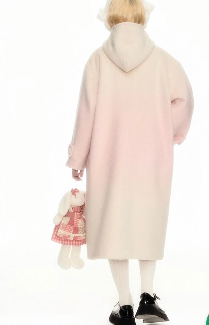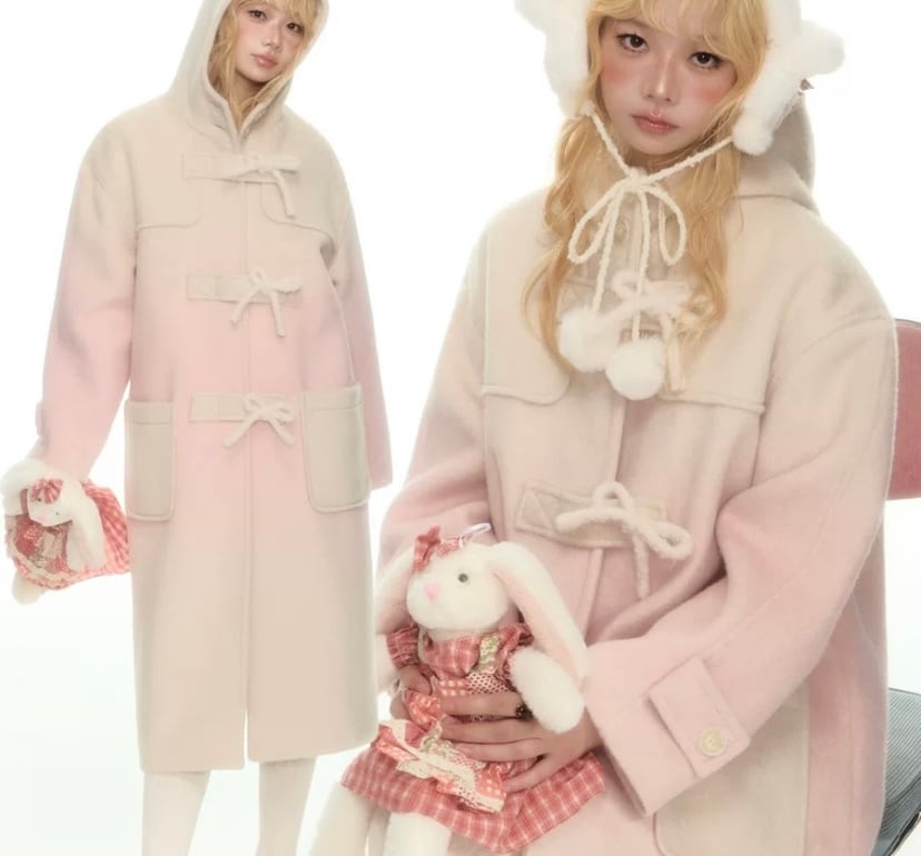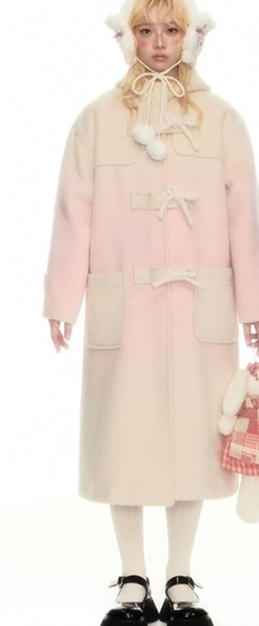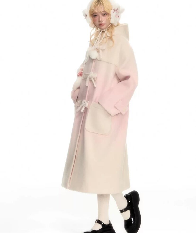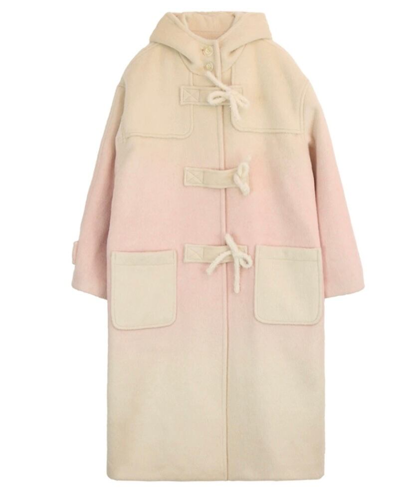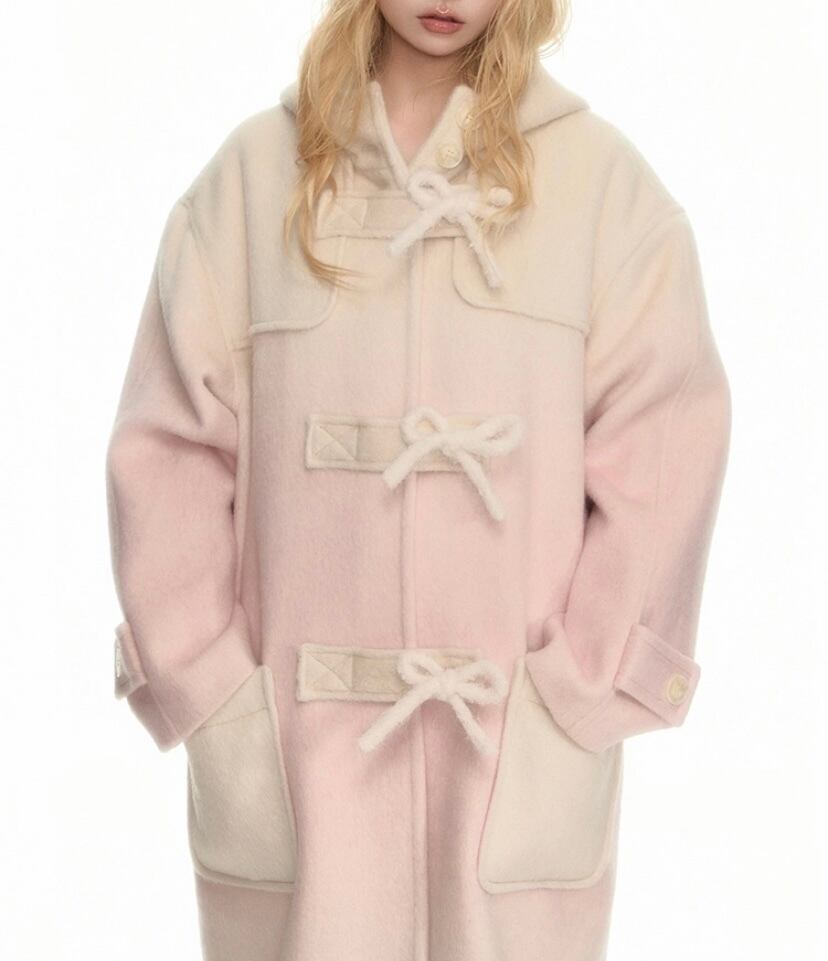 ピンク グラデーション フード ジャケット アウター 可愛い ピーコート カーディガン ハイネック リボン 可愛い 原宿