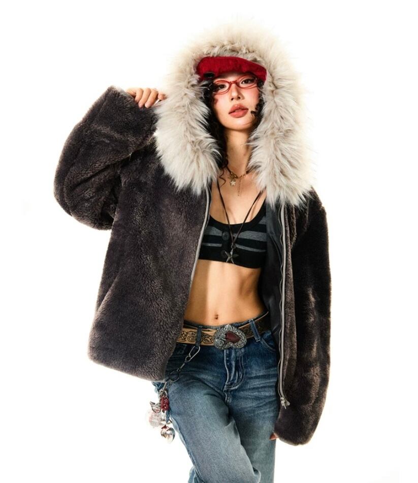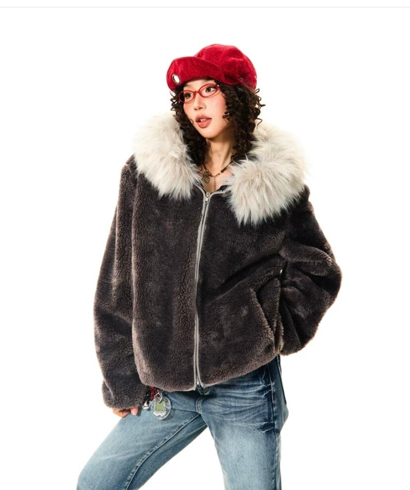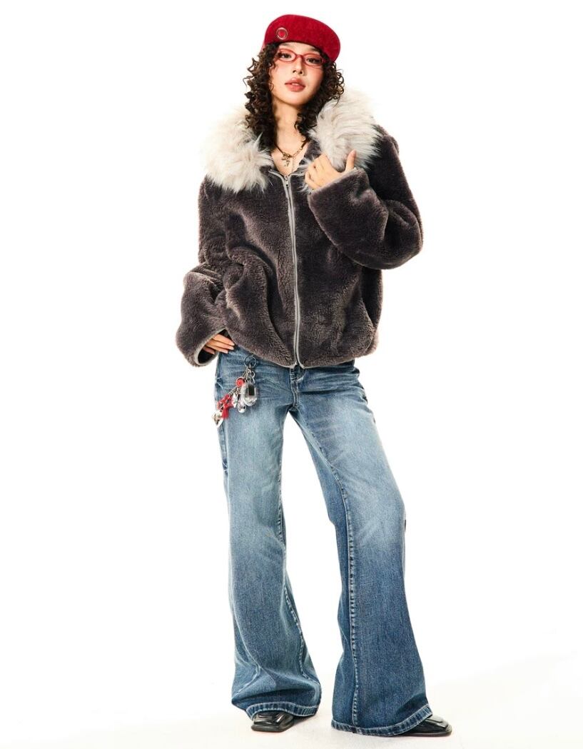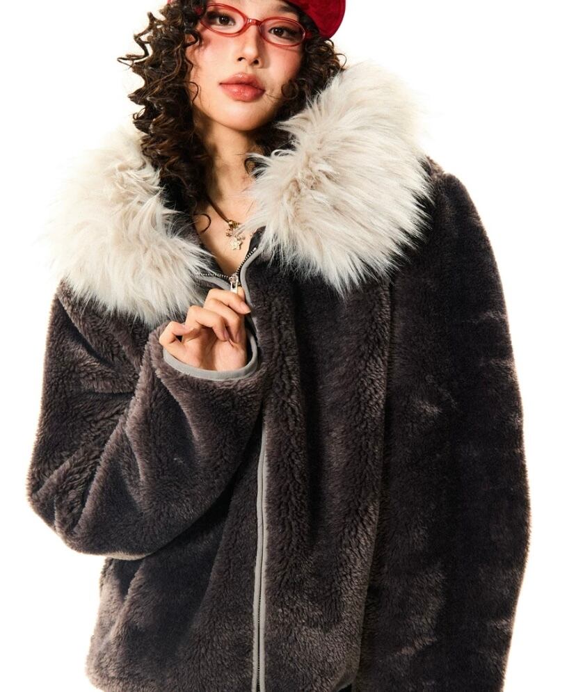 茶色 フード ファー アウター ジャケット コート XL ストリート