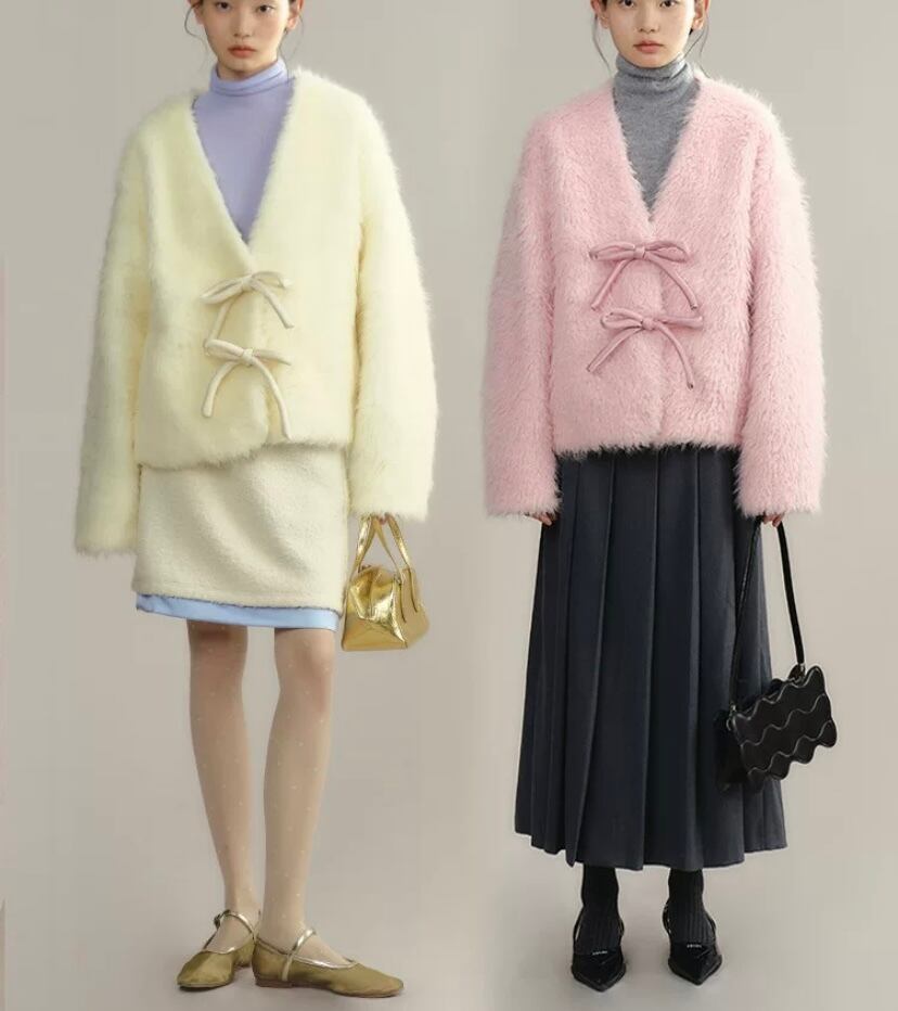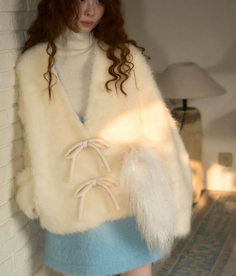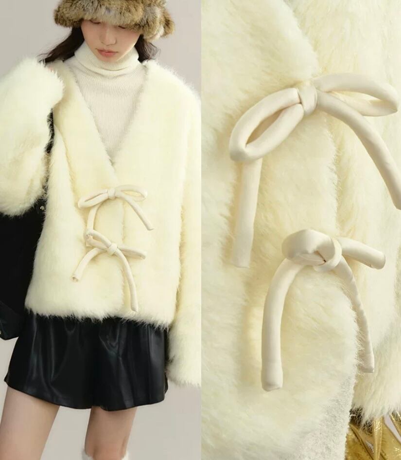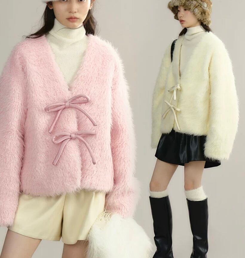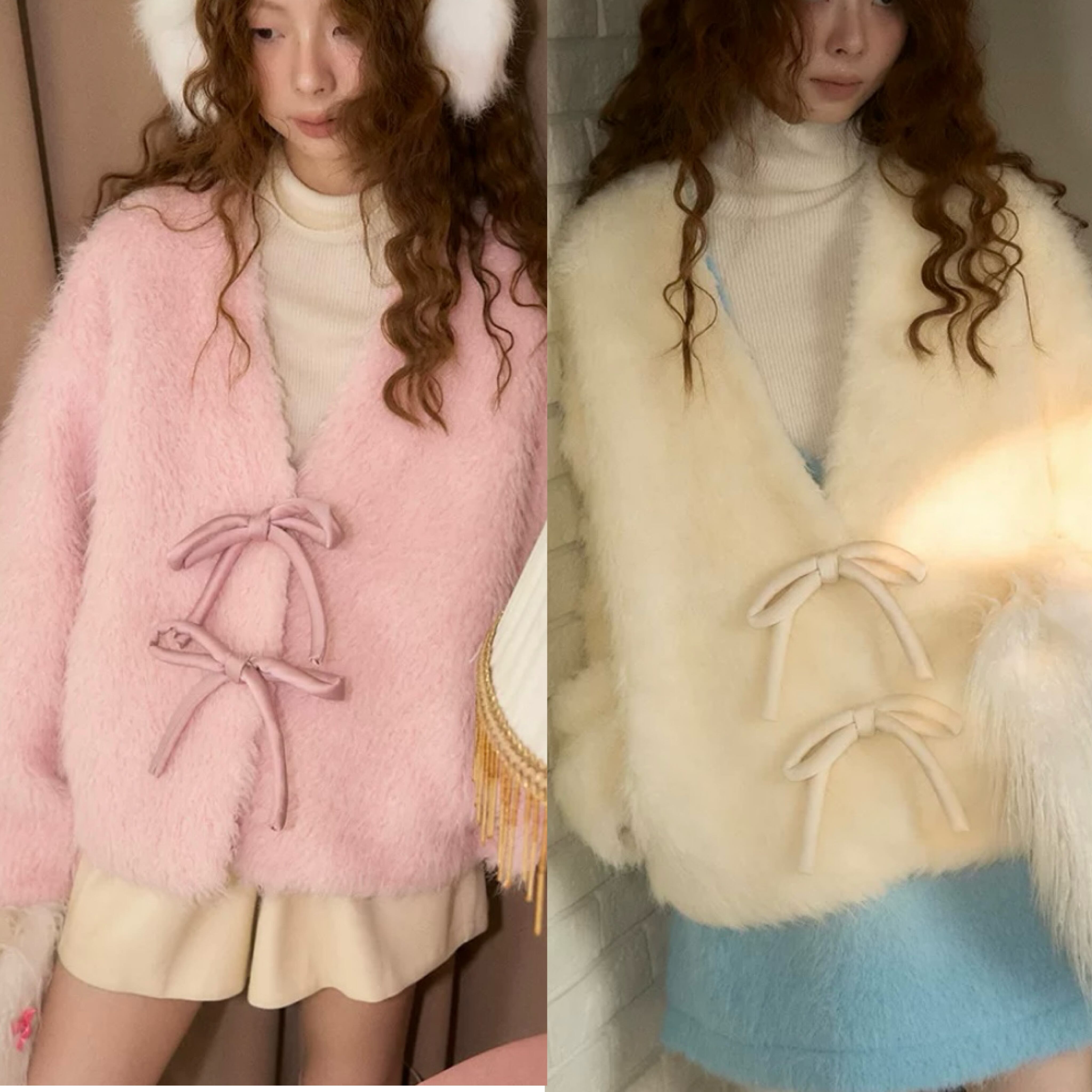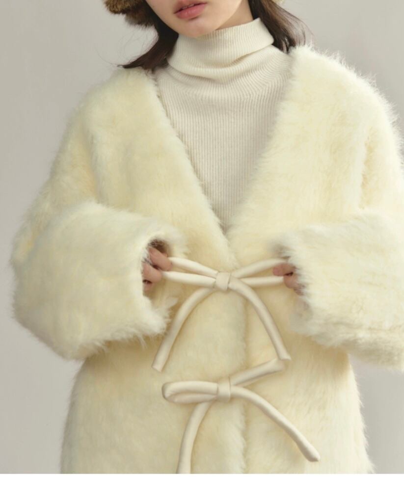 アウター コート ファー 白 ピンク ガーリー カーディガン ジャケット 可愛い リボン