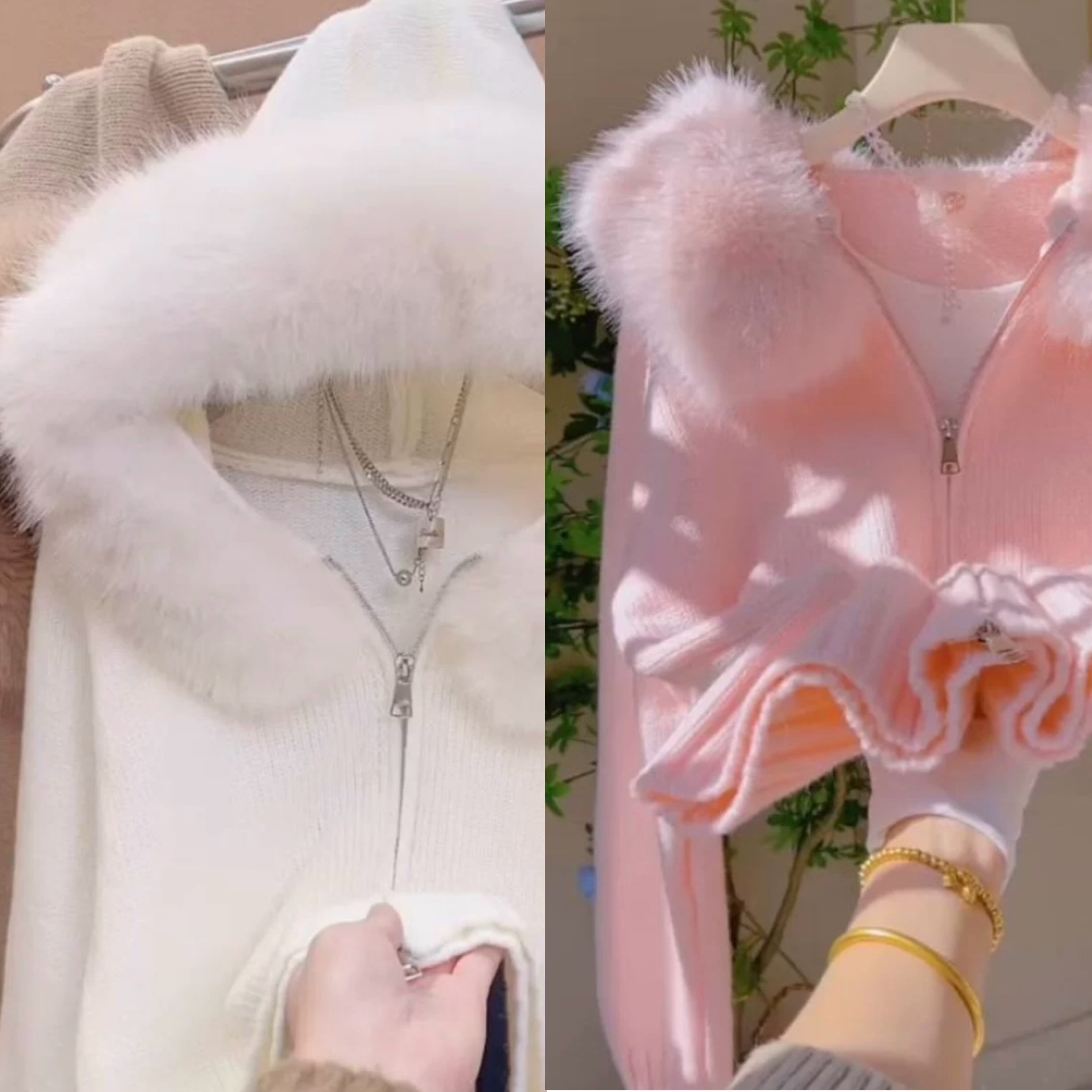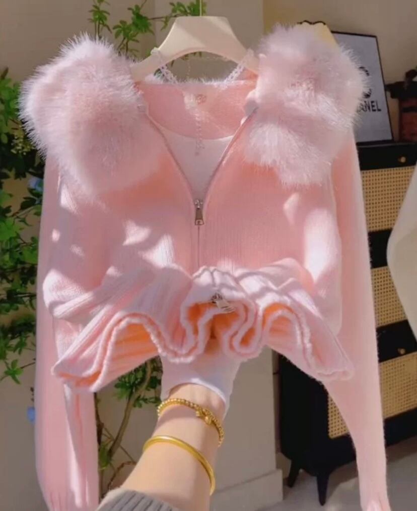 ★サイズ パーカー セーター トレーナー カーディガン フード ファー ピンク シンプル 白 カジュアル コート アウター