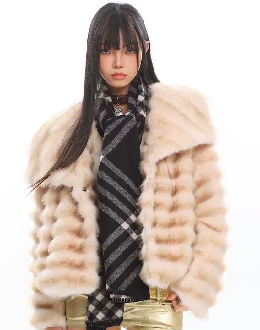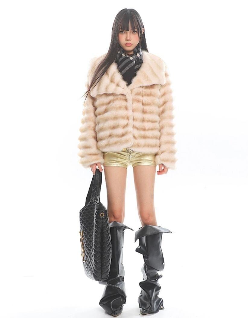ベージュ コート ファー アウター ジャケット ストリート ゴージャス コート カーディガン ジャケット ストリート 渋谷