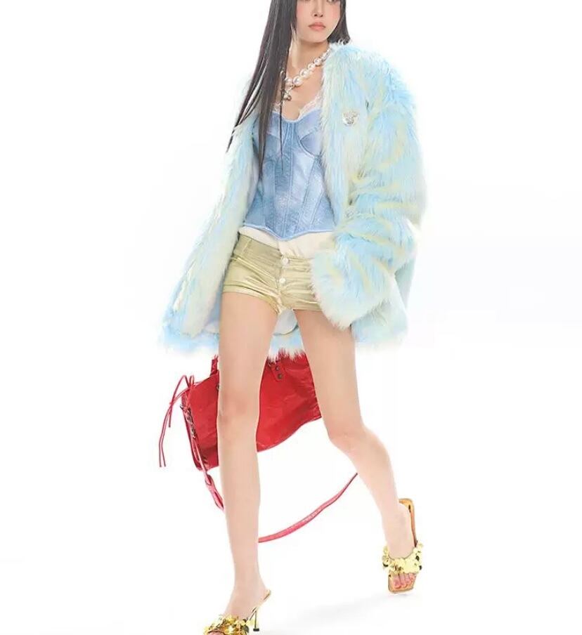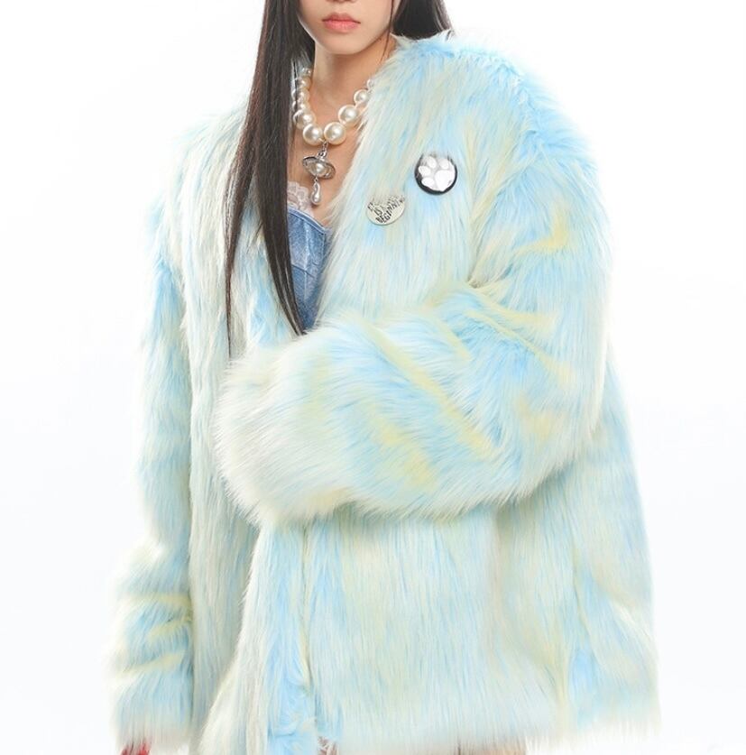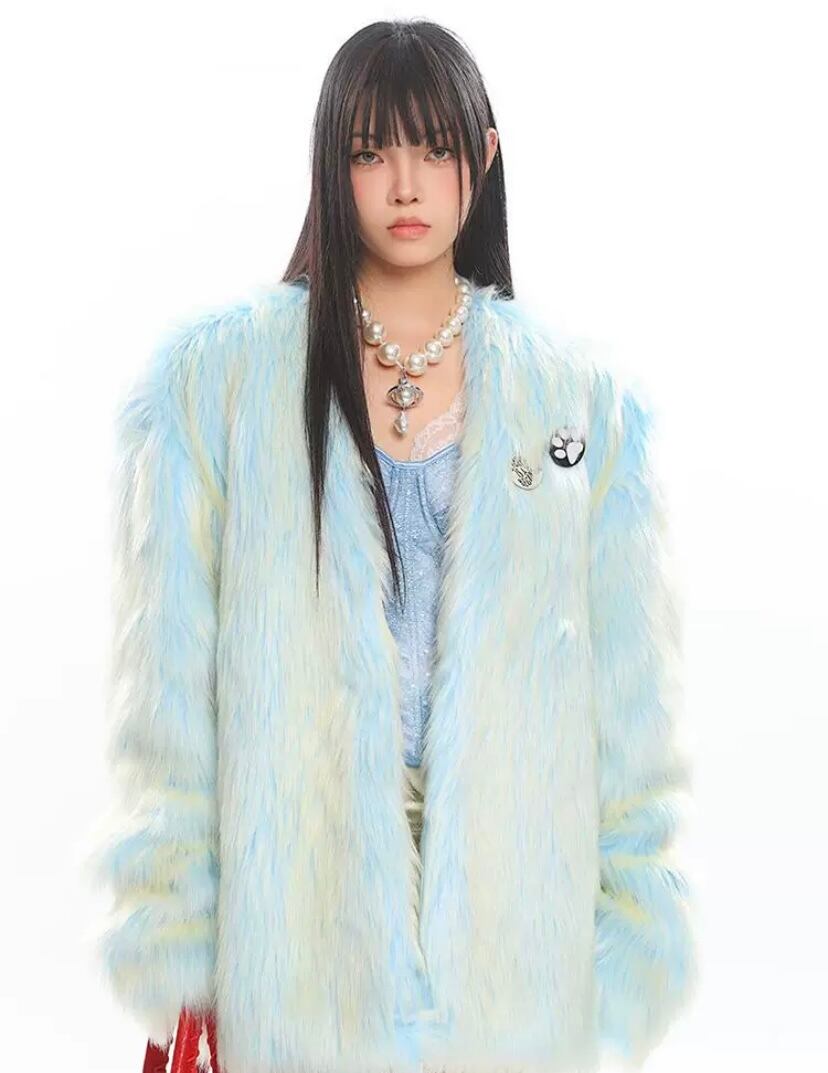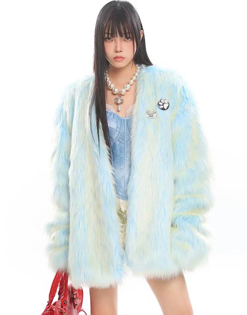 水色 グラデーション ファ コート アウター ストリート カジュアル 渋谷 ゴージャス