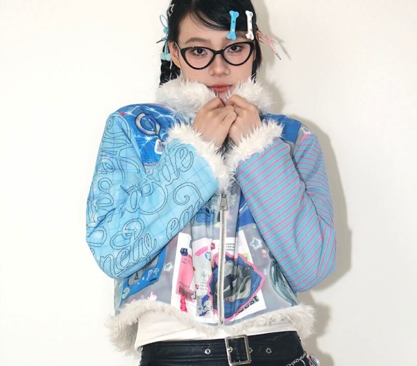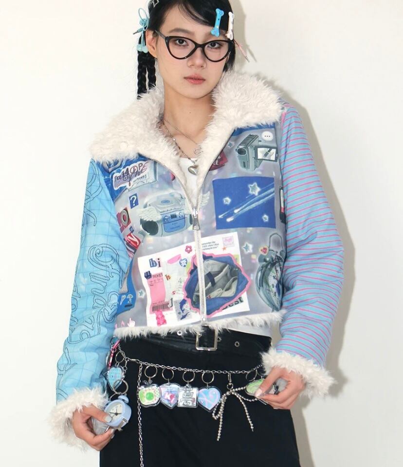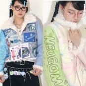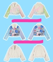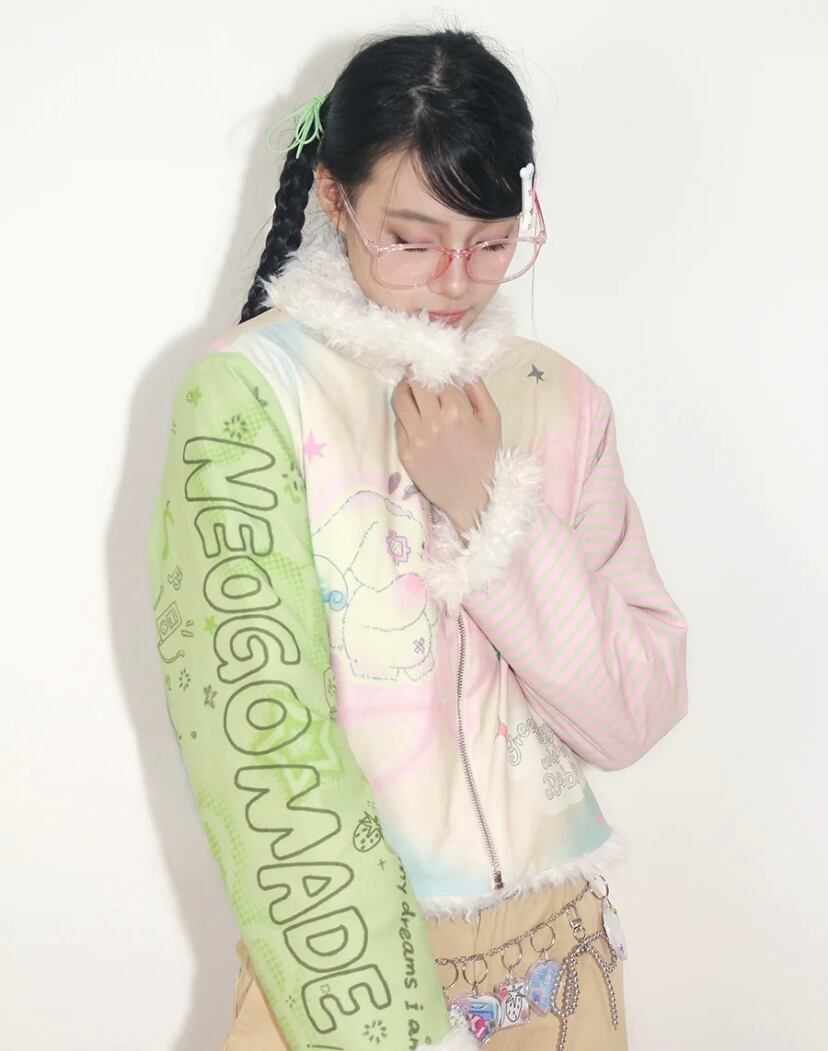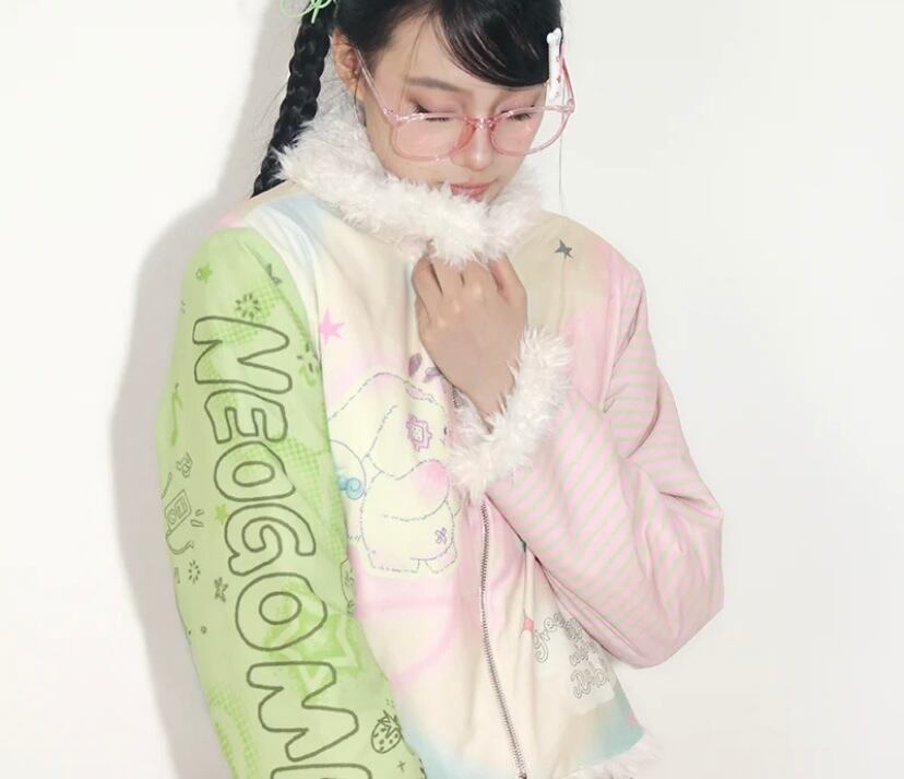 【リバーシブル】水色 緑 レトロ フリース ジャンバー ピンク コート ジャケット アウター ボーダー 原宿 チェック
