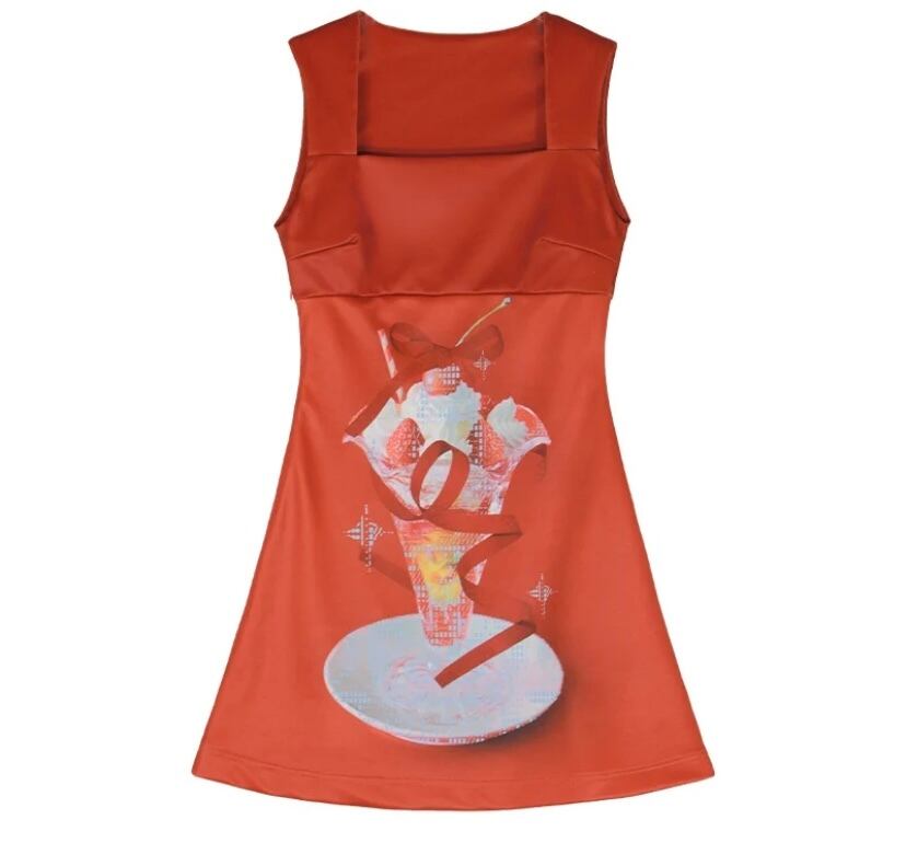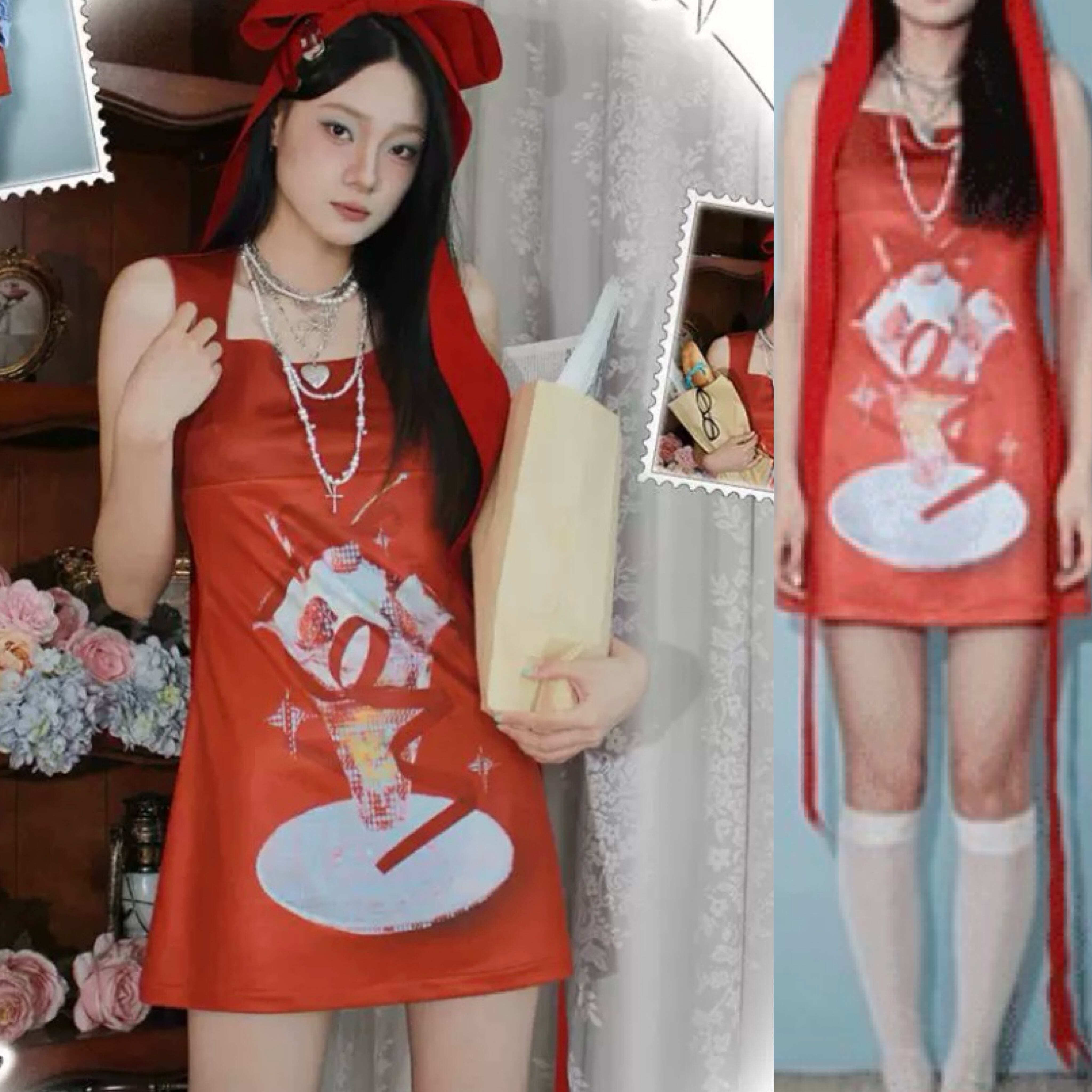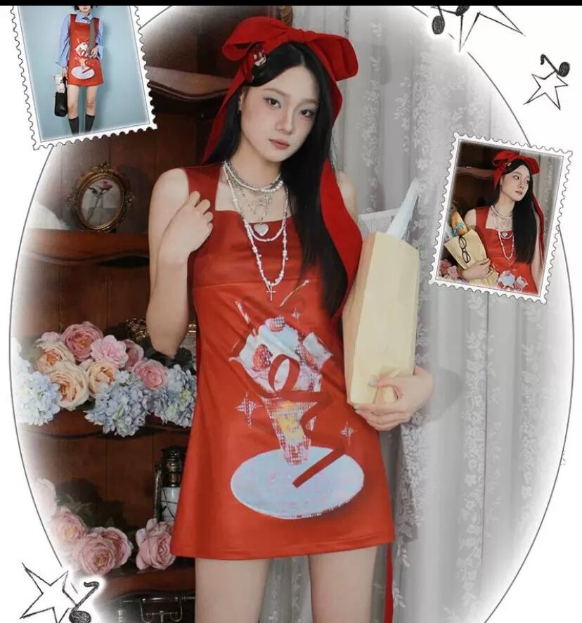 赤 リボン お菓子 スイーツ パフェ アイス ワンピース ガーリー 赤 ドレス 原宿 レトロ ワンピース