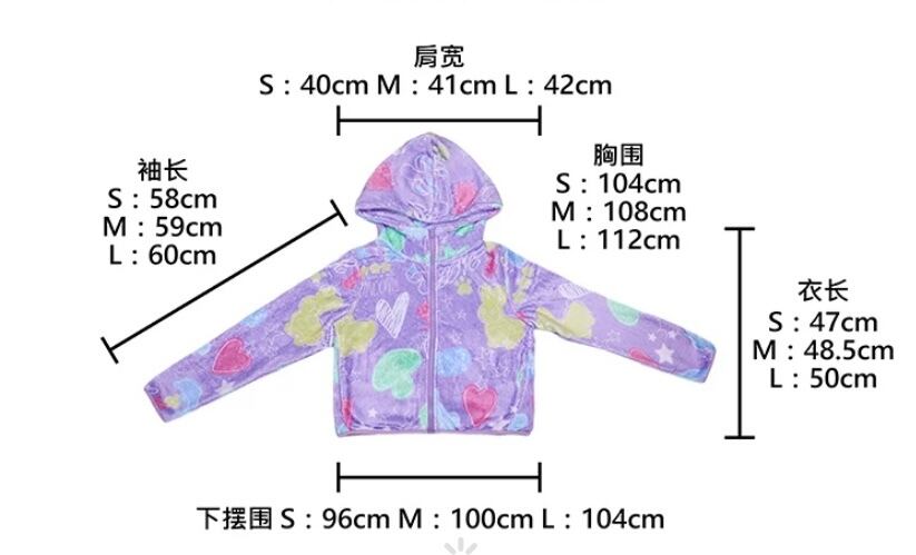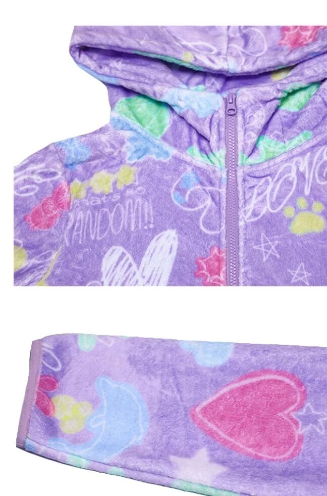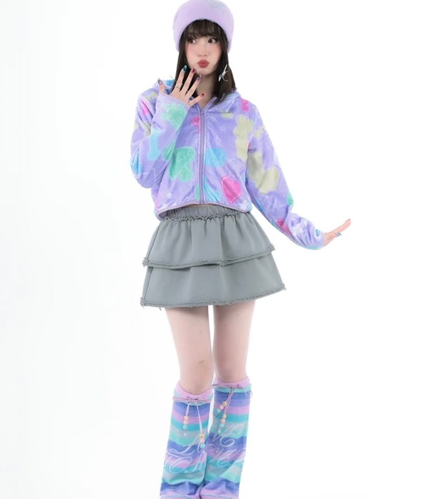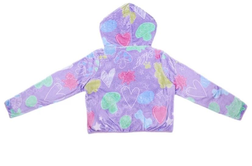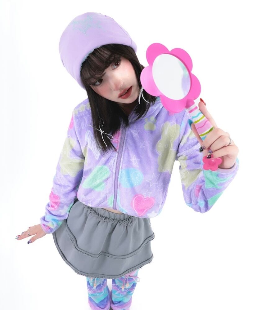 紫 ピンク 黄色 フリース ジャンバー アウター コート パーカ スウェット 原宿 ハート 落書き カジュアル