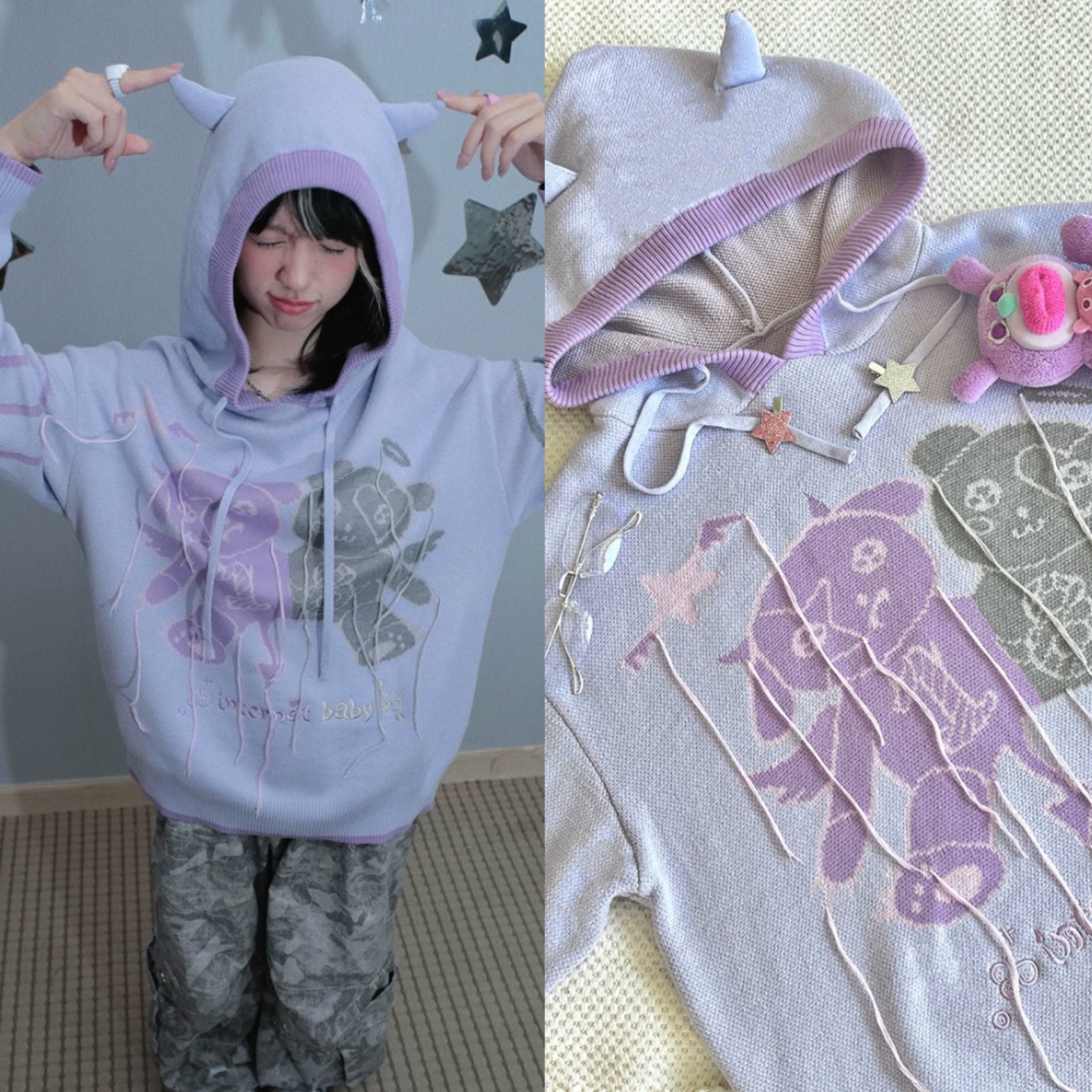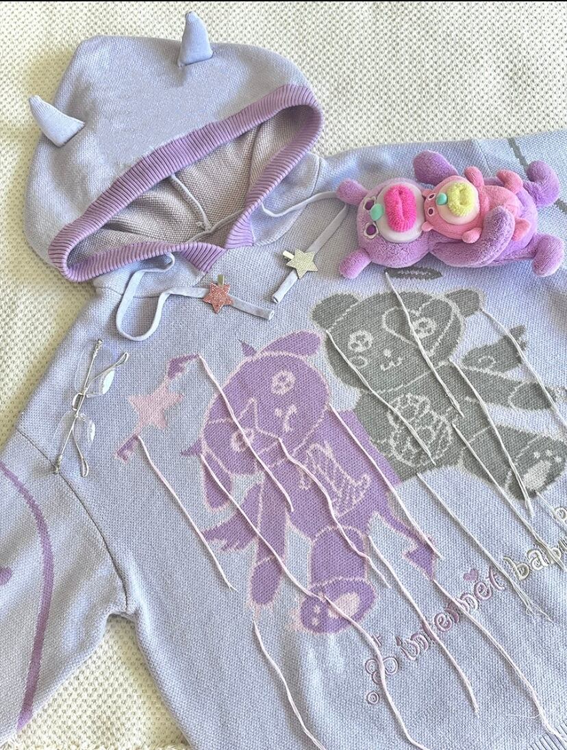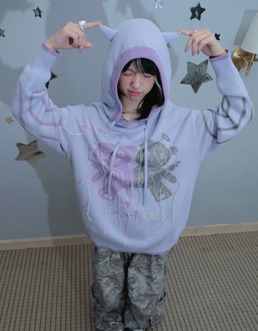 紫 パープル ニット パーカー カジュアル 原宿 ガーリー 熊 トレーナー トップス