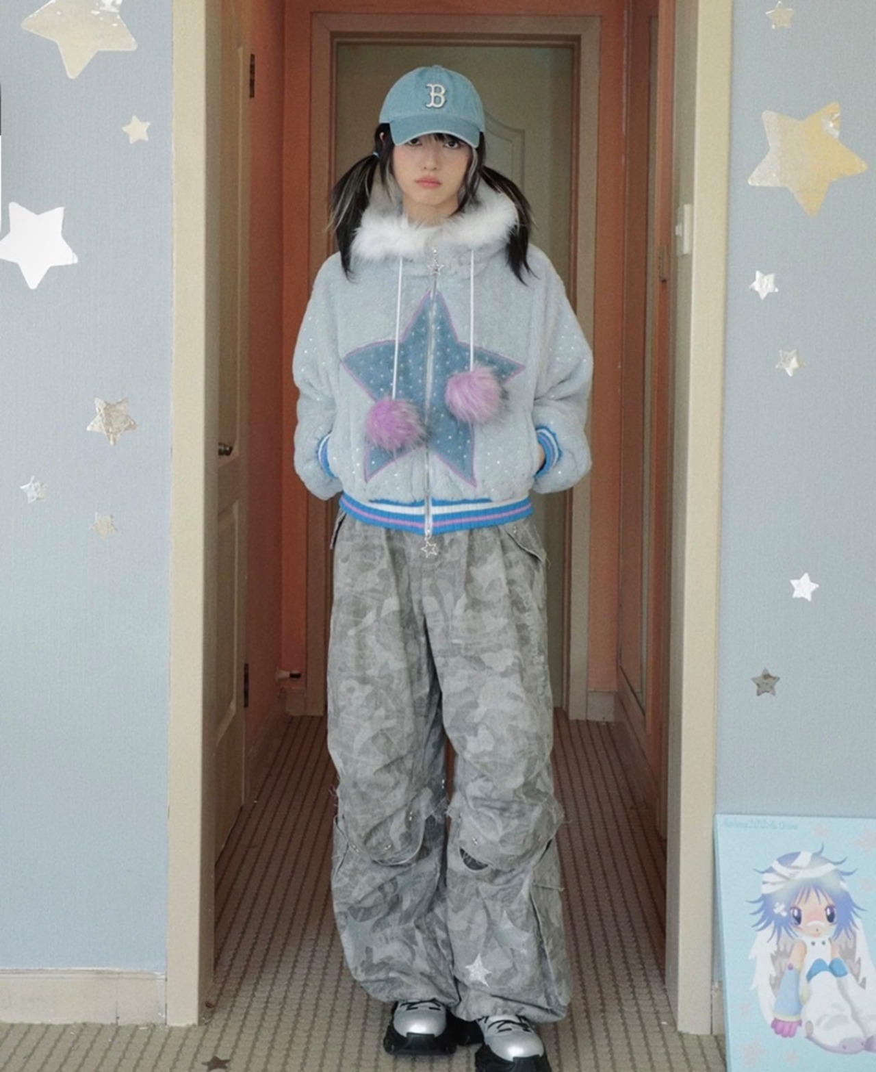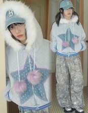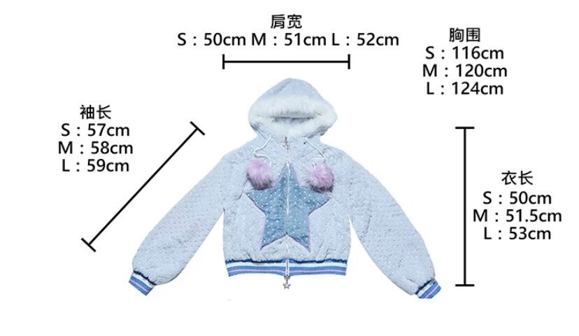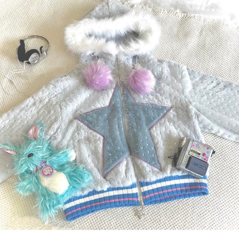 星 水色 パーカ トレーナー アウター フード カジュアル ポンポン 紫 原宿 コート カーディガン