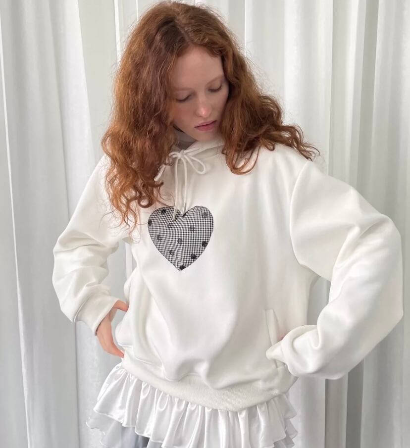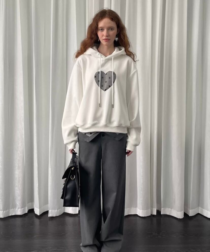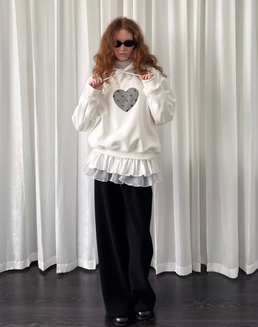 白 ハート 黒 チェック スウェット トレーナー パーカー カジュアル カーディガン ホワイト