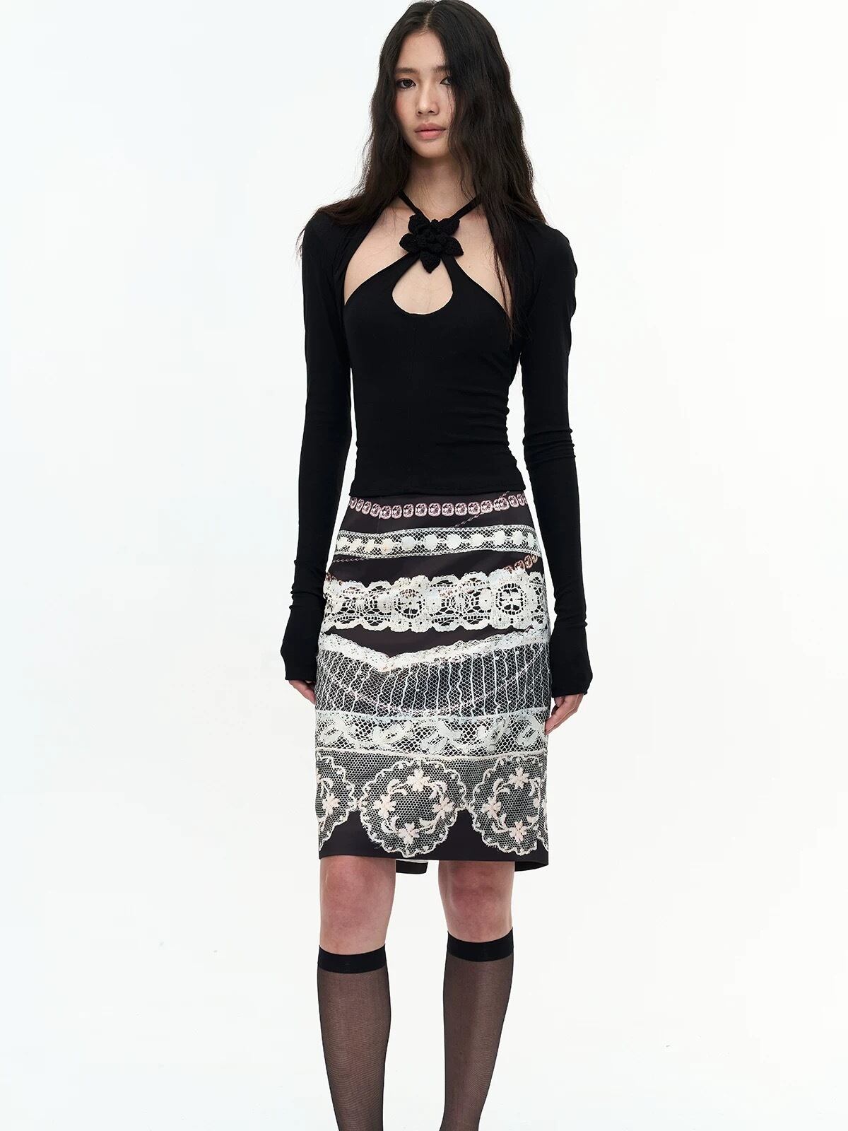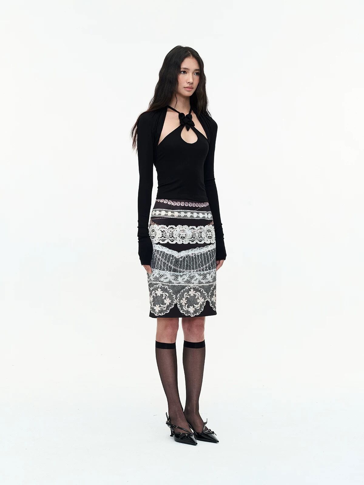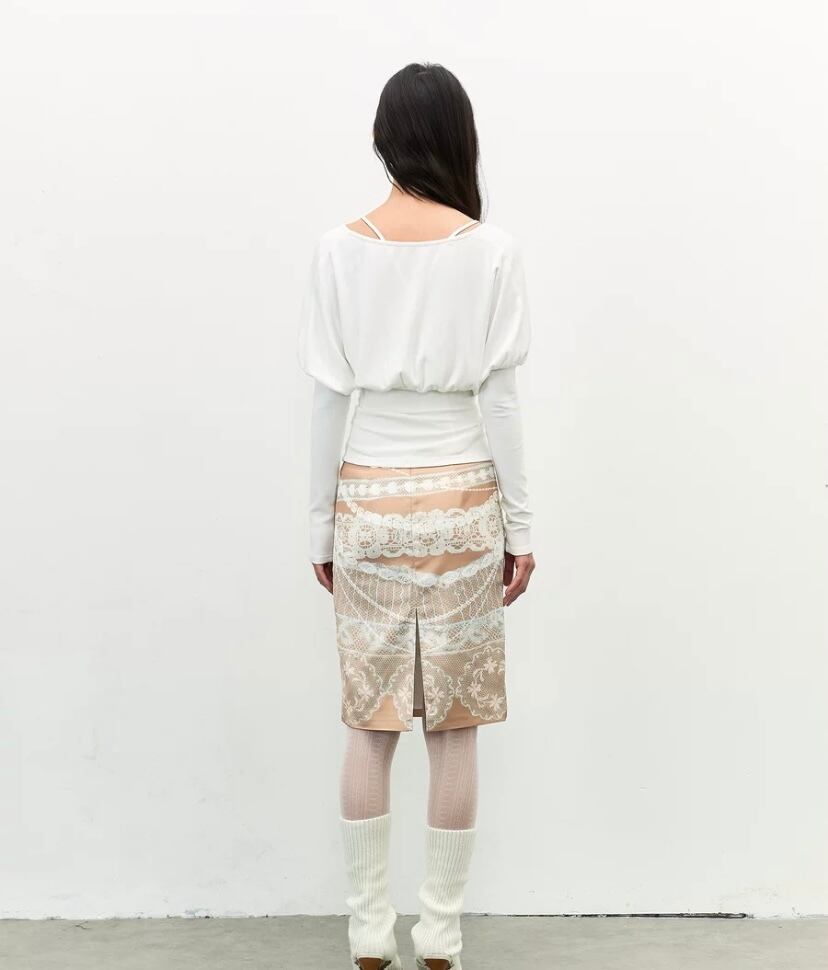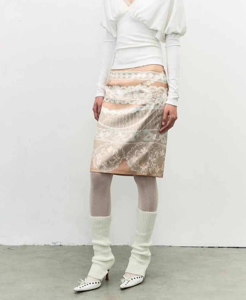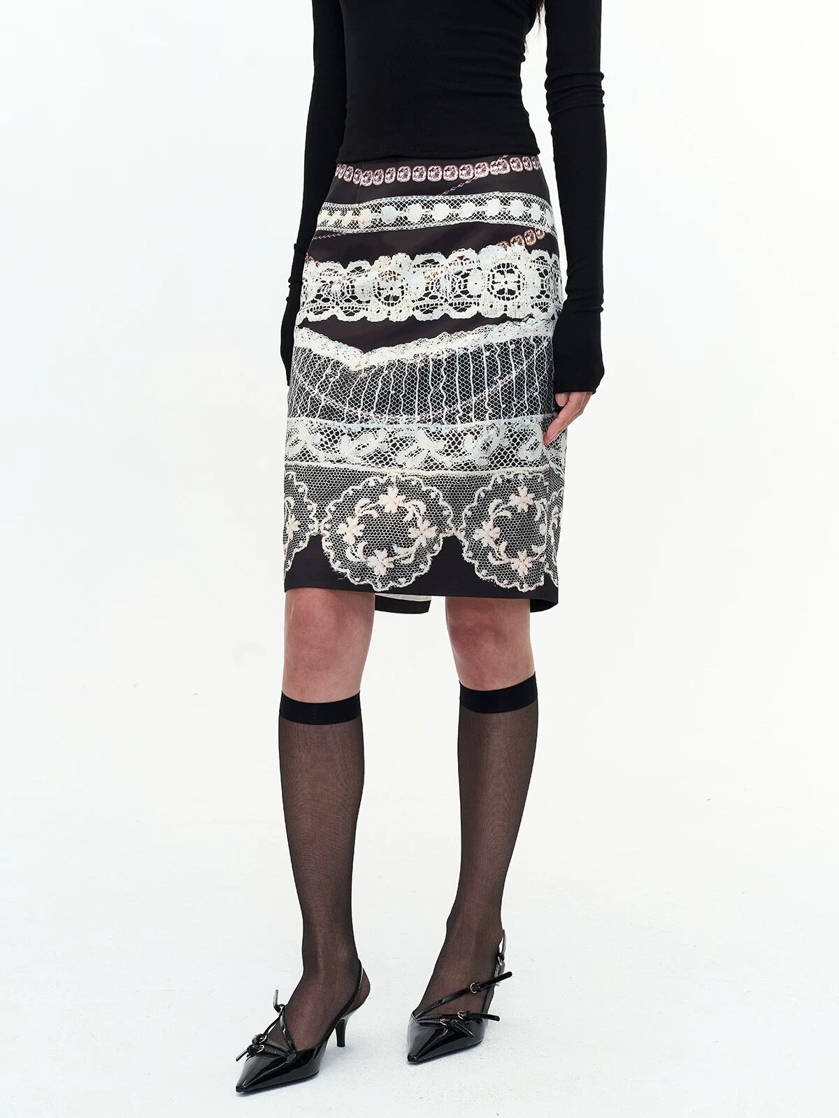黒 ベージュ スリット ブラック チェーン レース ホワイト タイト スカート スリット 膝丈 パール 柄 レース エレガント
