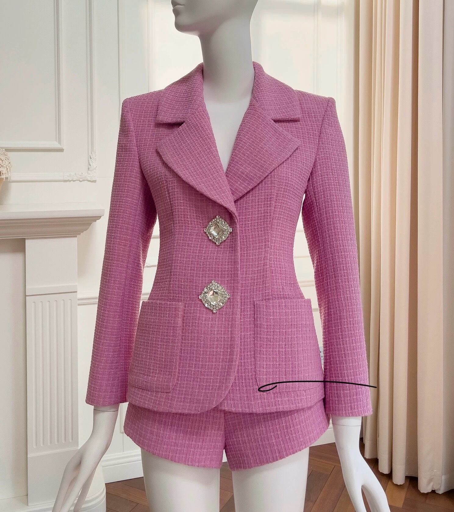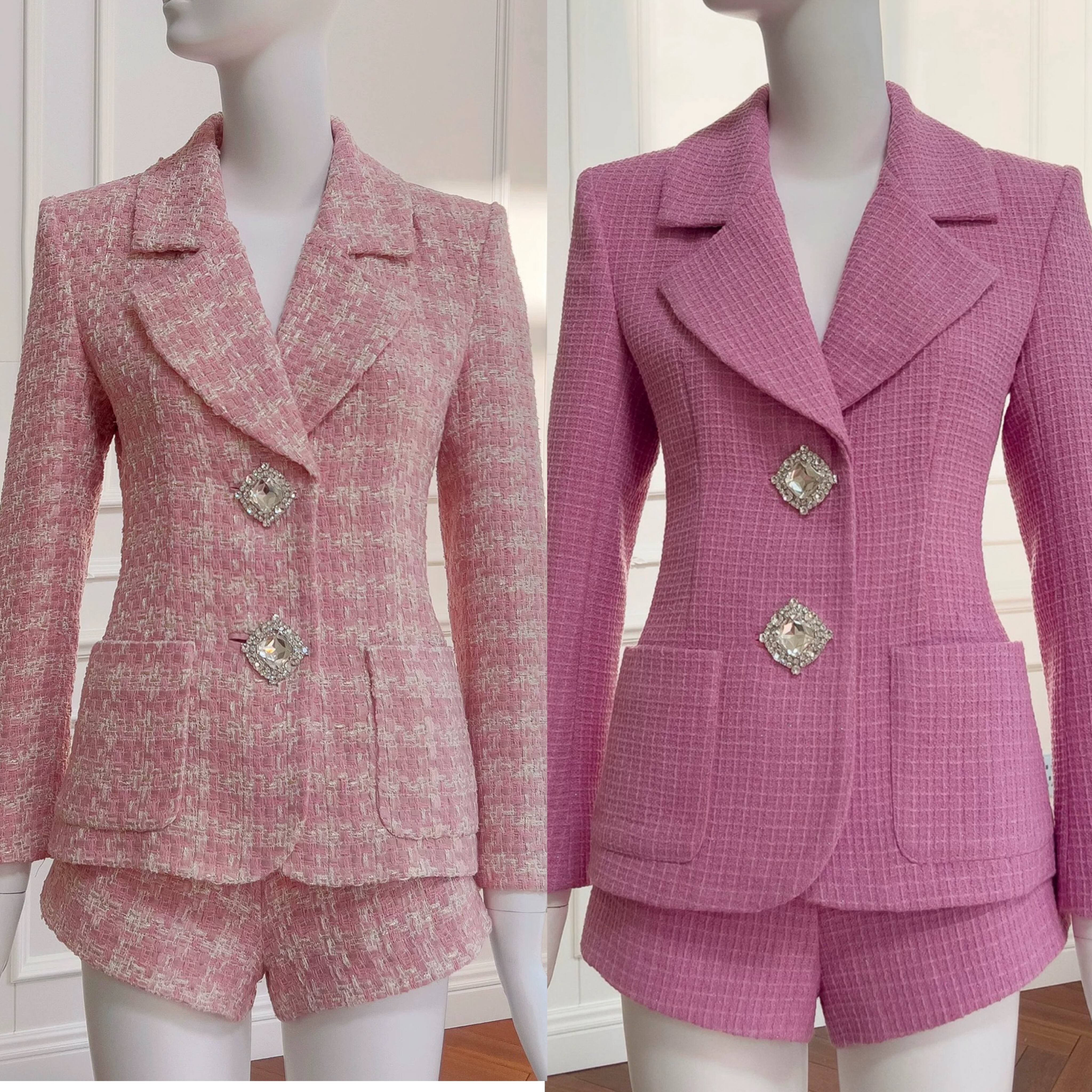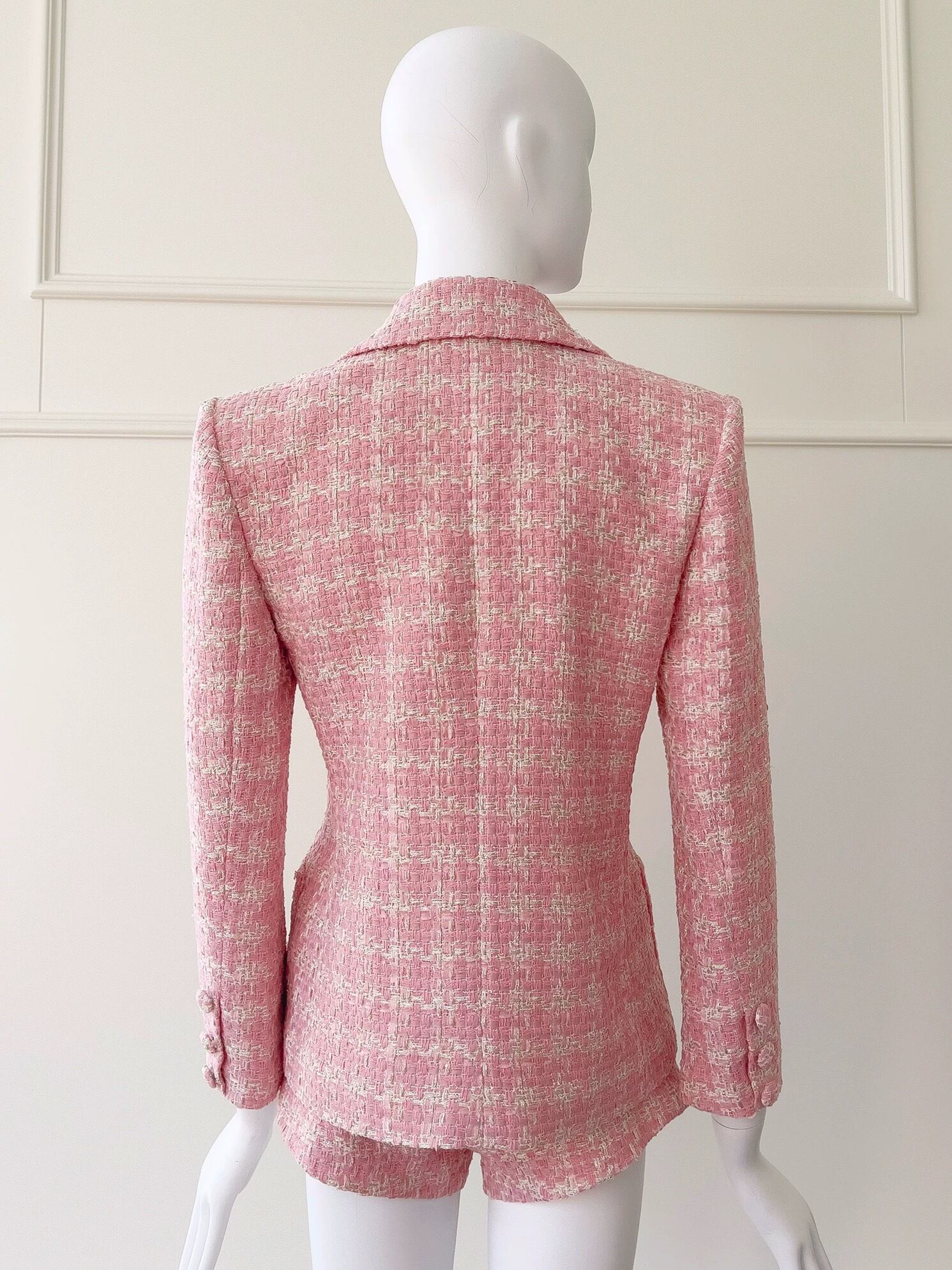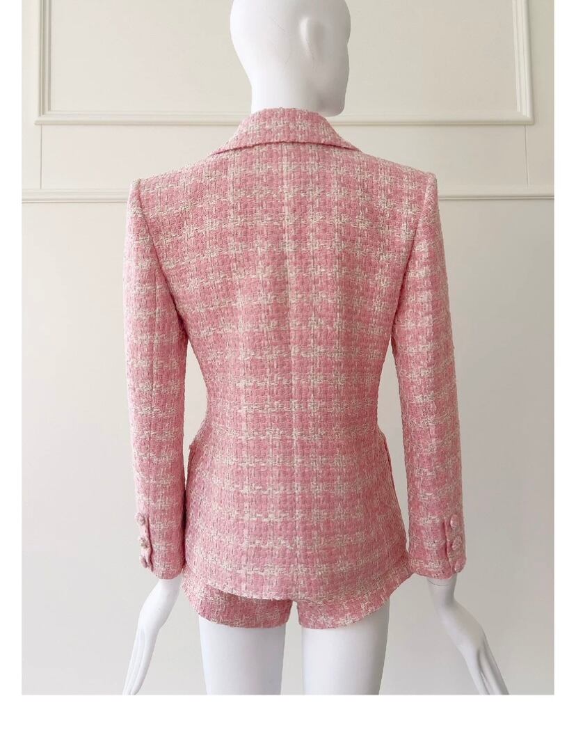 【ジャケット】ピンク スーツ アウター コート チェック ジャケッ かわいい ビジュー ラインストーン エレガント カーディガン