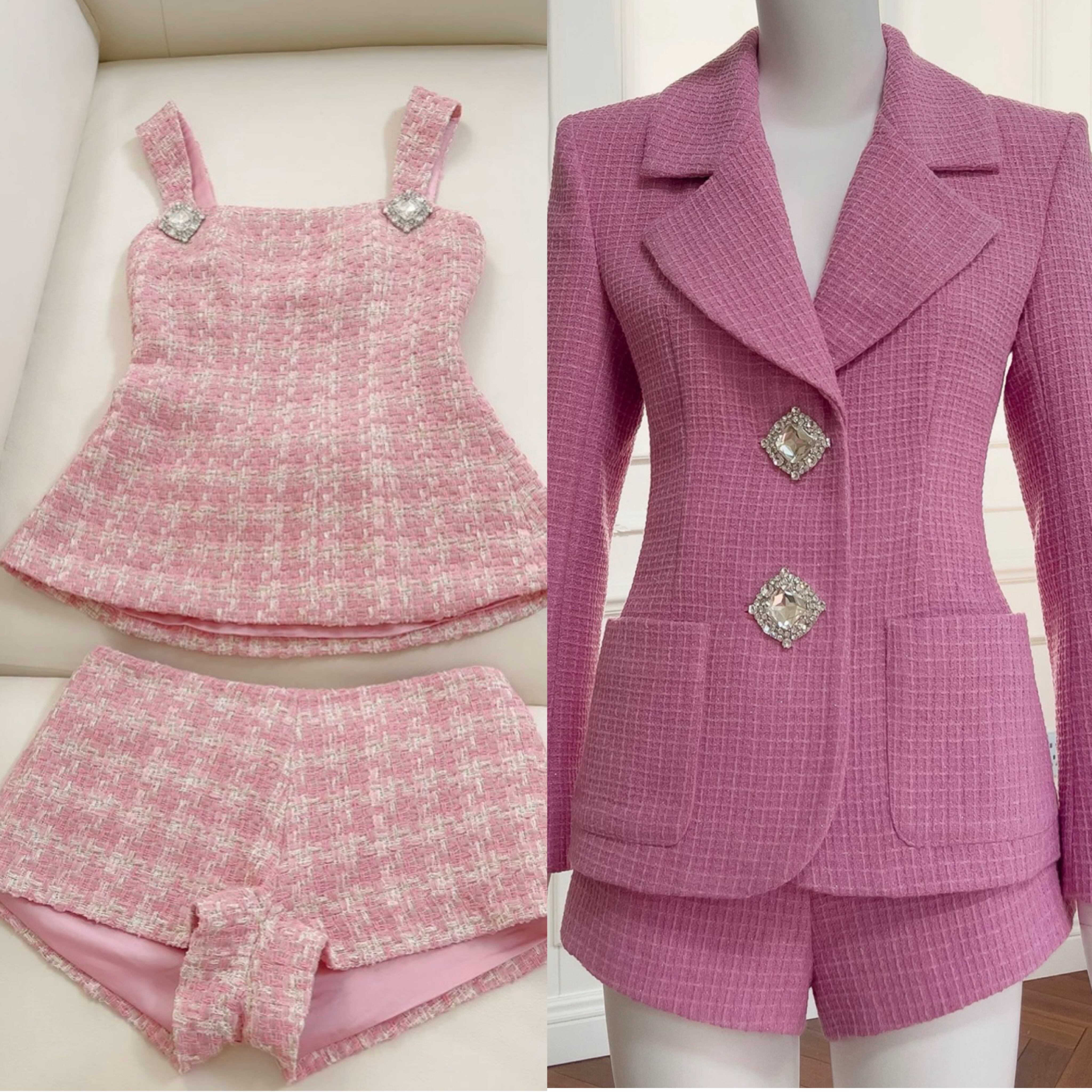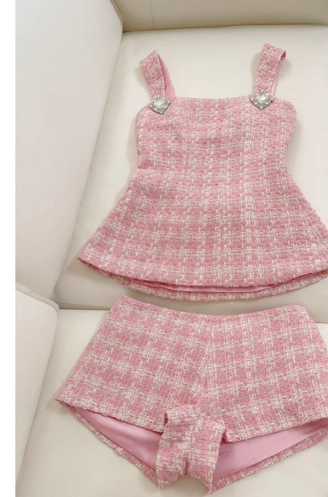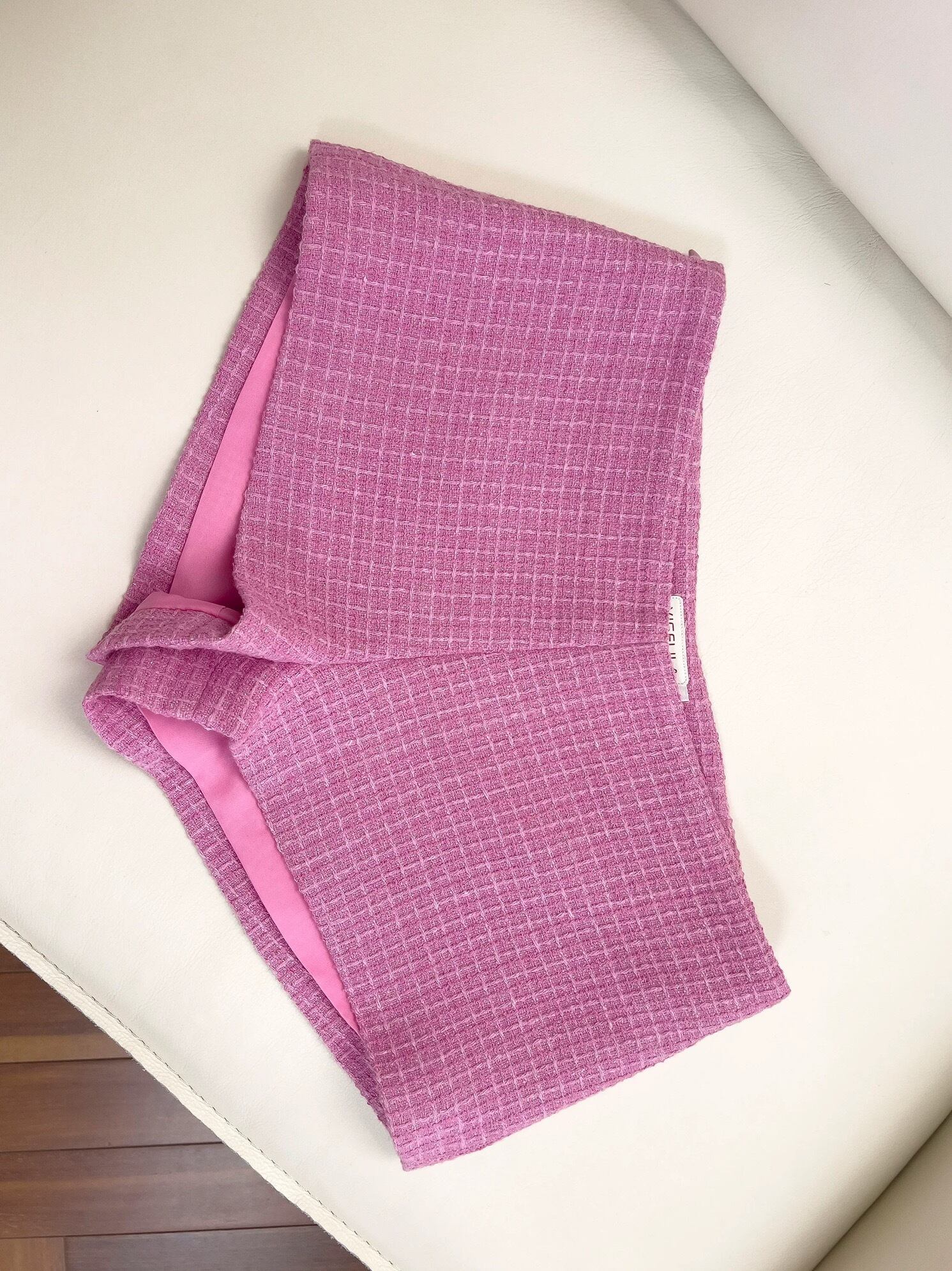 【ボトムス】ショートパンツ チェック ホットパンツ ミニスカート ツイート ピンク かわいい セットアップ スーツ エレガント お嬢様