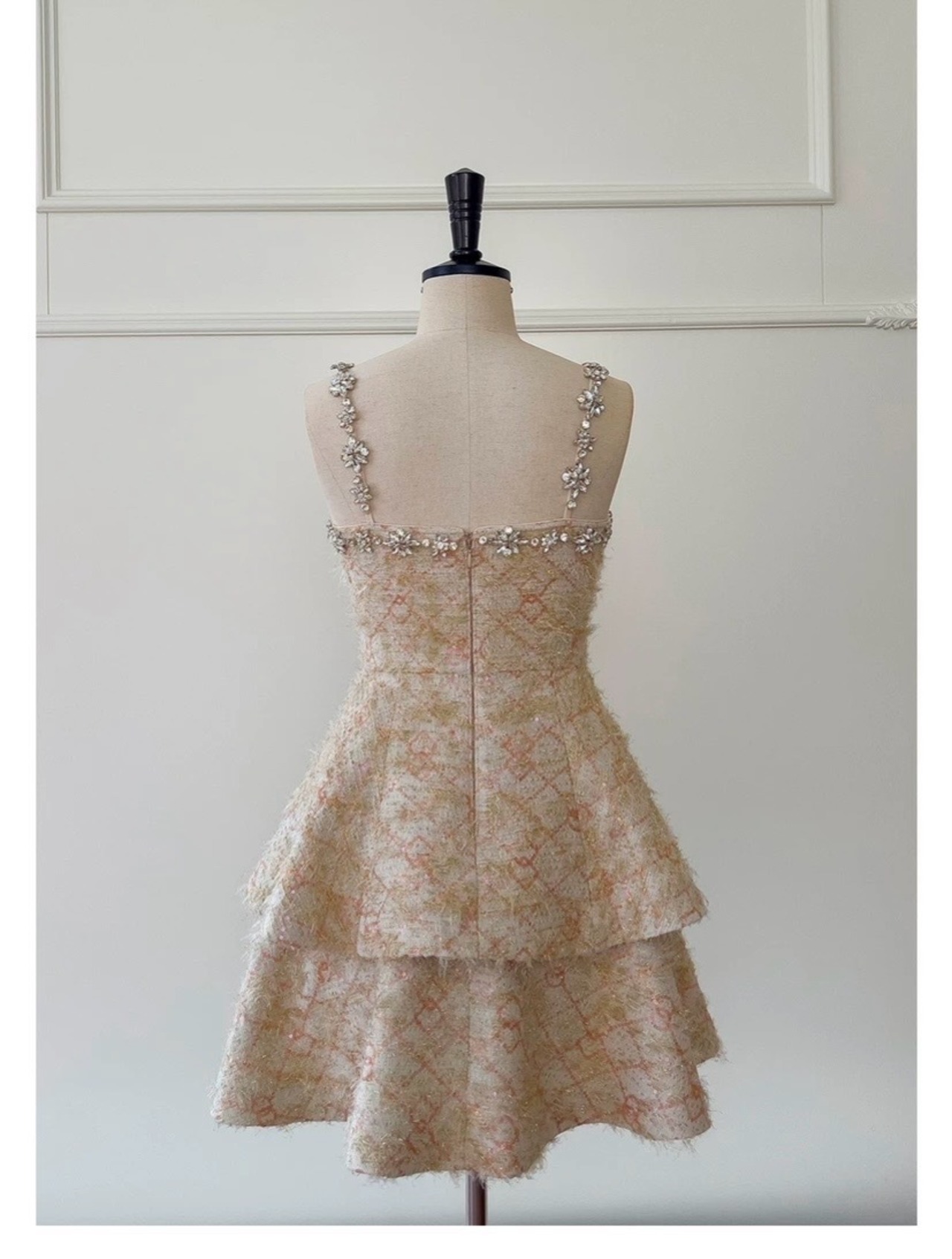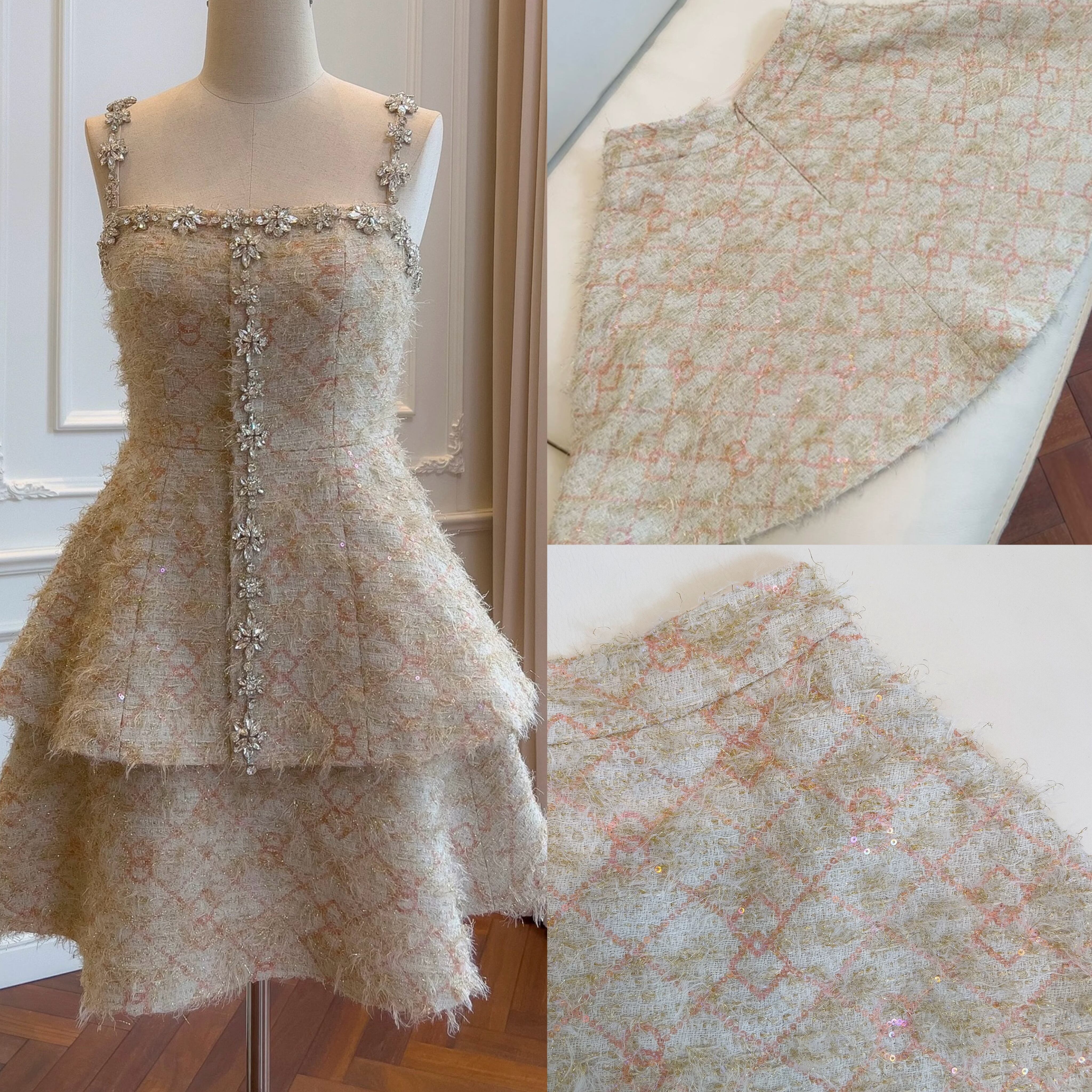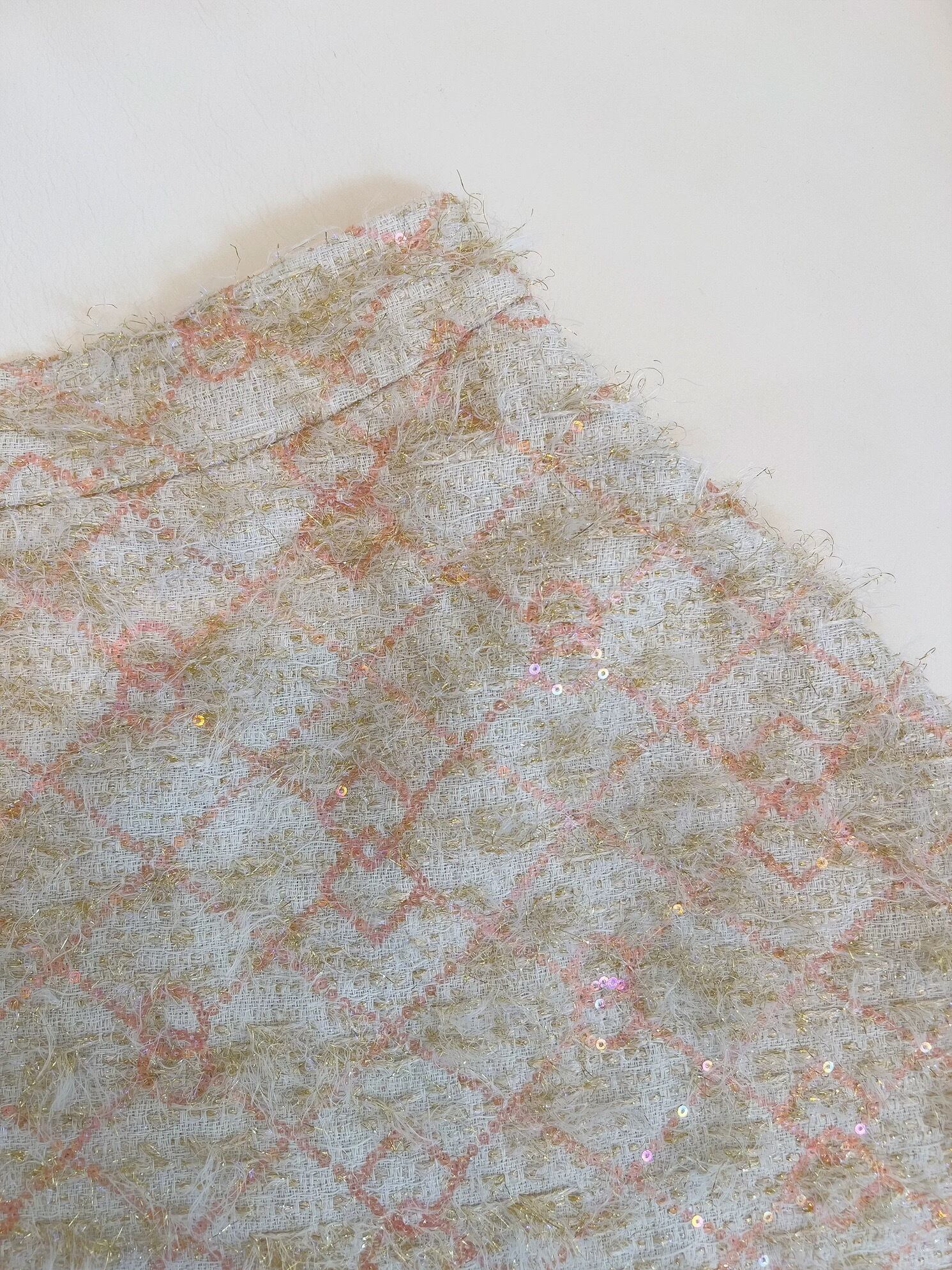 【スカート】ベージュ チェック ボトムス ガーリー エレガント モヘア かわいい お嬢様 セットアップ スーツ