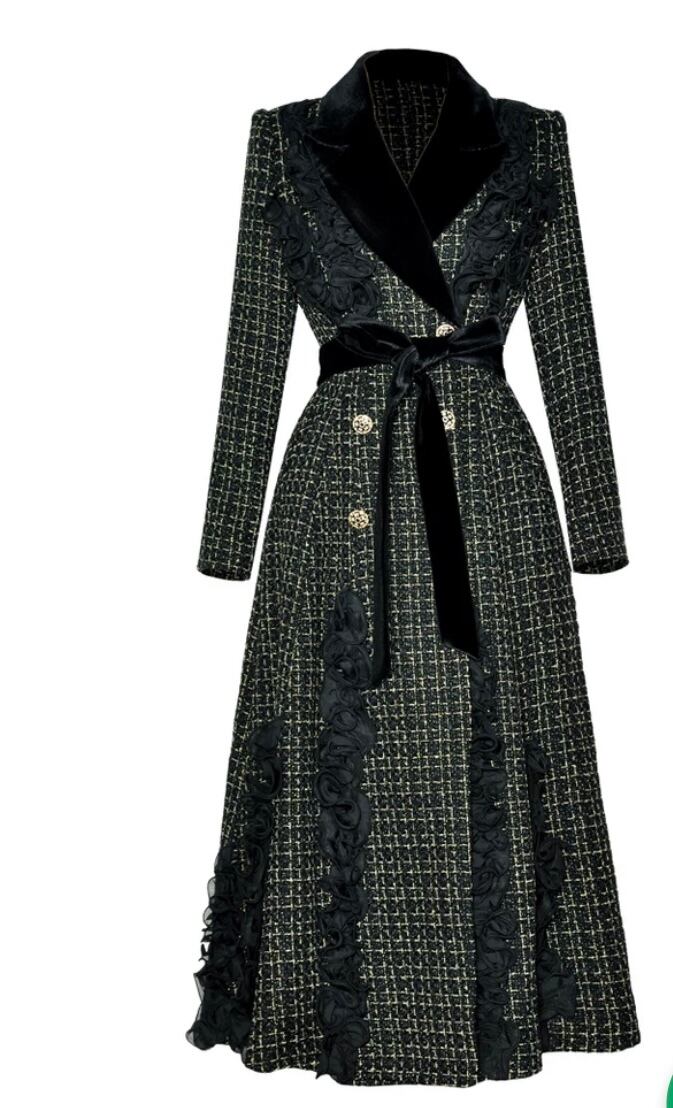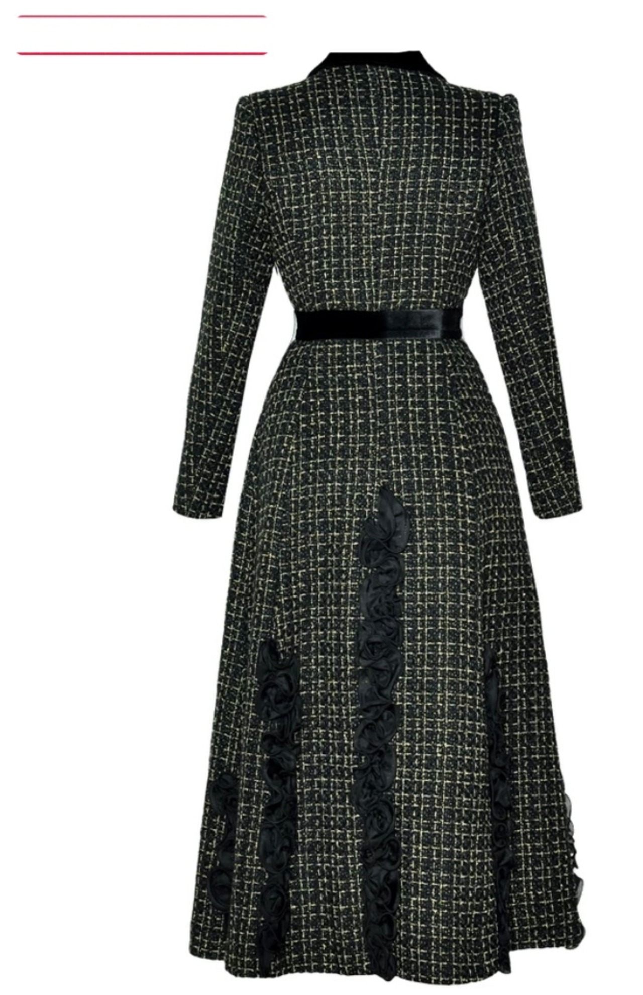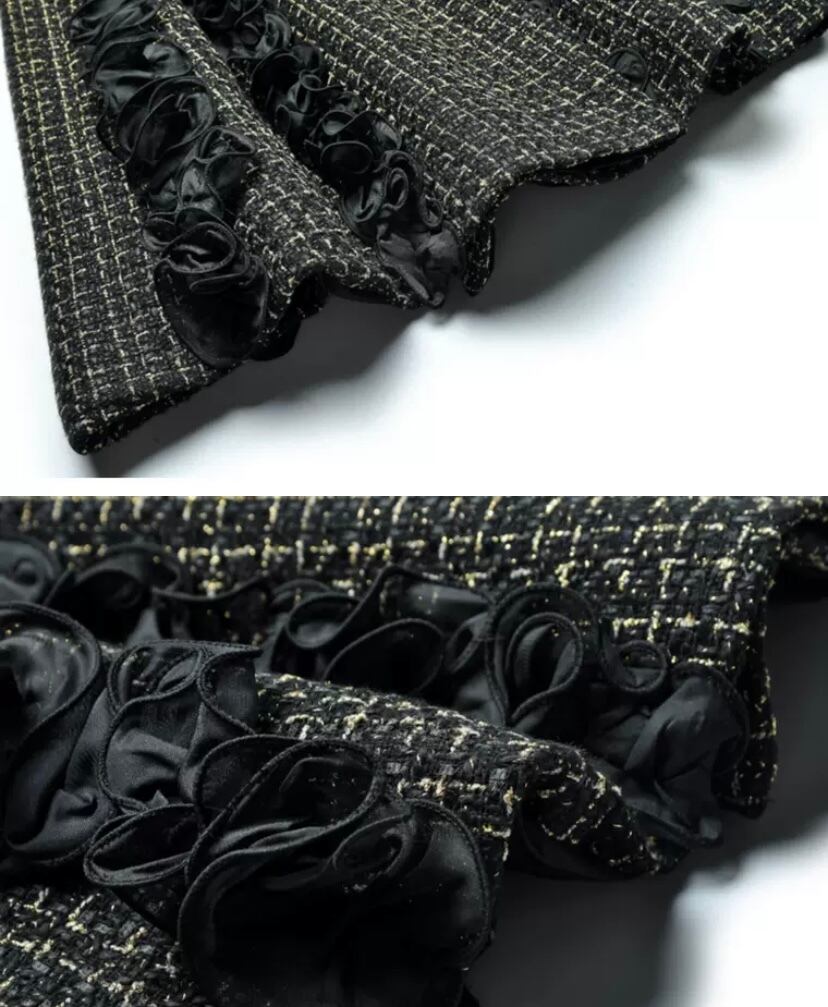 ツイード コート ジャケット エレガントガン XL ロング アウター ワンピース チェック リボン ベロア フリル