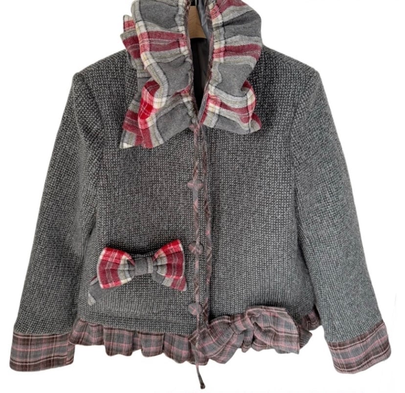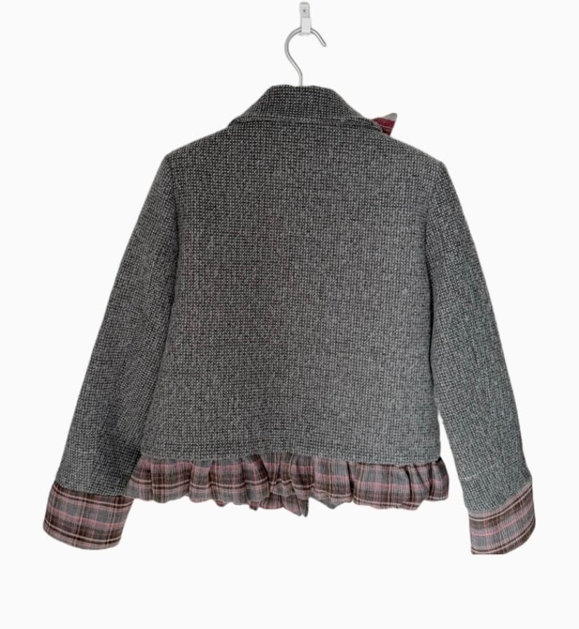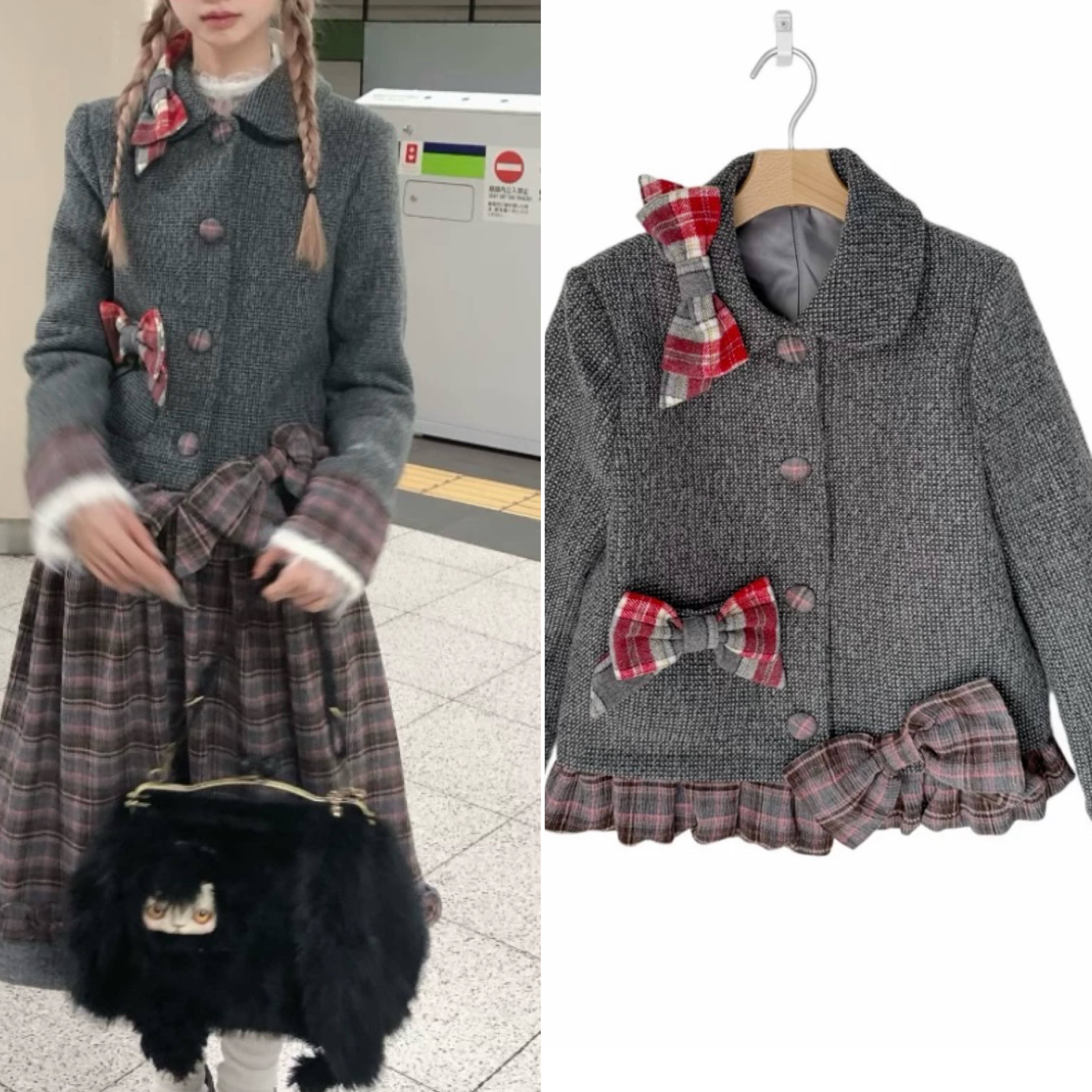 グレー スーツ ジャケット チェック 赤 リボン アウター 制服 ガーリーリ スーツ スクール 原宿 リボン