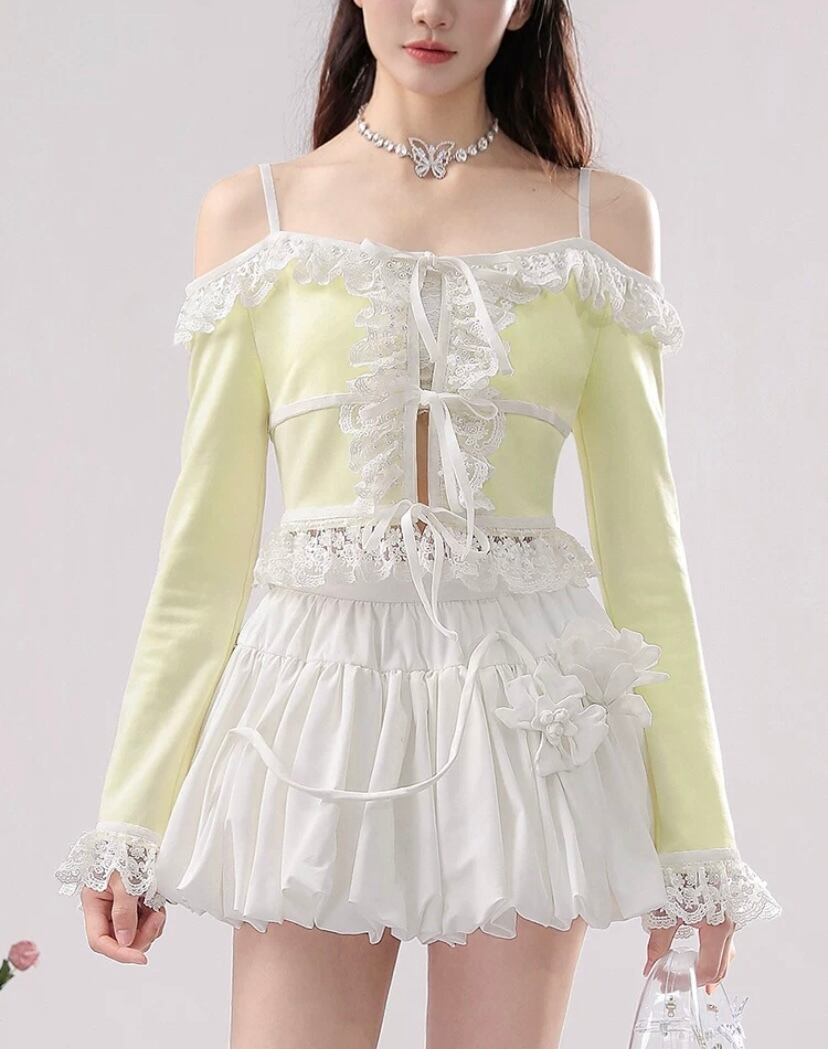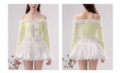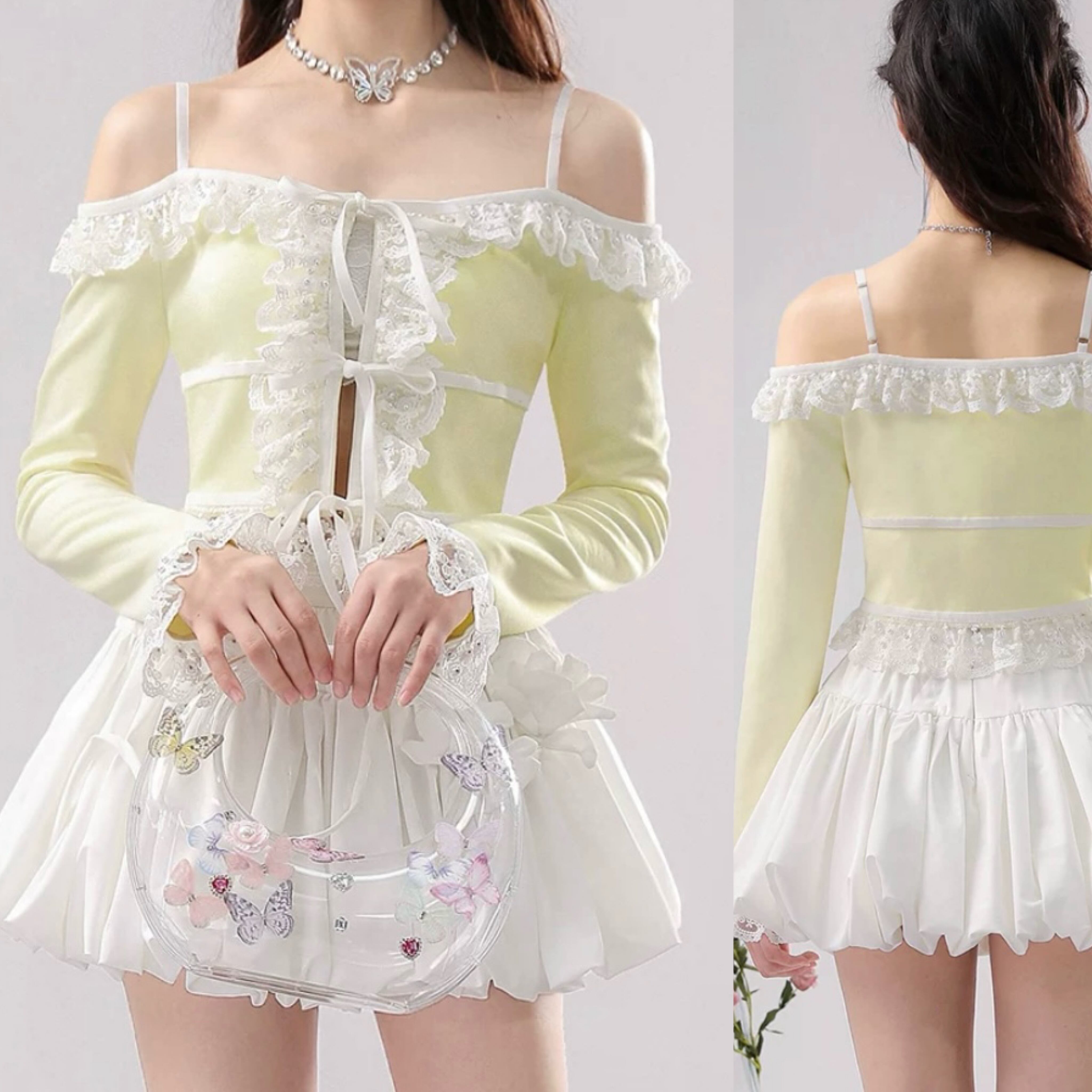 オフショルダー 黄色 ブラウス シャツ トップス 白 フリル ガーリー お嬢様 シャツ ブラウス カーディガン