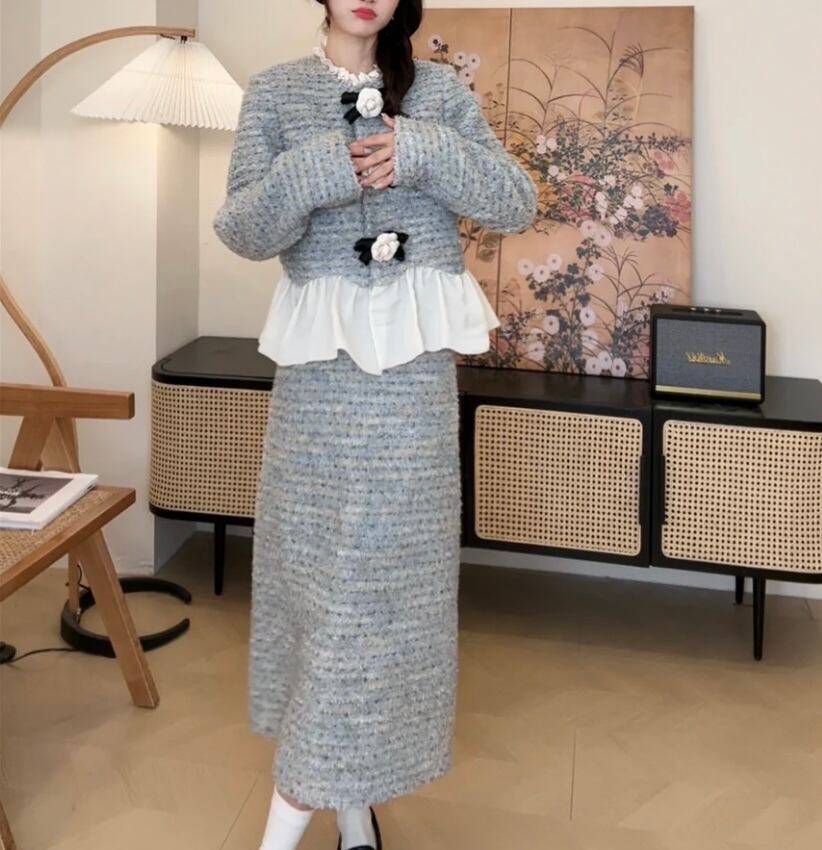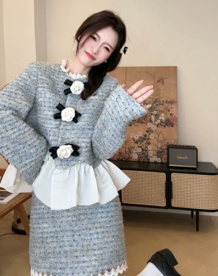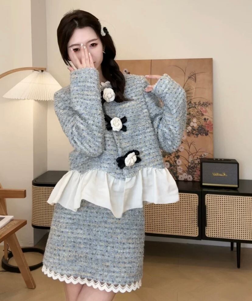 【セットアップ】 水色 ブルー カメリア スーツ リボン お嬢様 かわいい ガーリー 原宿