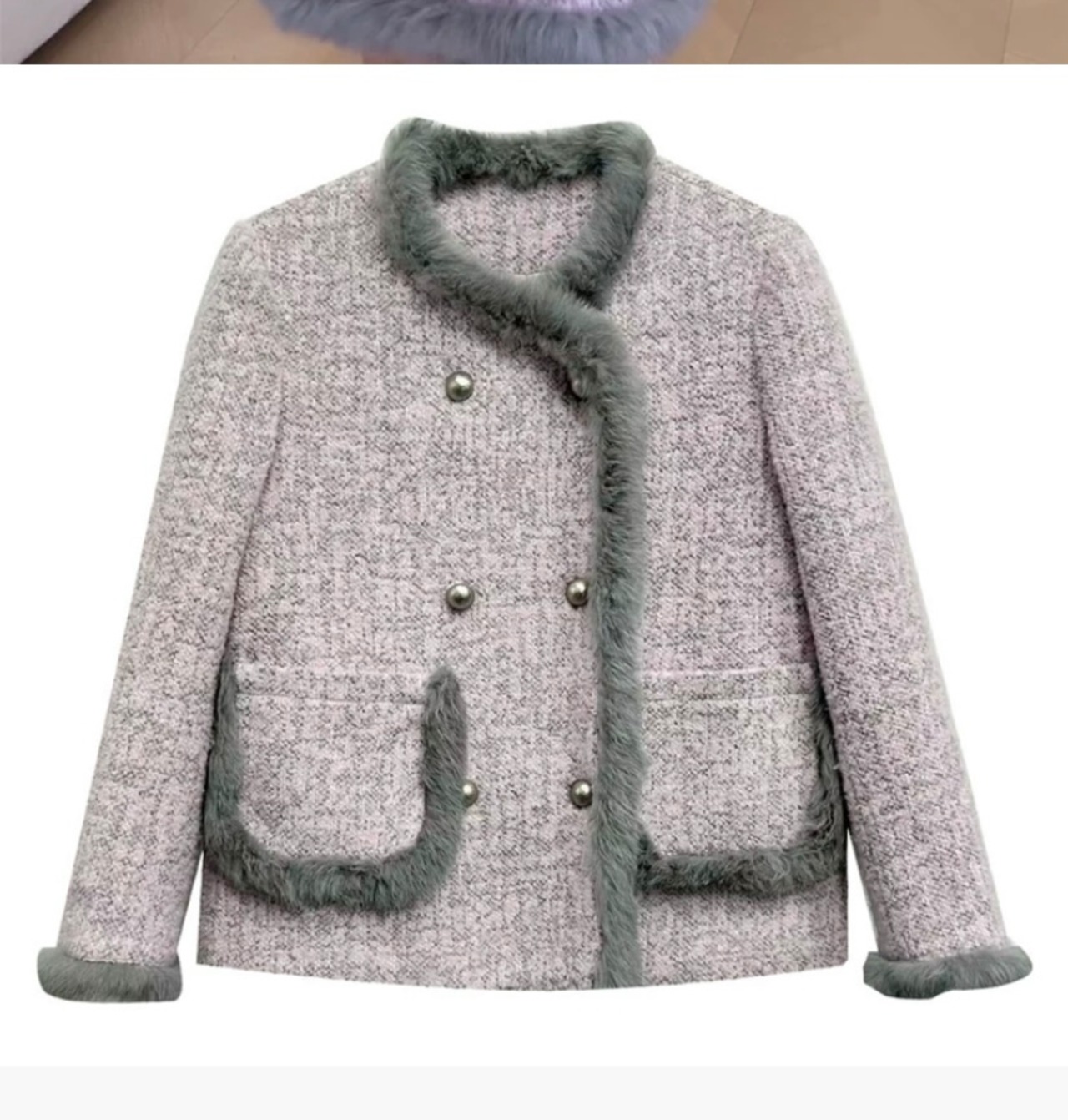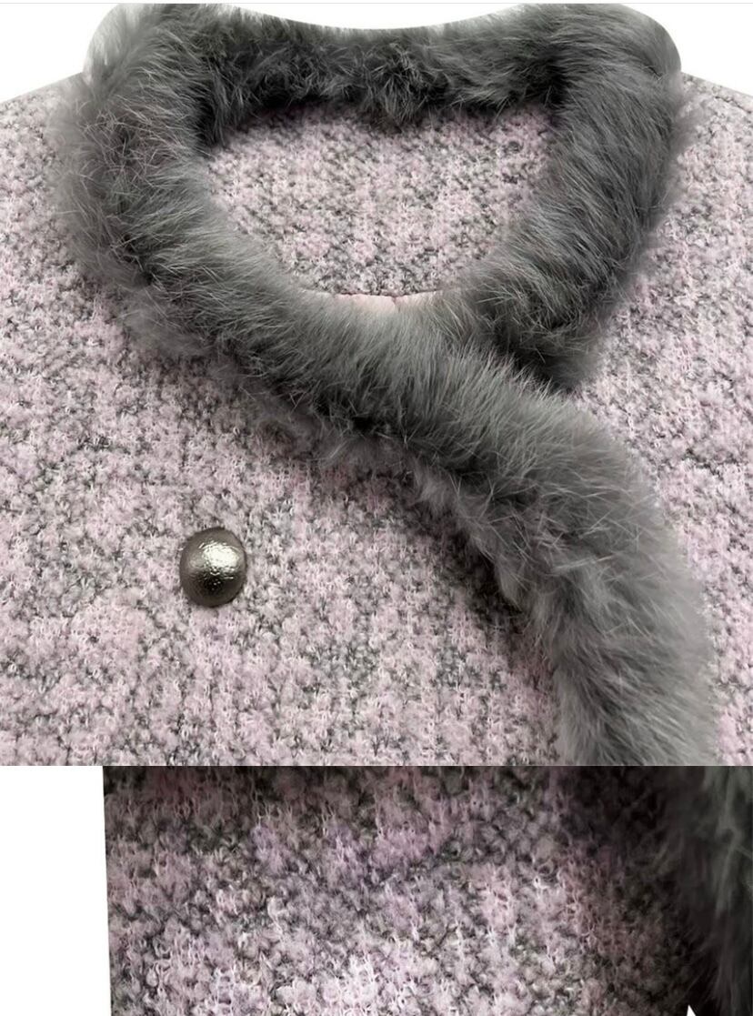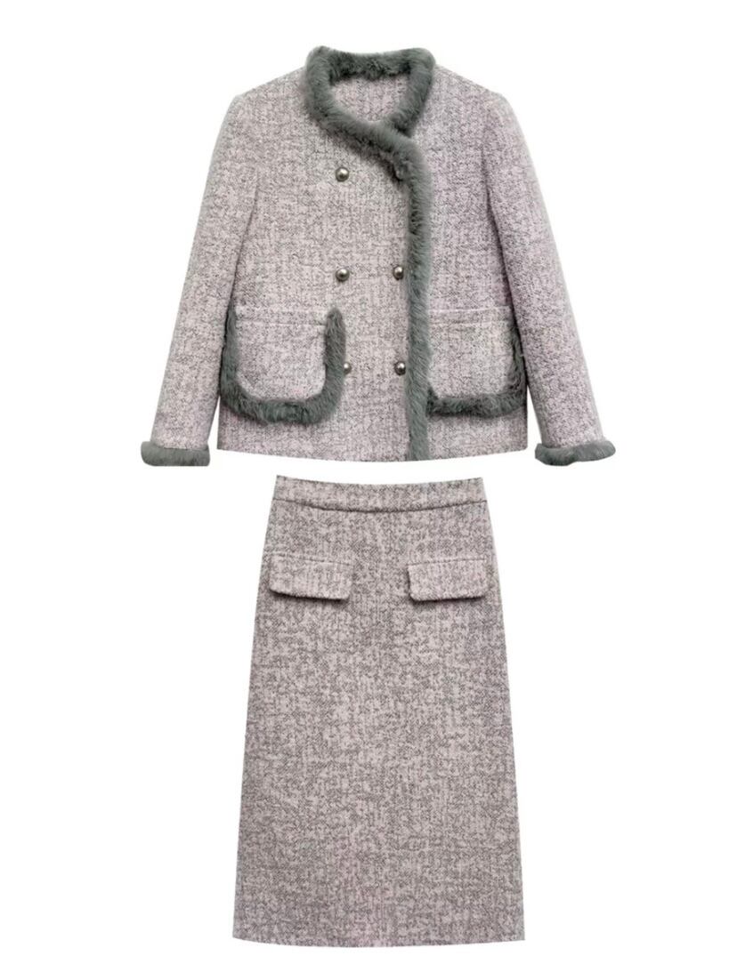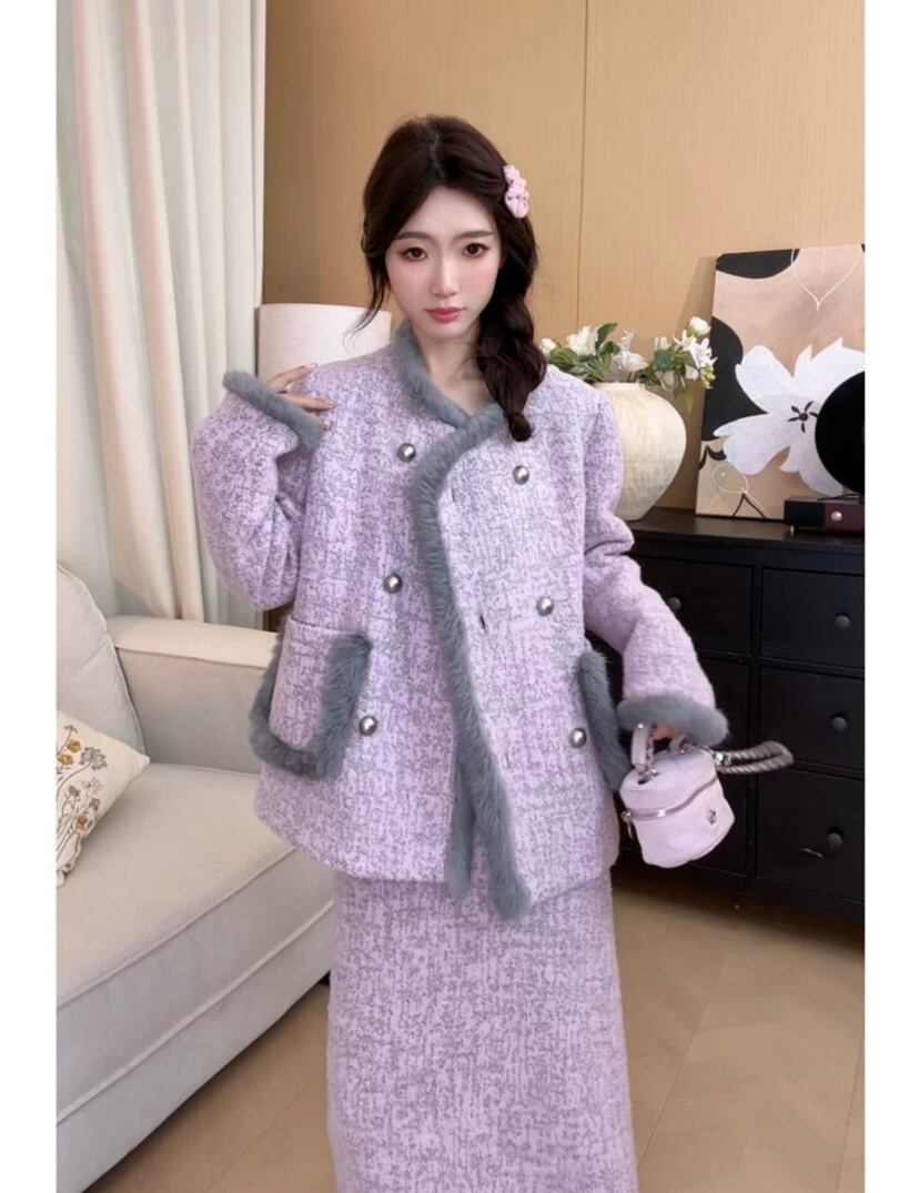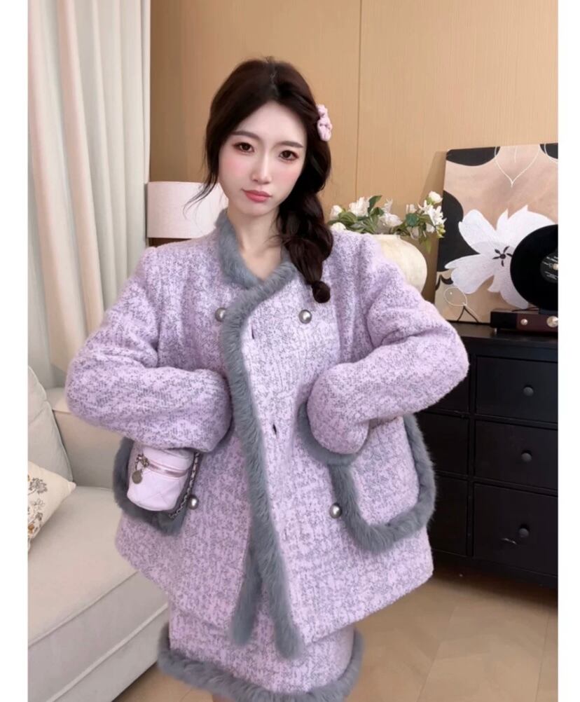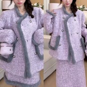 【セットアップ】紫 パープル ジャケット アウター スカート スーツ ファー お嬢様 エレガント タイト