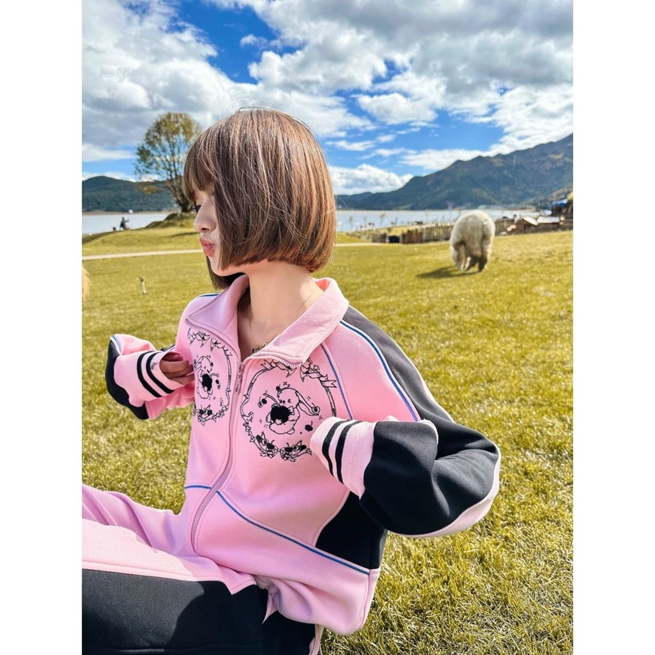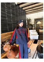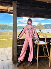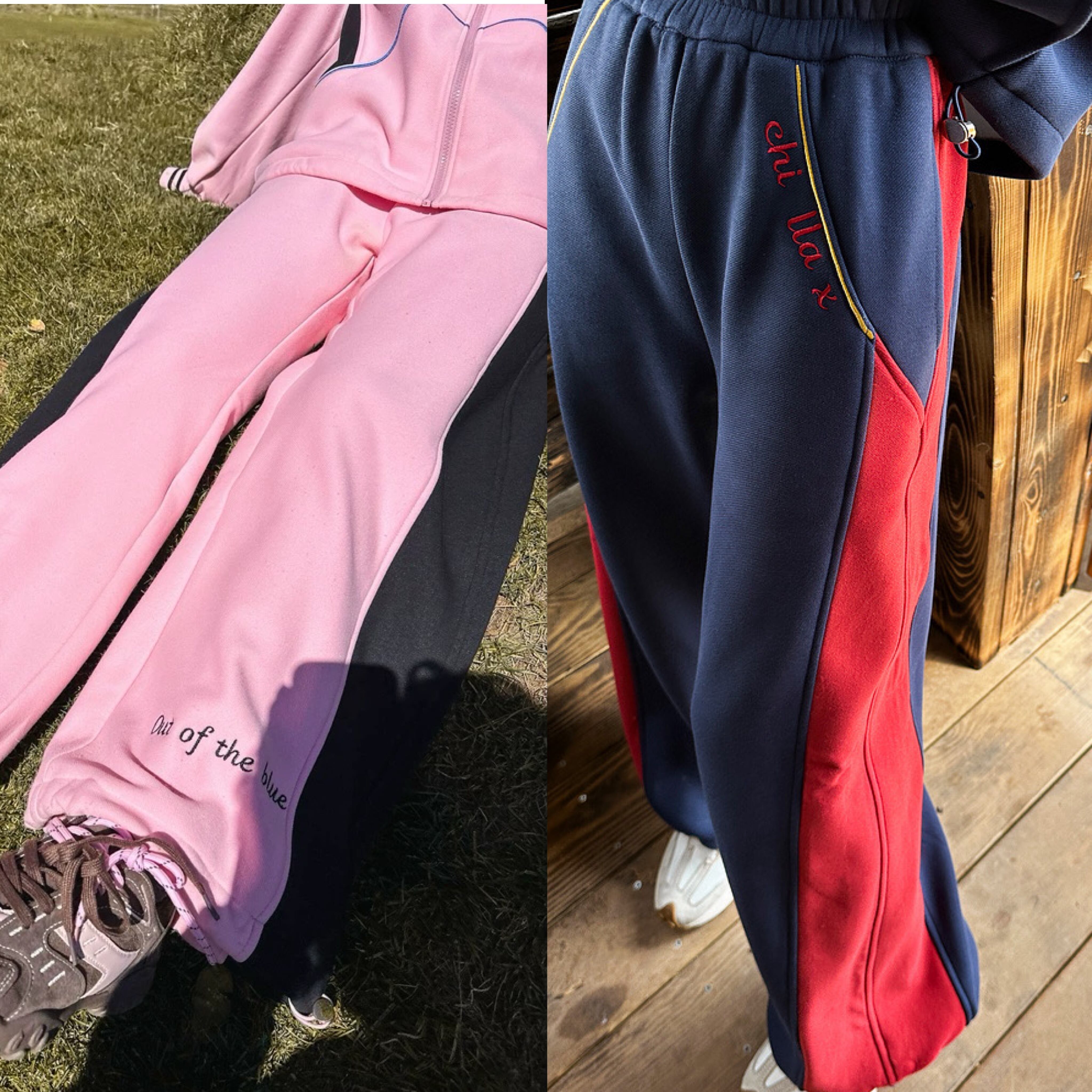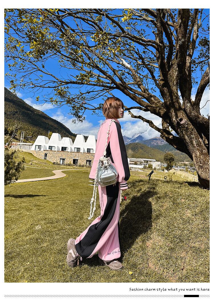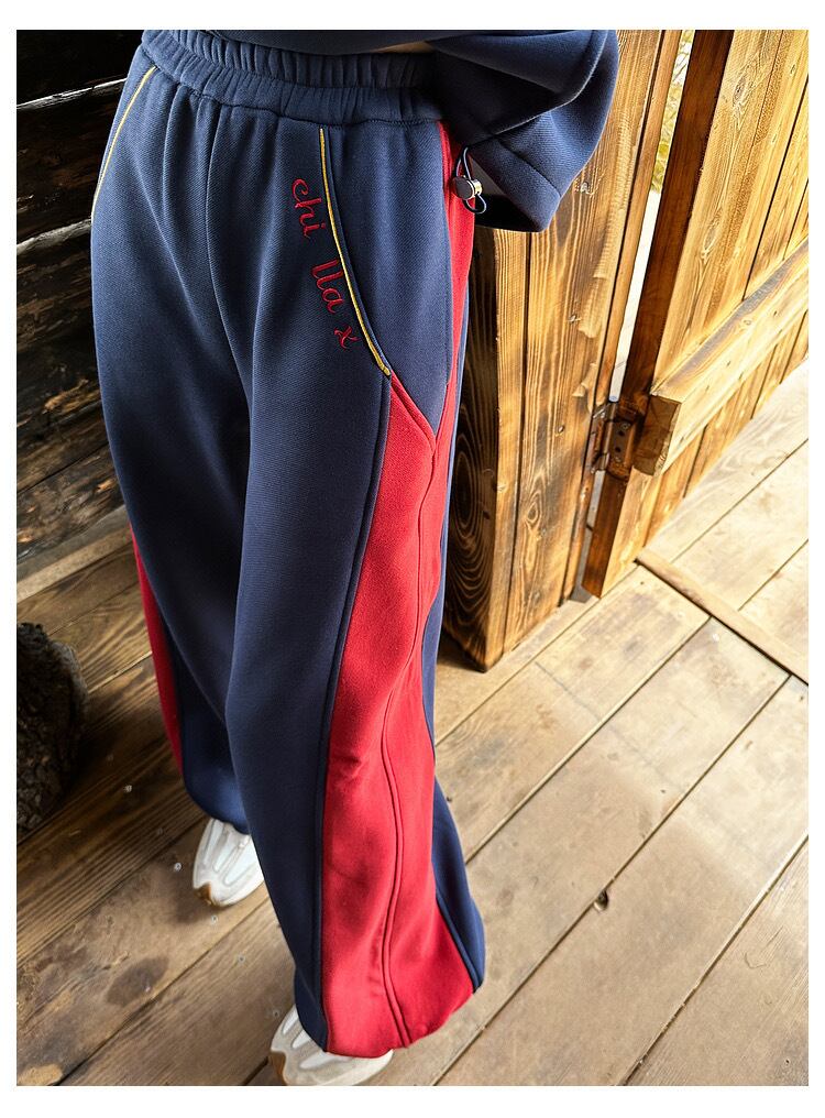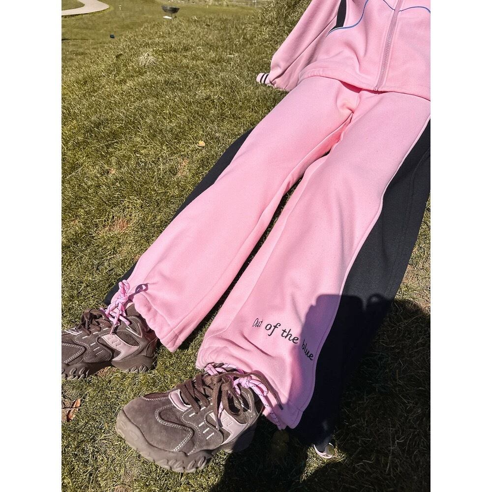 【ボトムス】ピンク ネイビー ライン XL スウェット カジュアル 赤 黒 線 セットアップ ルームウェア 原宿 運動