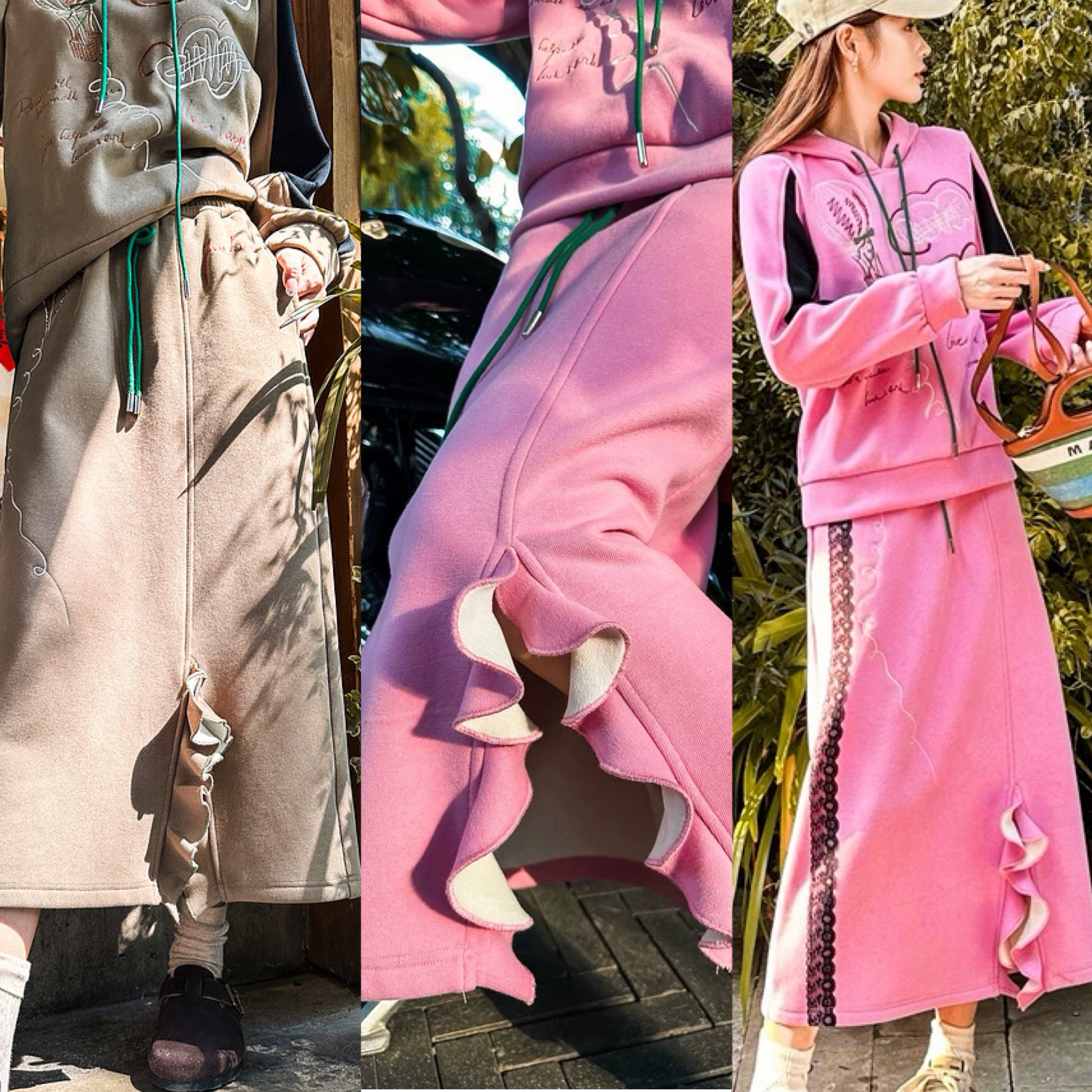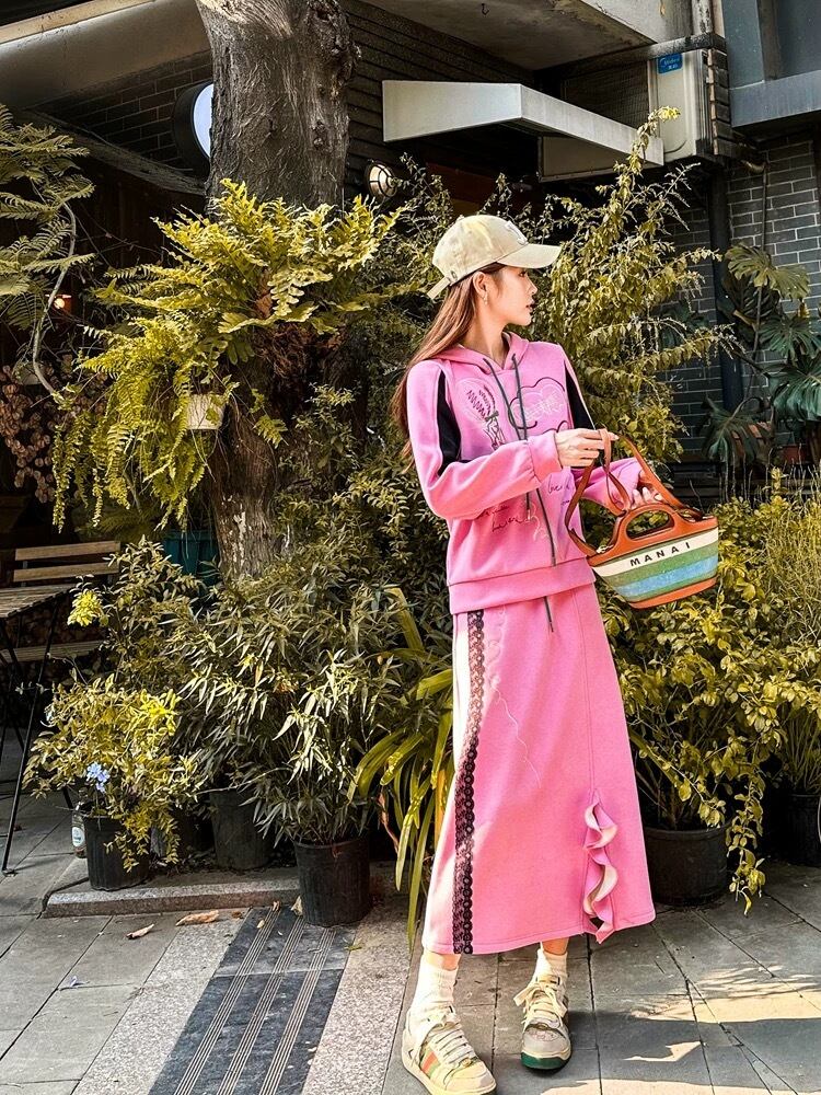 【スカート】ボトムス ベージュ ピンク XL トレーナー カジュアルジュア スウェット セットアップ ルームウェア 運動 XL