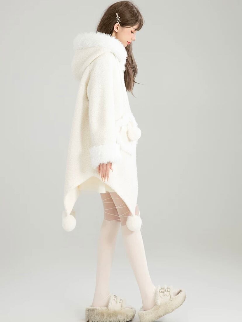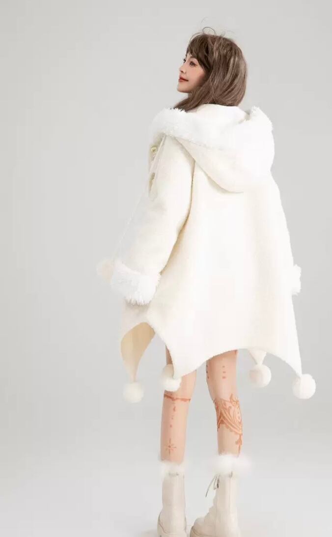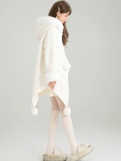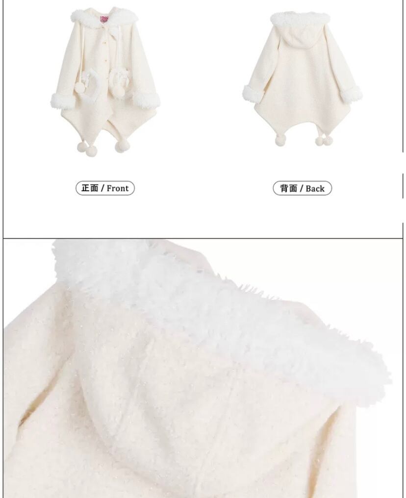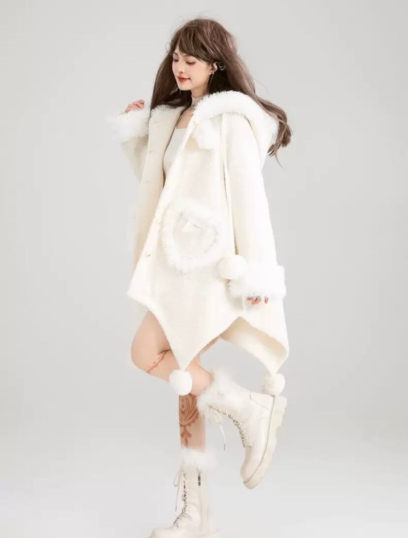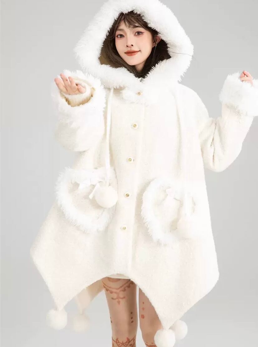 ポンチョ コート アウター XL フード ファー 白 ホワイト リボン カーディガン コート マフラー 白 ハート ワンピース チュニック