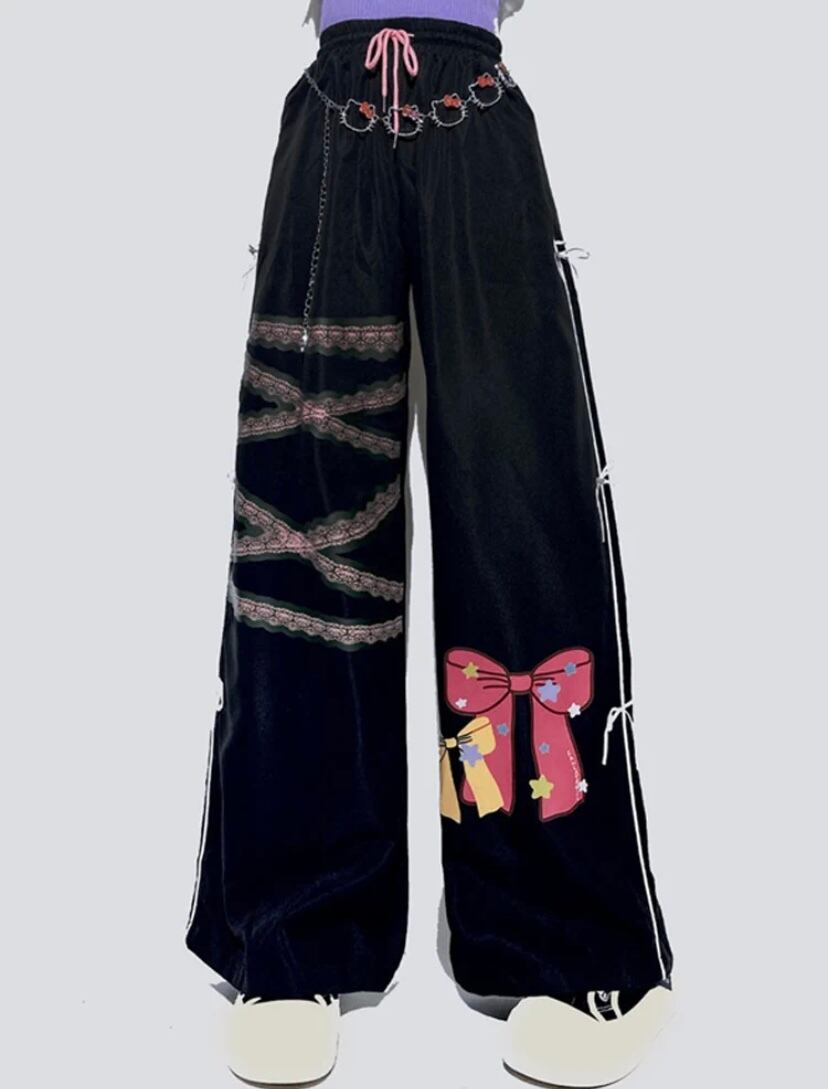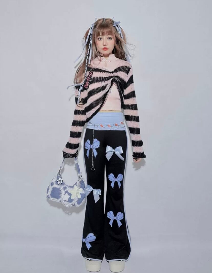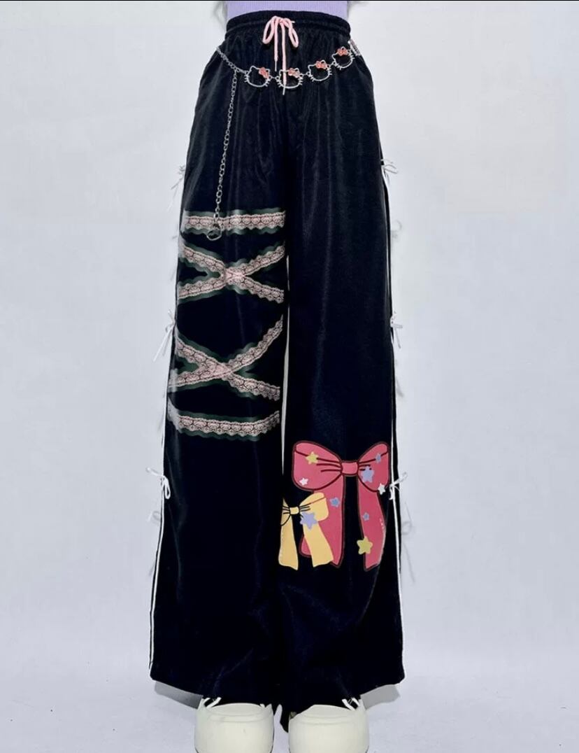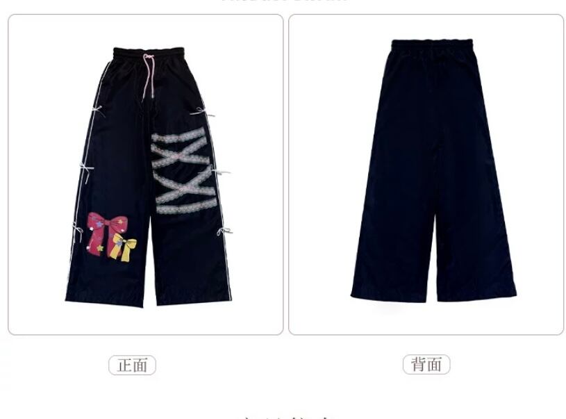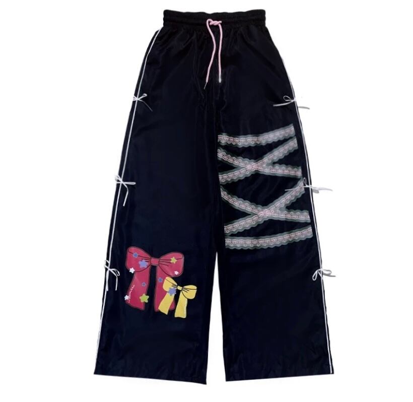 スウェット パンツ カジュアル ルームウェア ジム 運動 リボン ピンク 水色 ボトムス ガーリー 原宿 リボン ヨガ