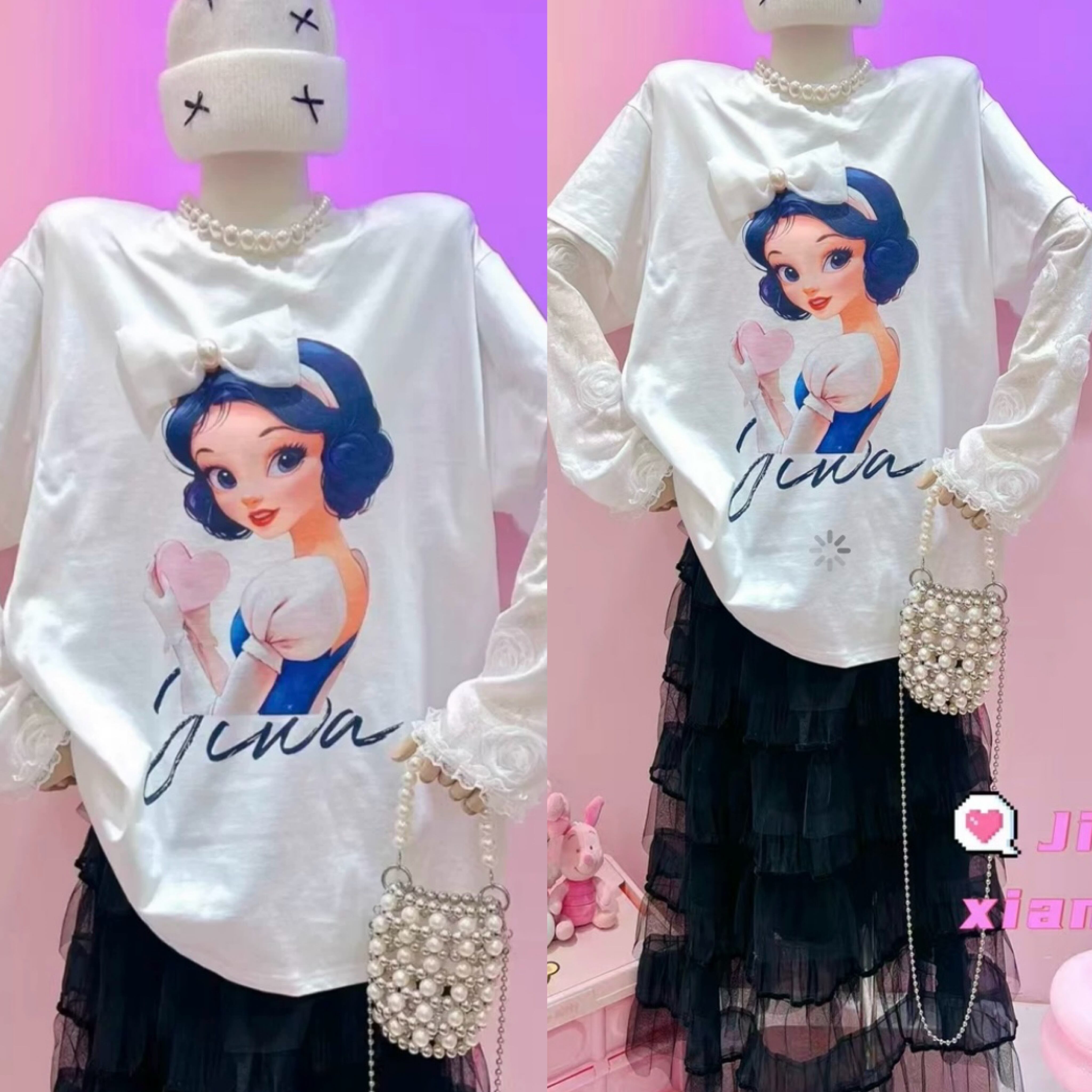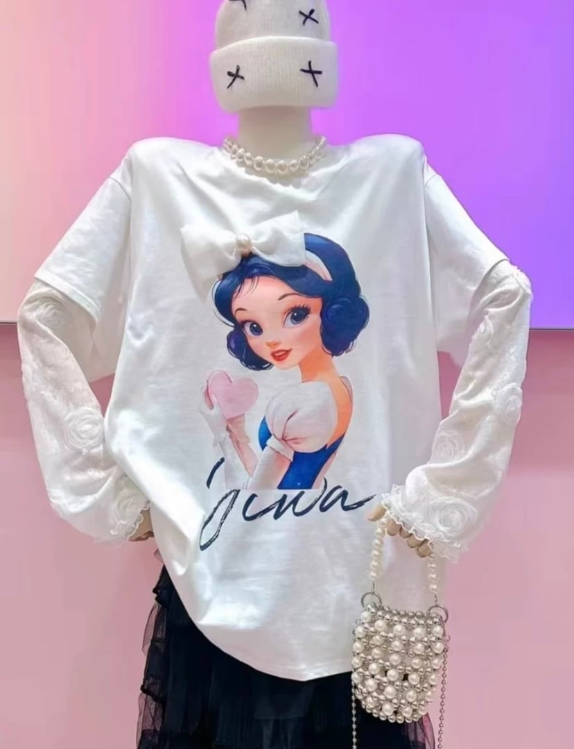 白 ホワイト トップス 長袖 ブラウス Tシャツ ガーリー かわいい シンプル 原宿