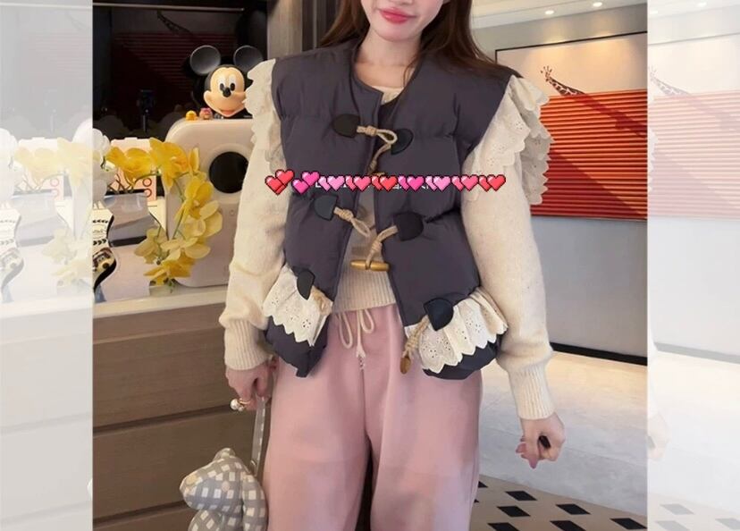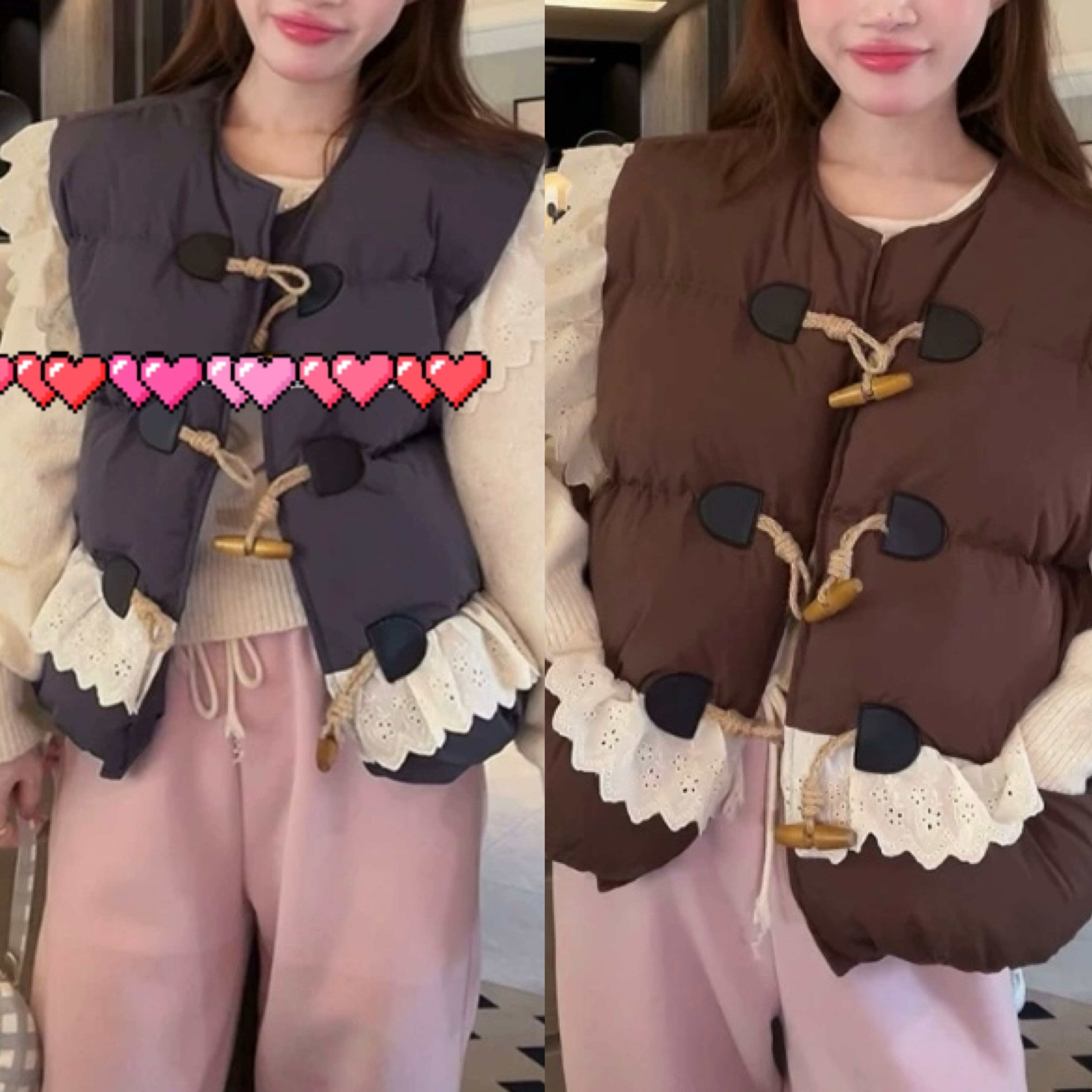 茶色 ベスト ダウン コート ジャケット グレー カーディガン アウター カーリー 原宿 かわいい