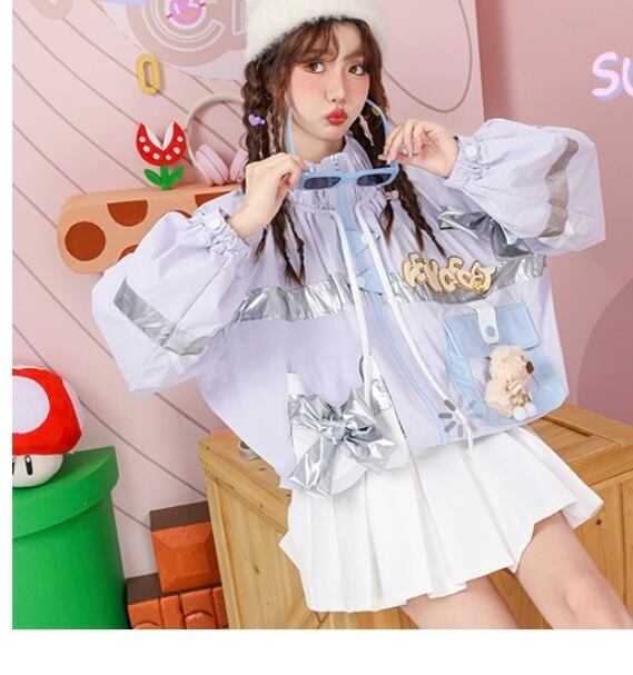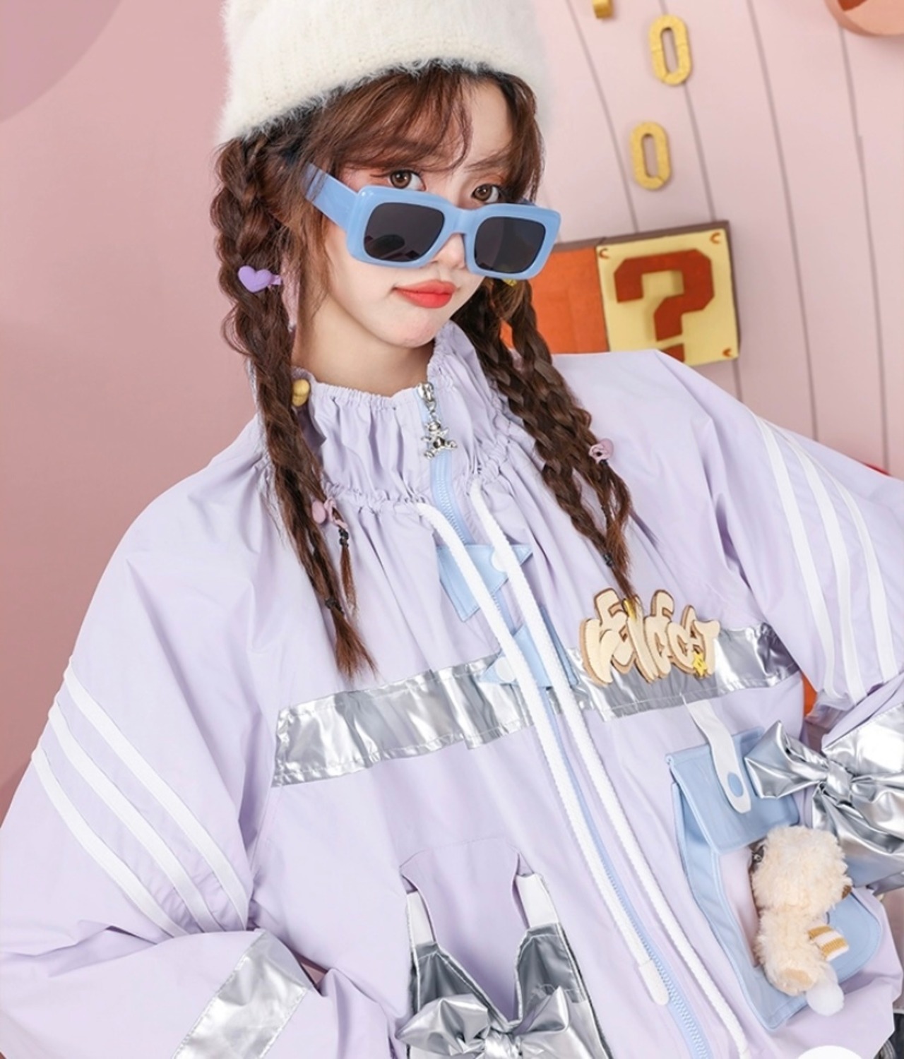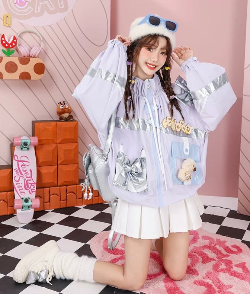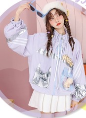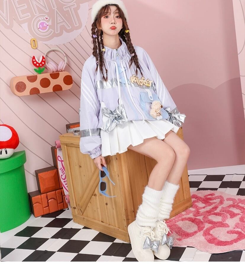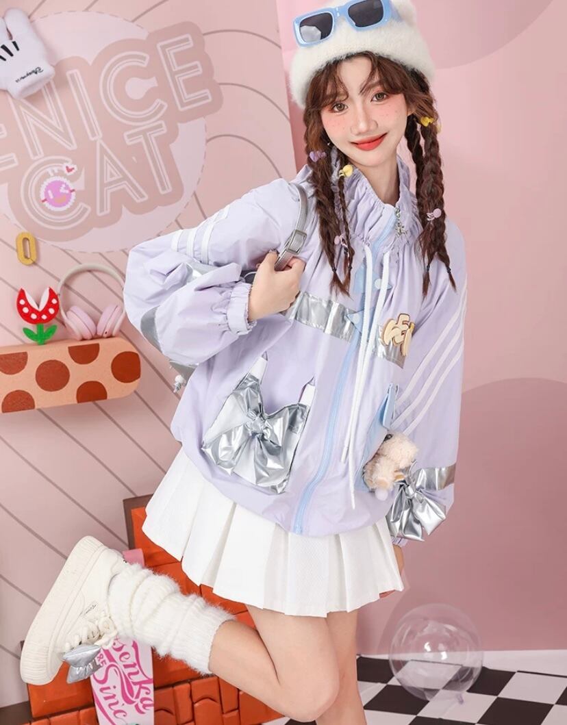 パープル 紫 シルバー 銀 銀色 ジャンバー アウター ジャケット コート ガーリー 原宿 姫 ブルゾン コート リボン