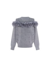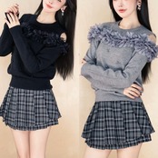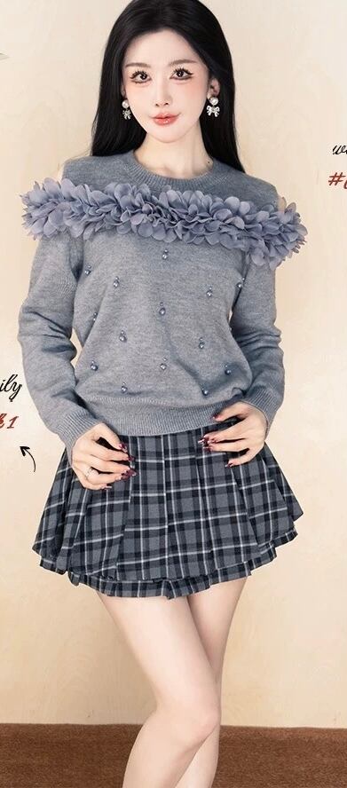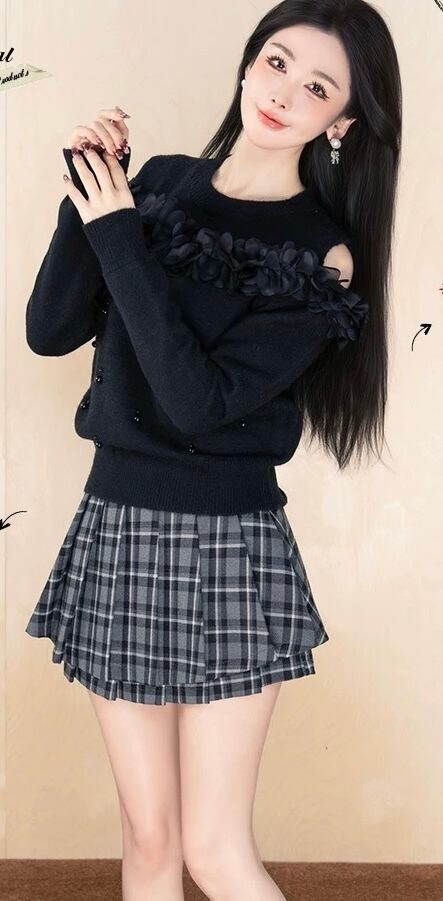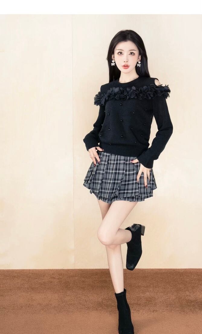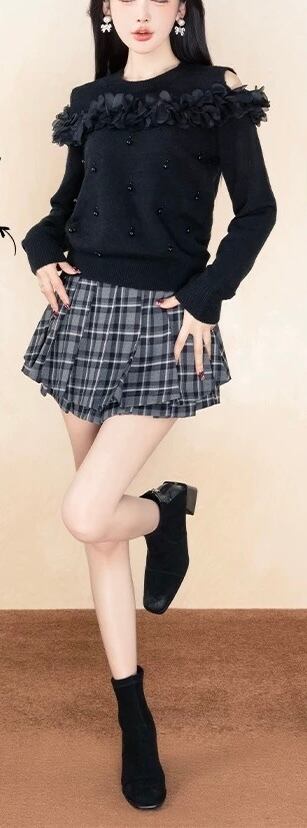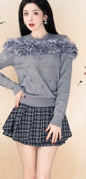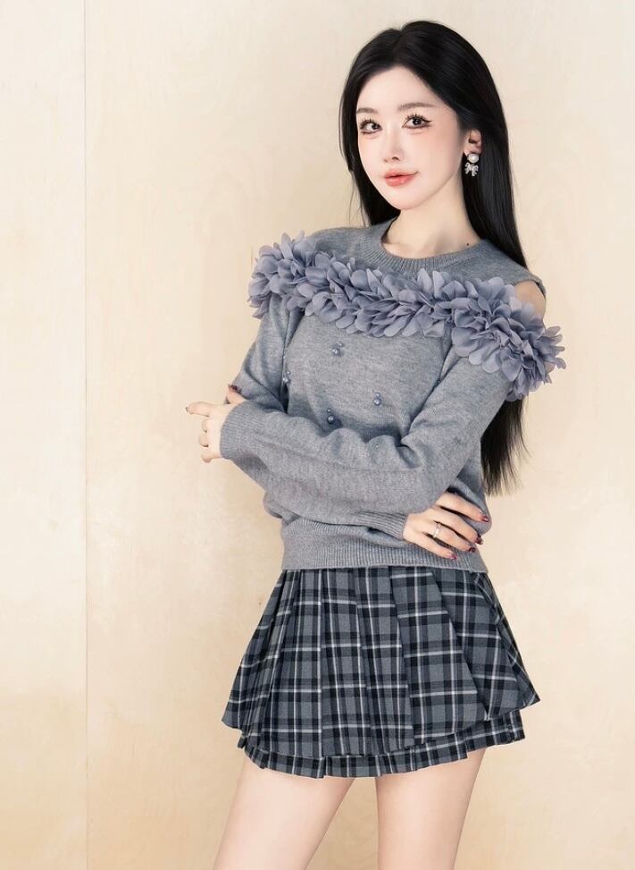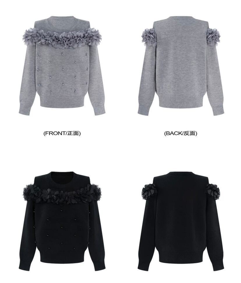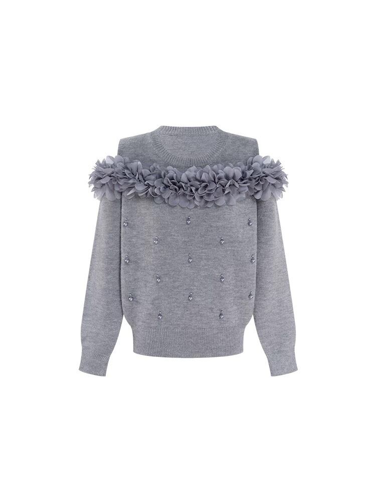 グレー 黒 花柄 フラワー デコレーション セーター カーディガン オフショルダー お嬢様 シンプル トップス ブラウス 銀座 表参道