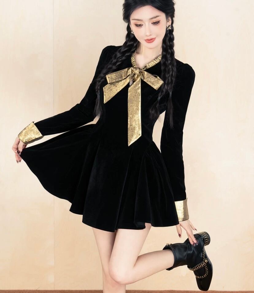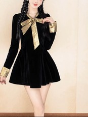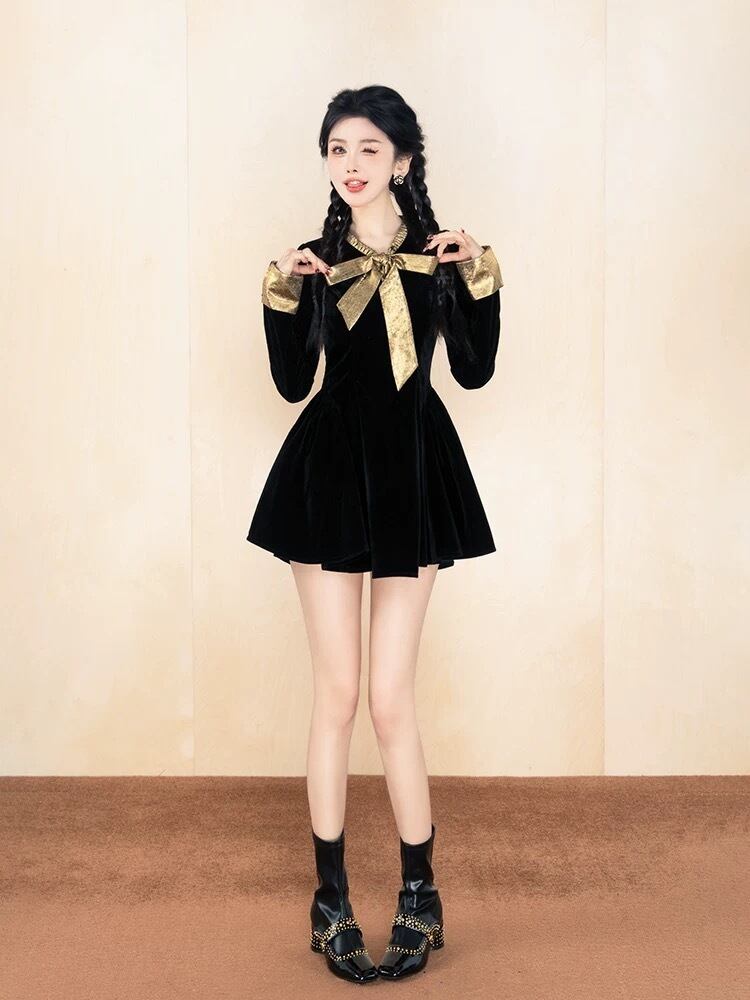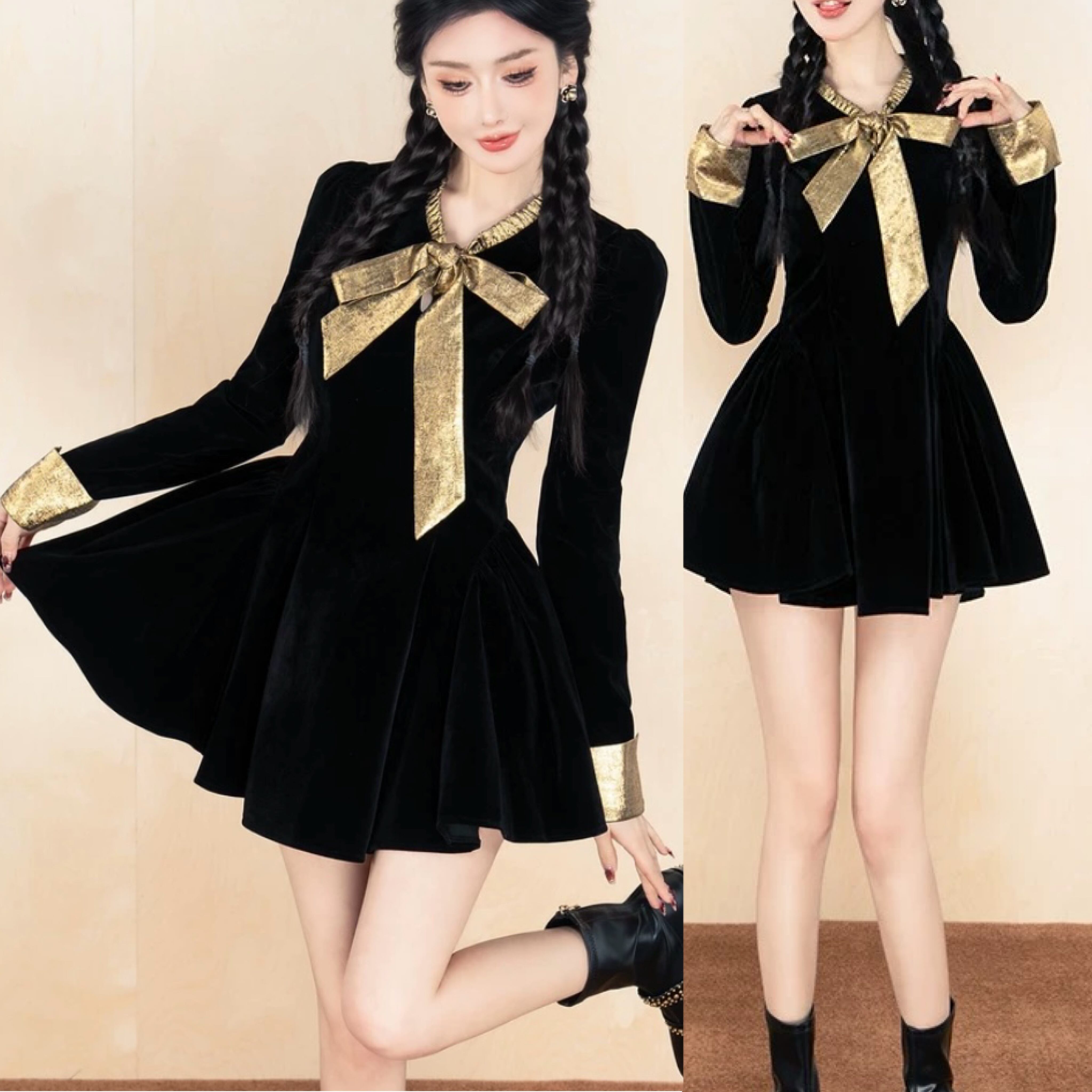 ゴールド 金色 ベロア ベルベット リボン XL お嬢様 ミニスカート エレガント 銀座 表参道 青山
