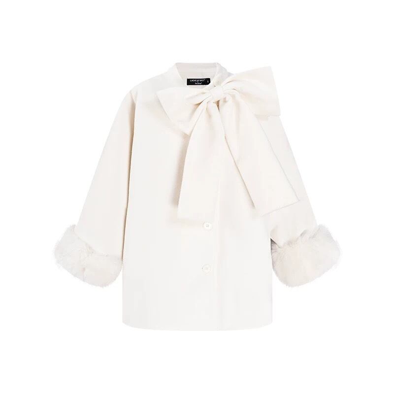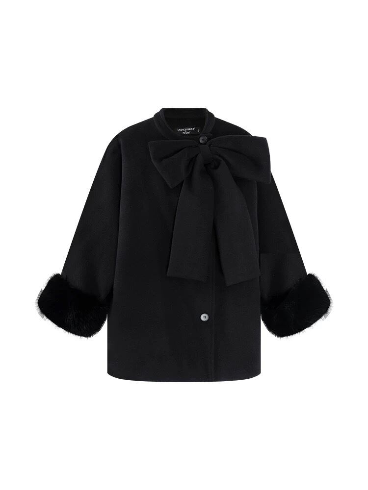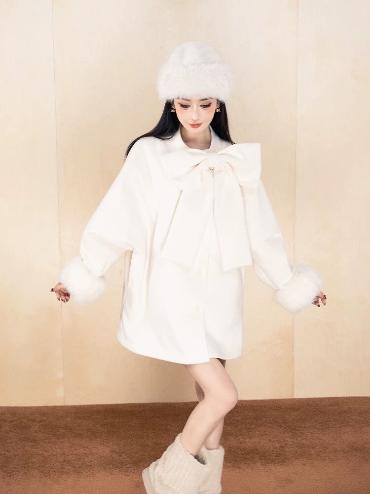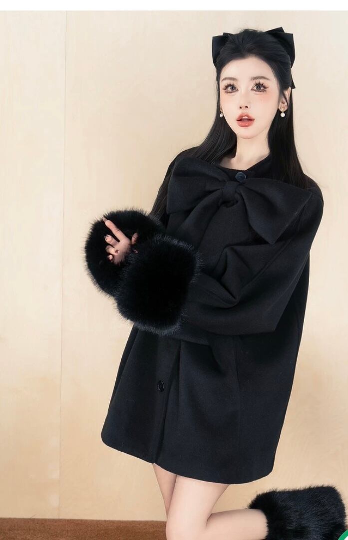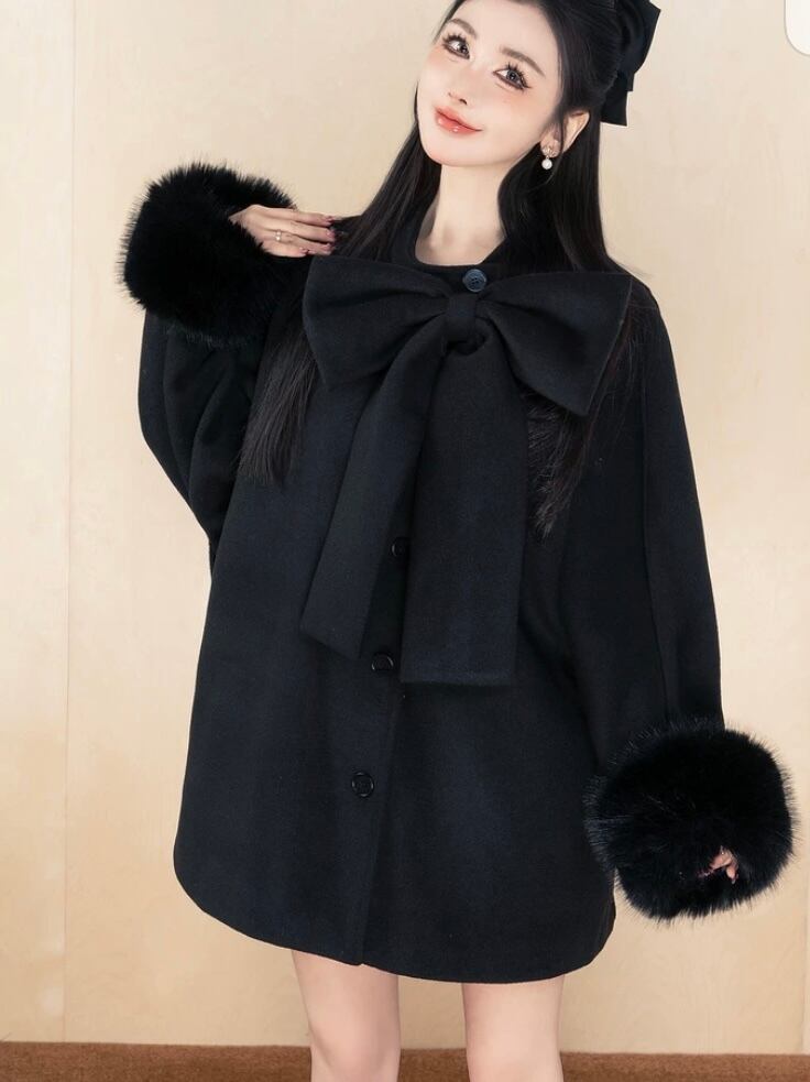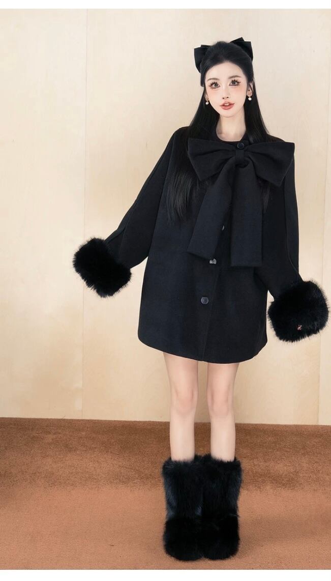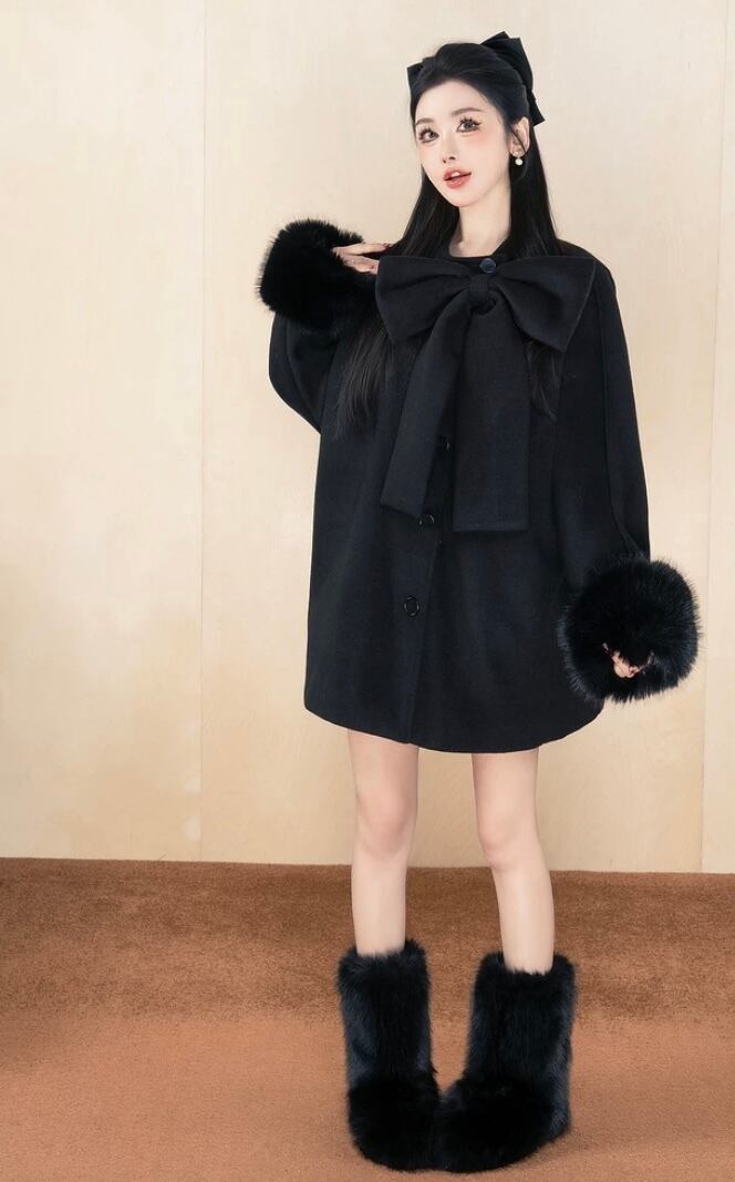 黒 白 ホワイト ブラック ファー エレガント お嬢様 リボン ガーリ 渋谷 銀座 表参道 青山 リボン アウター カーディガン ワンピース ゴージャス セレブ