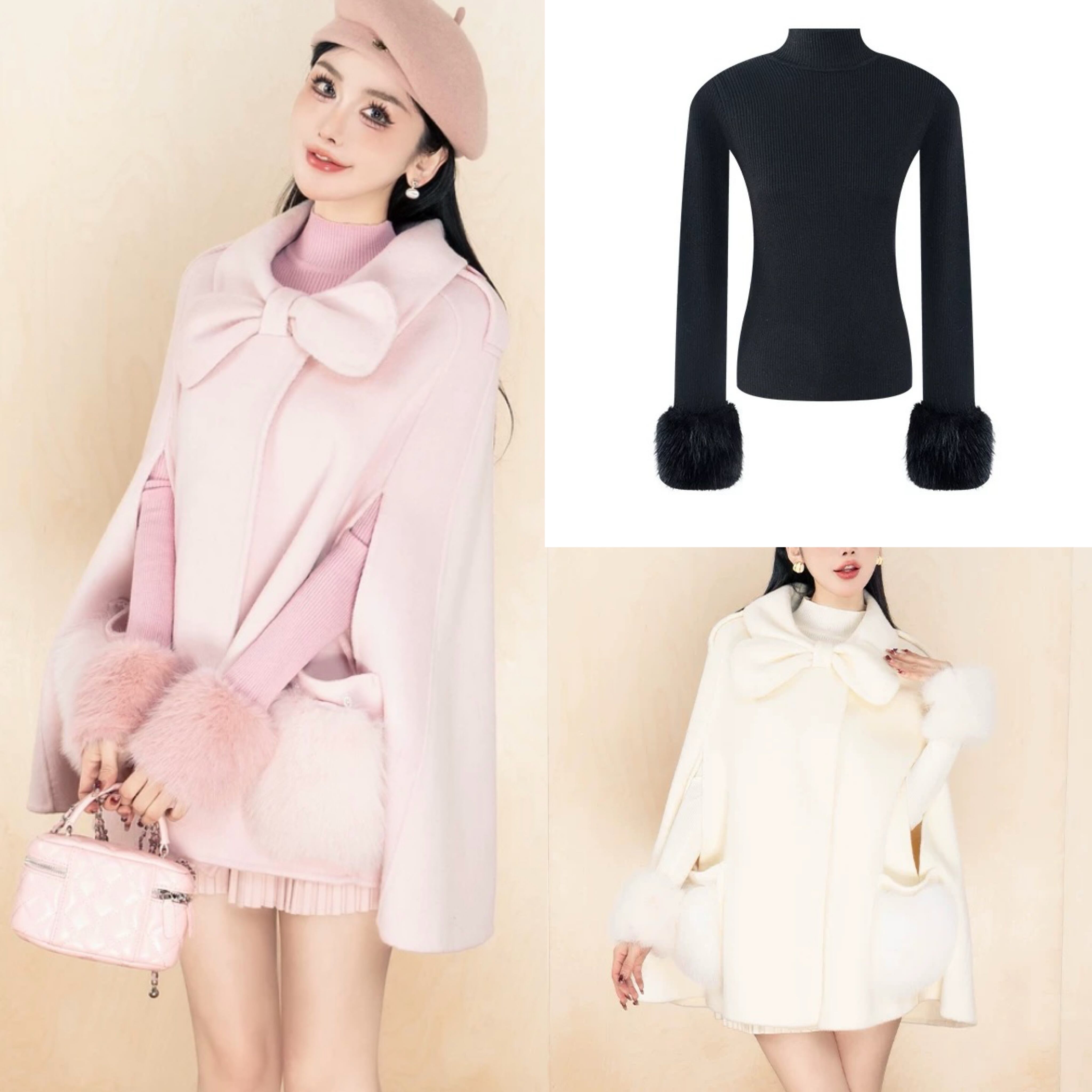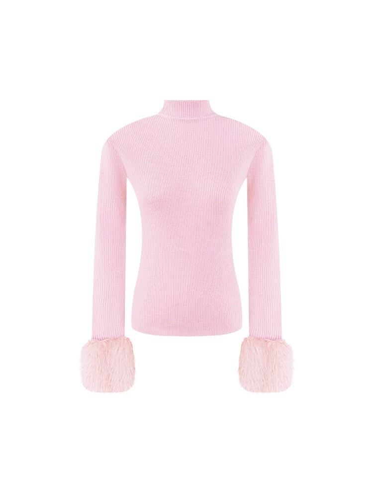 ハイネック インナー トップ ピンク 白 黒 カジュアル ガーリ シンプル 無地 ブラウス 長袖 かわいい お嬢様 銀座 表参道参 青山 お上品