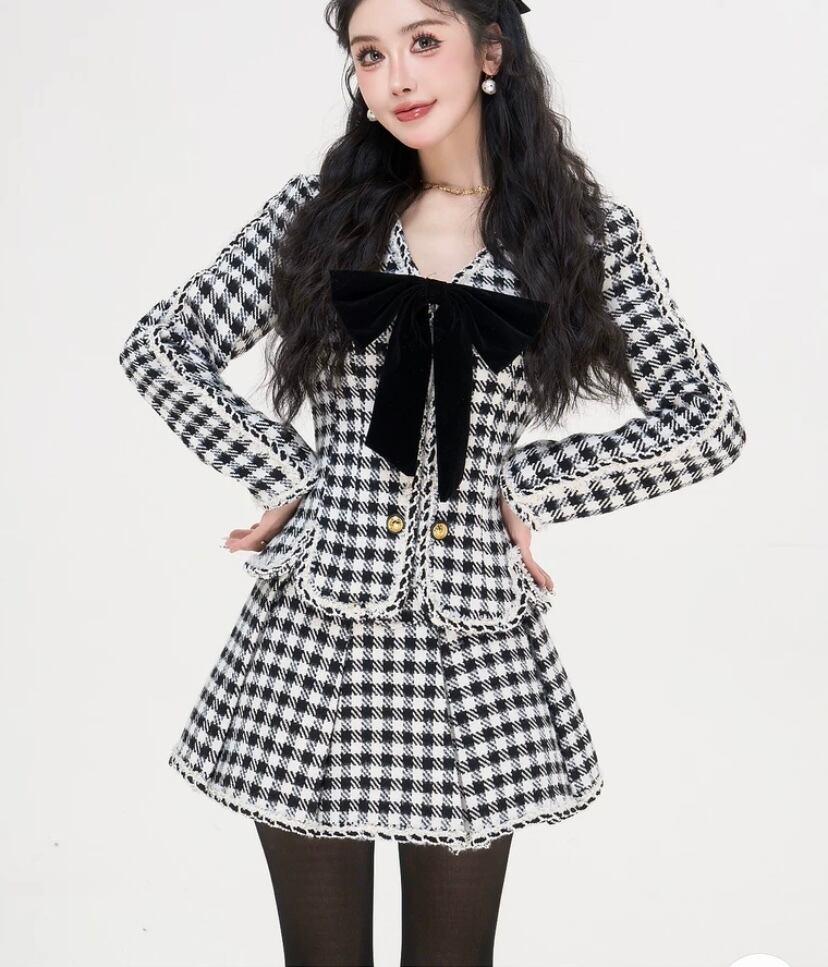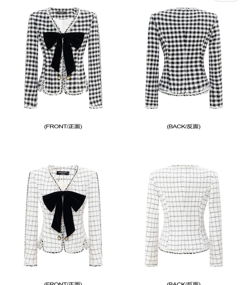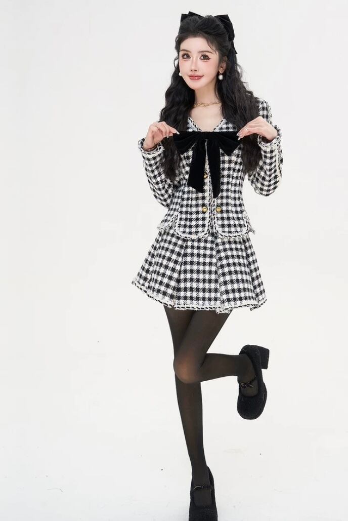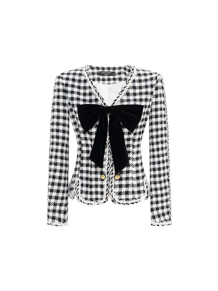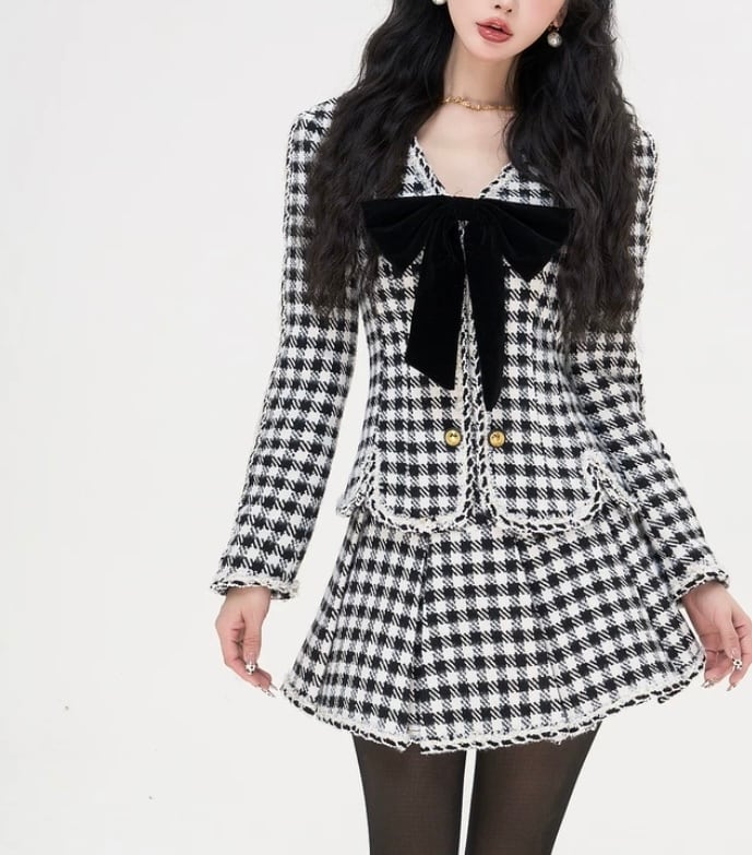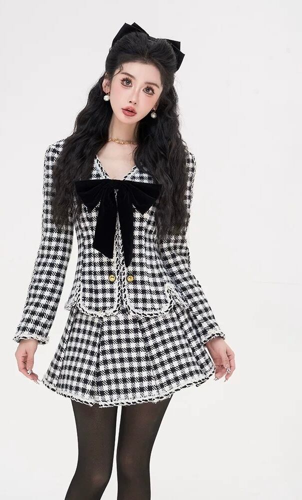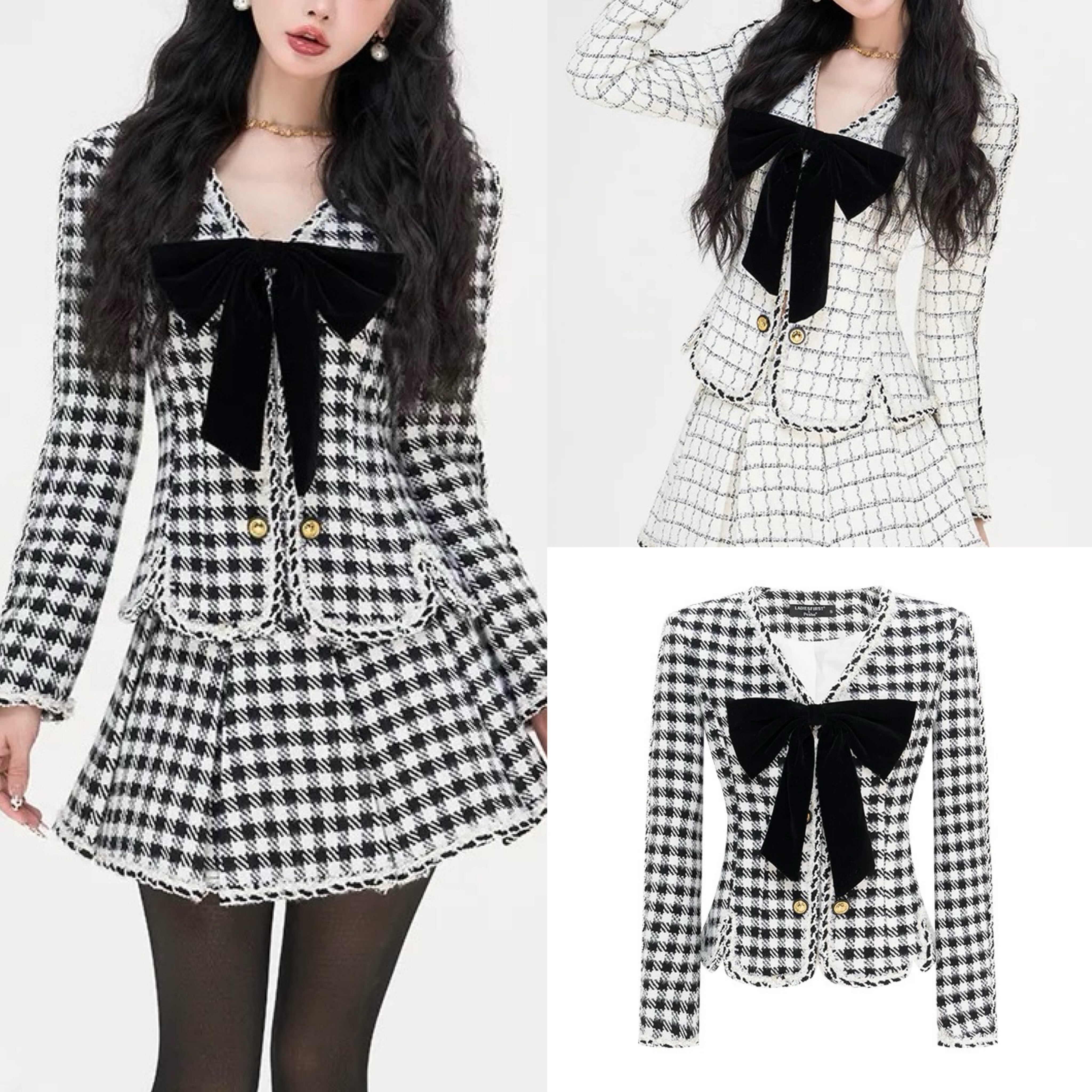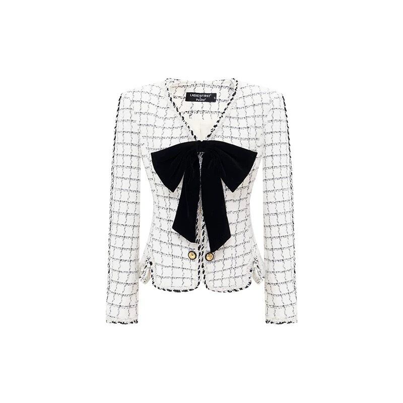【ジャケット】スーツ 白 黒 ガーリ 可愛い お嬢様 リボン ツイード風 セットアップ スーツ 渋谷 青山 エレガント XL