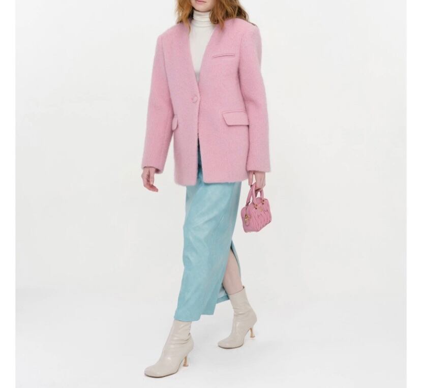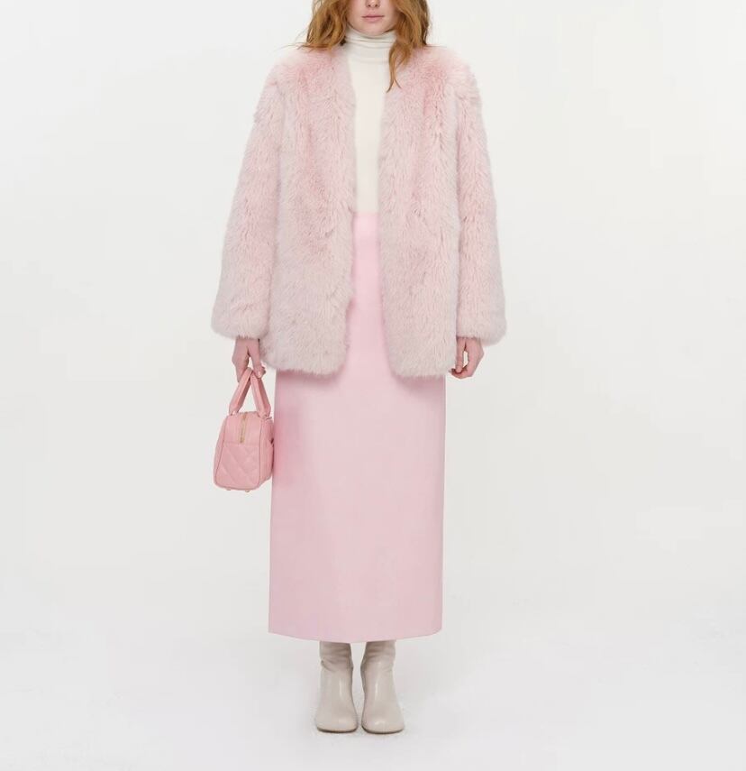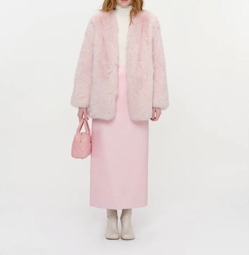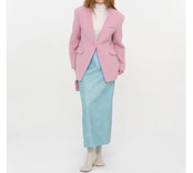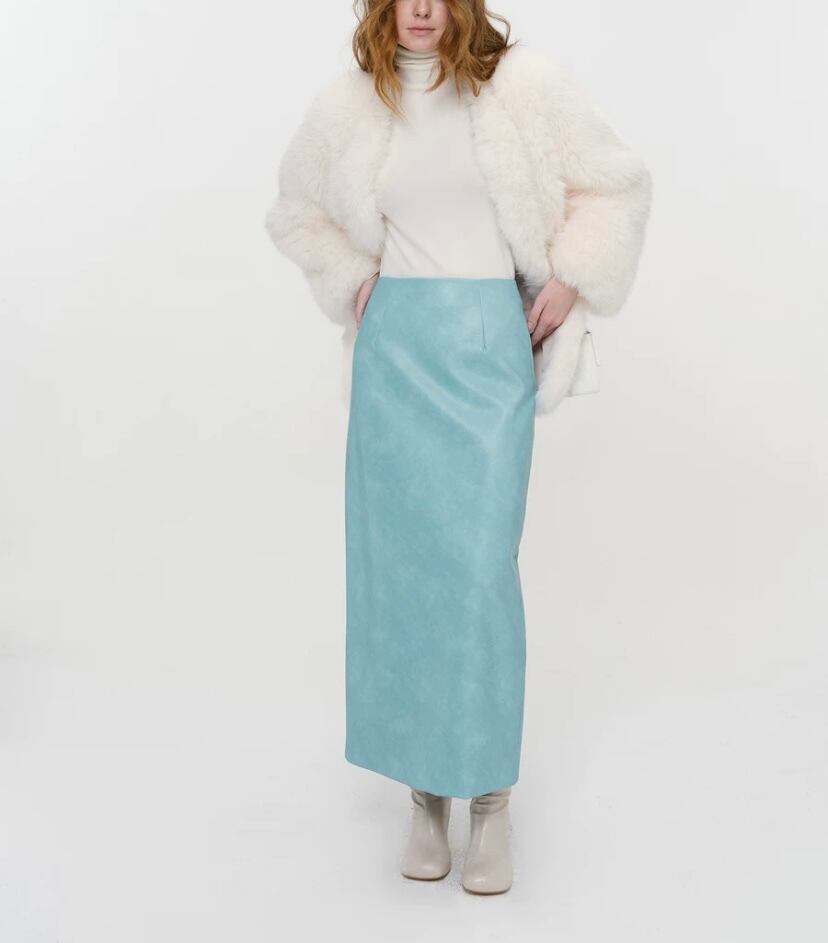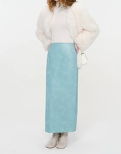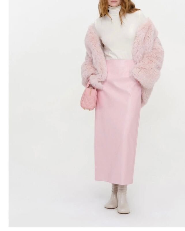 【ボトムス】スカート タイト ロング マキシ スリット 革 レザー ピンク エレガント ゴージャス シンプル 水色