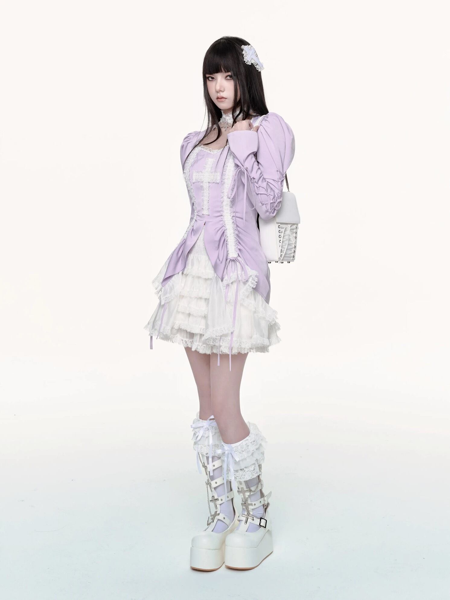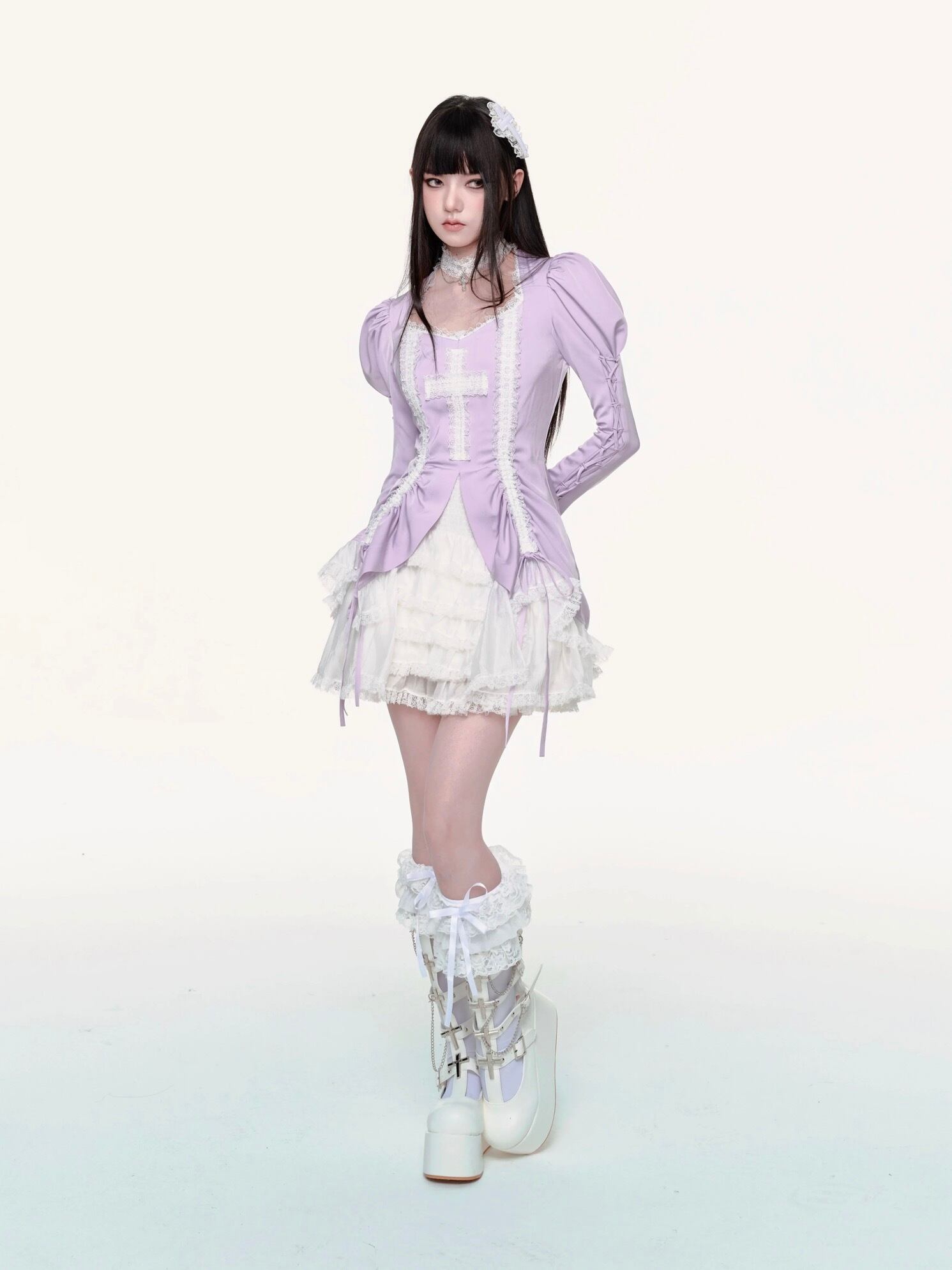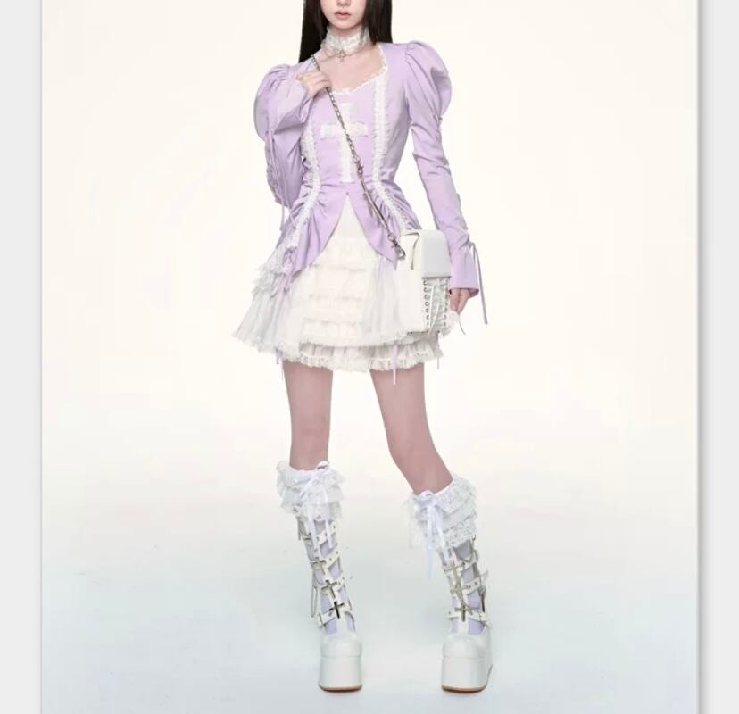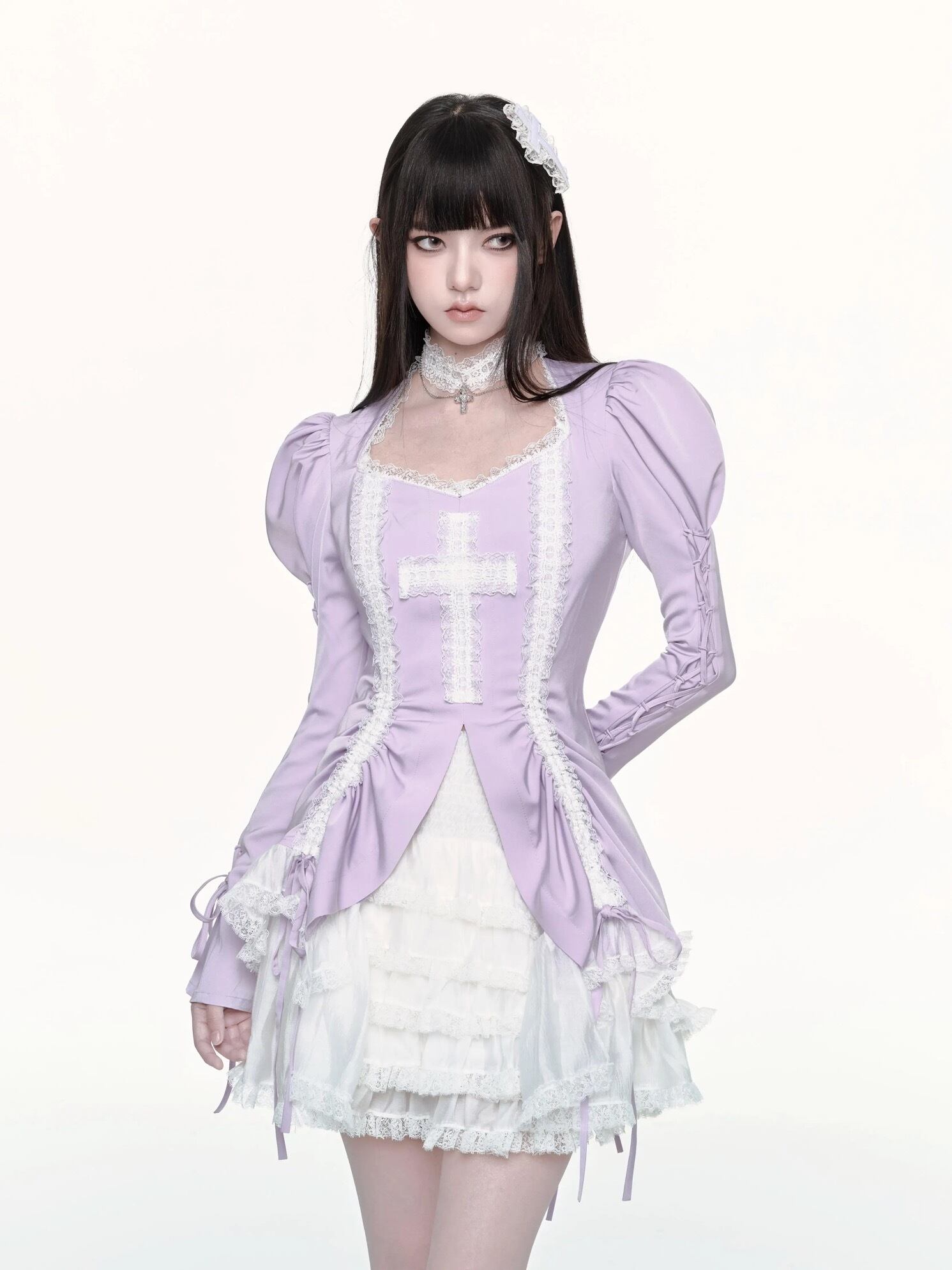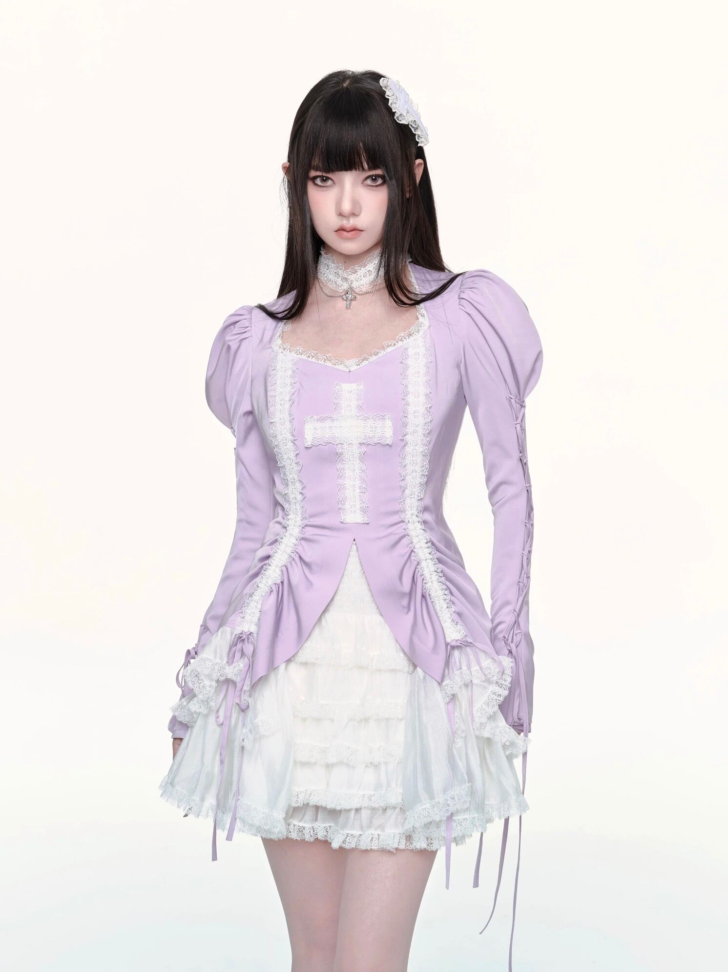 紫 ピンク クロス コスプレ ブラウス 原宿 秋葉原 衣装 トップス シースルー ガーリー ゴスロリ 姫 白 レース