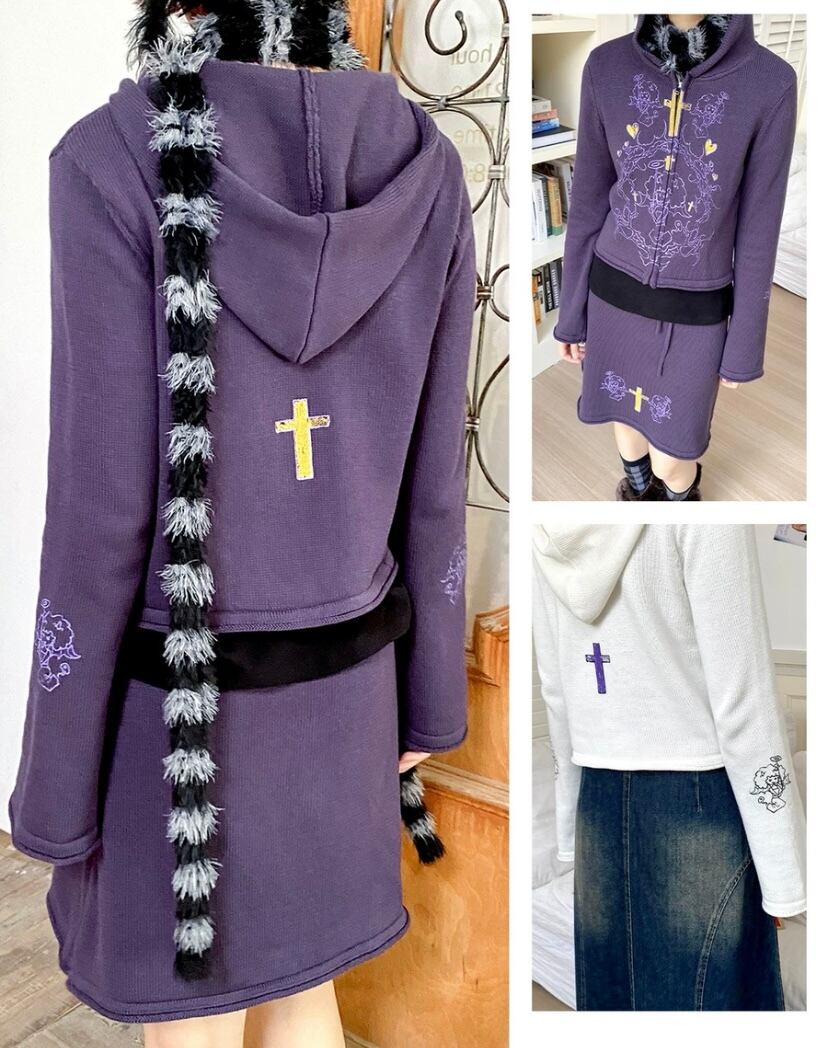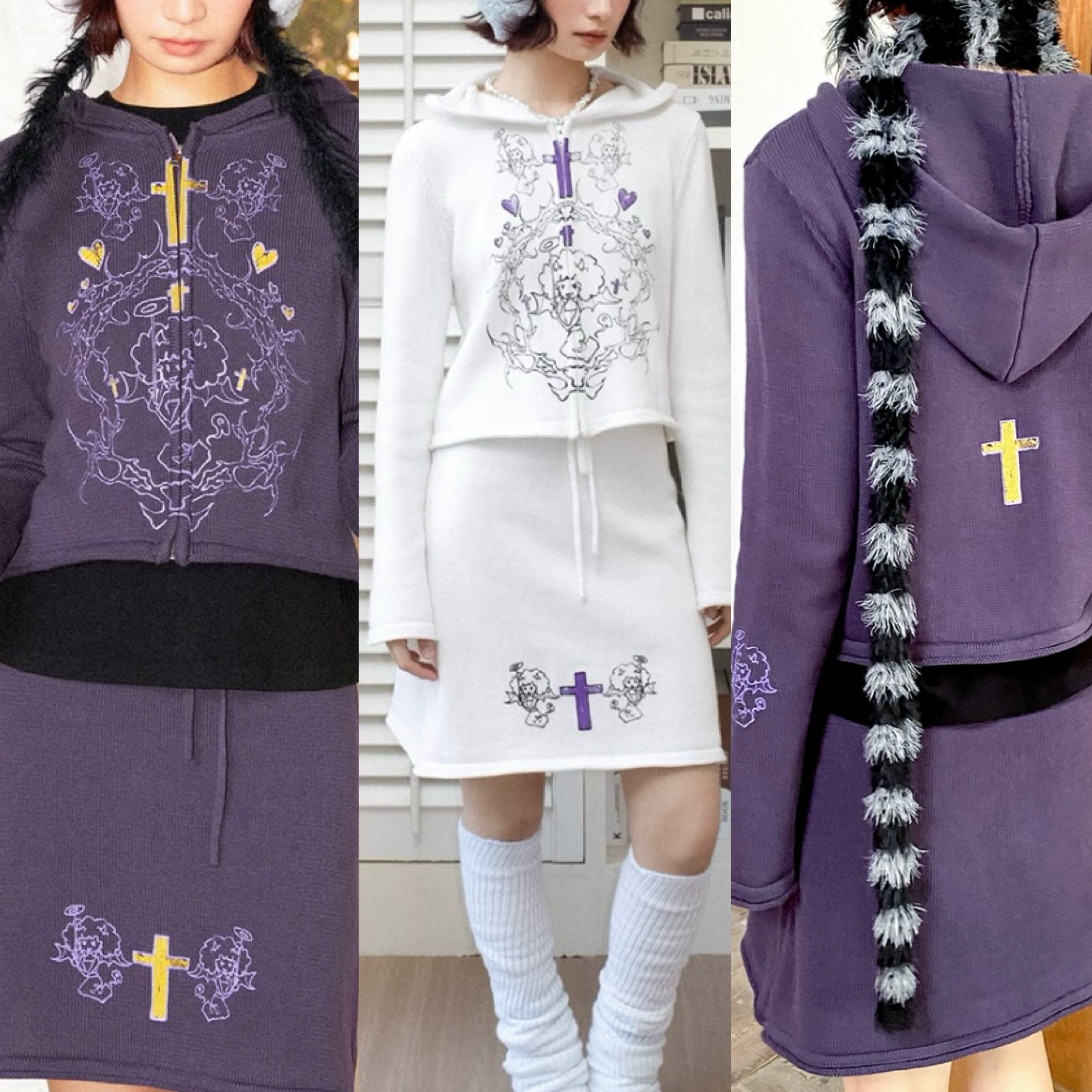 トップス 紫 白 パーカー ホワイト 天使 ニット ストリート アウター カーディガン ジャケット コート セーター 星 クロス フード ハート エンジェル