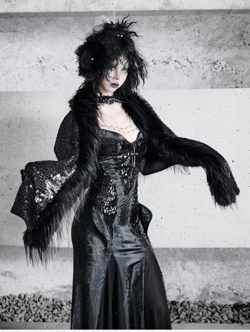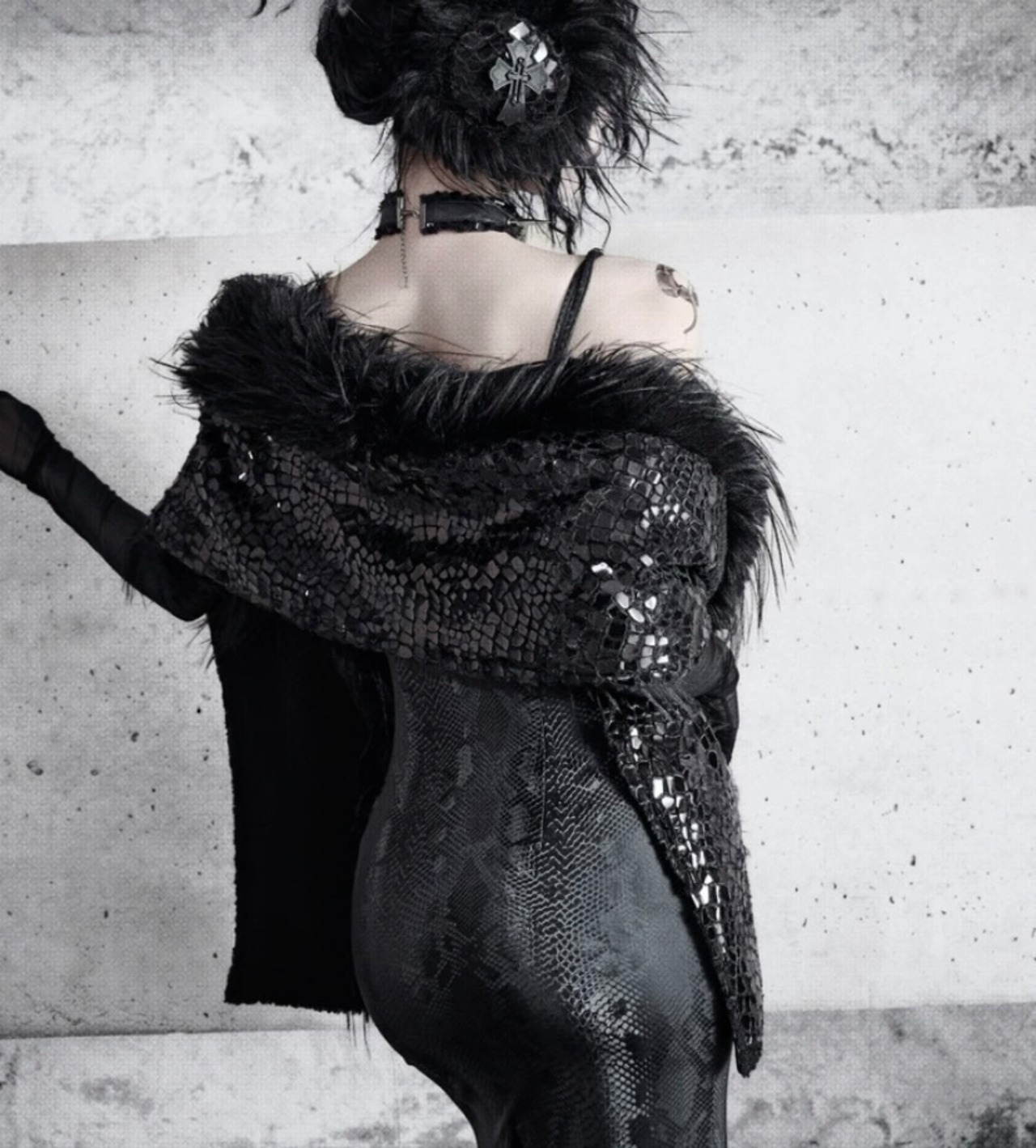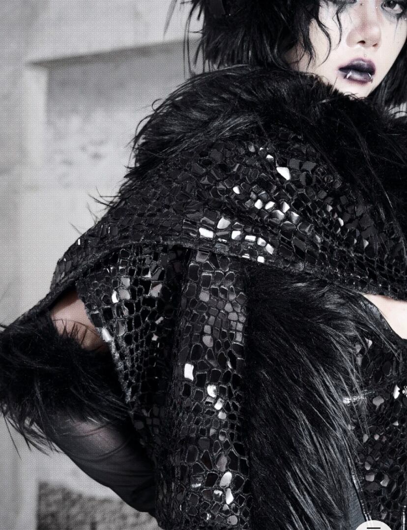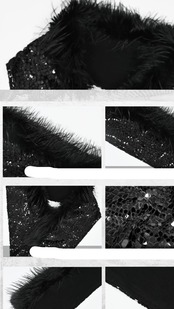 黒 きらきら スパンコール ブラック マフラー ショール ファー キラキラ モード ロング かっこいい