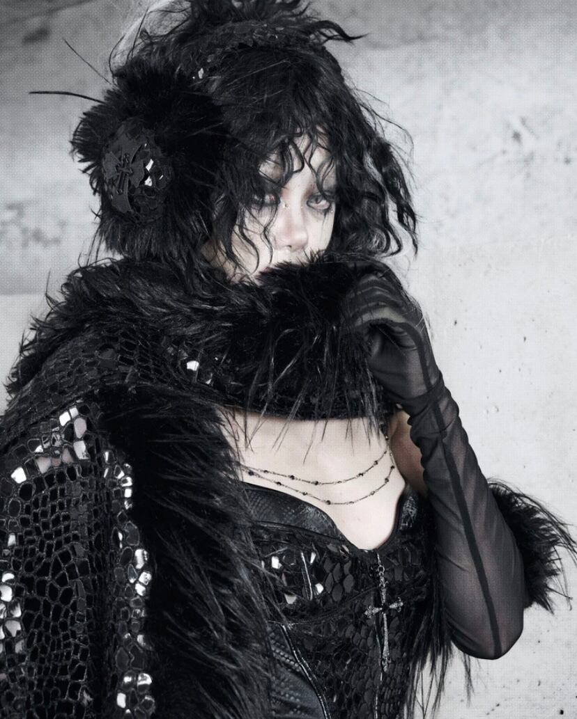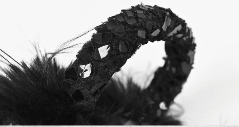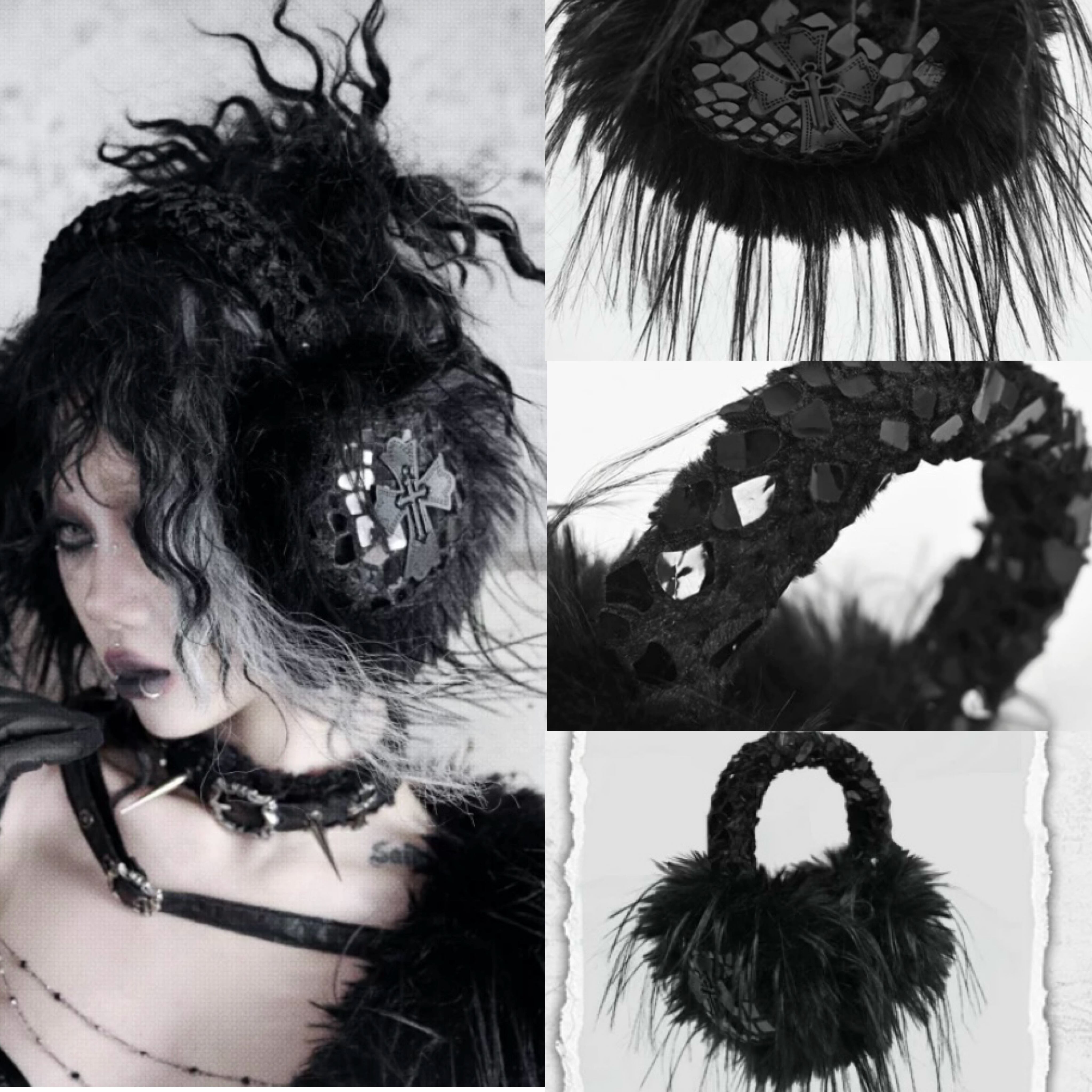 くろ ブラック クロス キラキラ スパンコール イヤーマフラー 耳当て ブラック ヘアアクセ カチューシャ